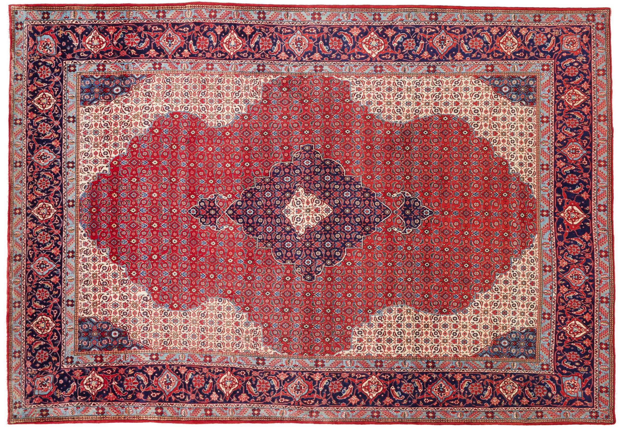 Nr.dywanu: 306349009652410 Wielkość: 314x213 cm Grubość: ok. 12 mm Gęstość tkania: 128 000 - 160 000 / m² Przetwarzanie: Ręcznie tkane Włosie: Wełna ręcznie przędzona Osnowa: Bawełna Pochodzenie: Persja / Iran Wiek: nowe Waga: ok. 23 kg Znany także jako Arak , Sarough, Sarouk, Saruk, Saroq, Sultanabad Ilość w magazynie: Unikalny - Tylko 1 na składzie
