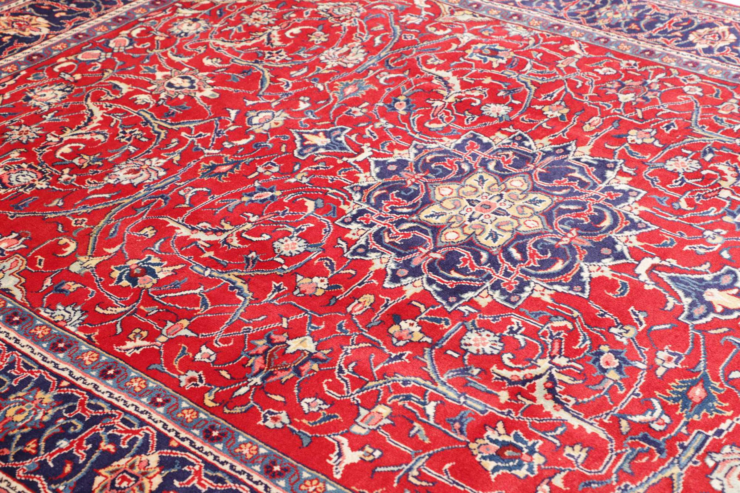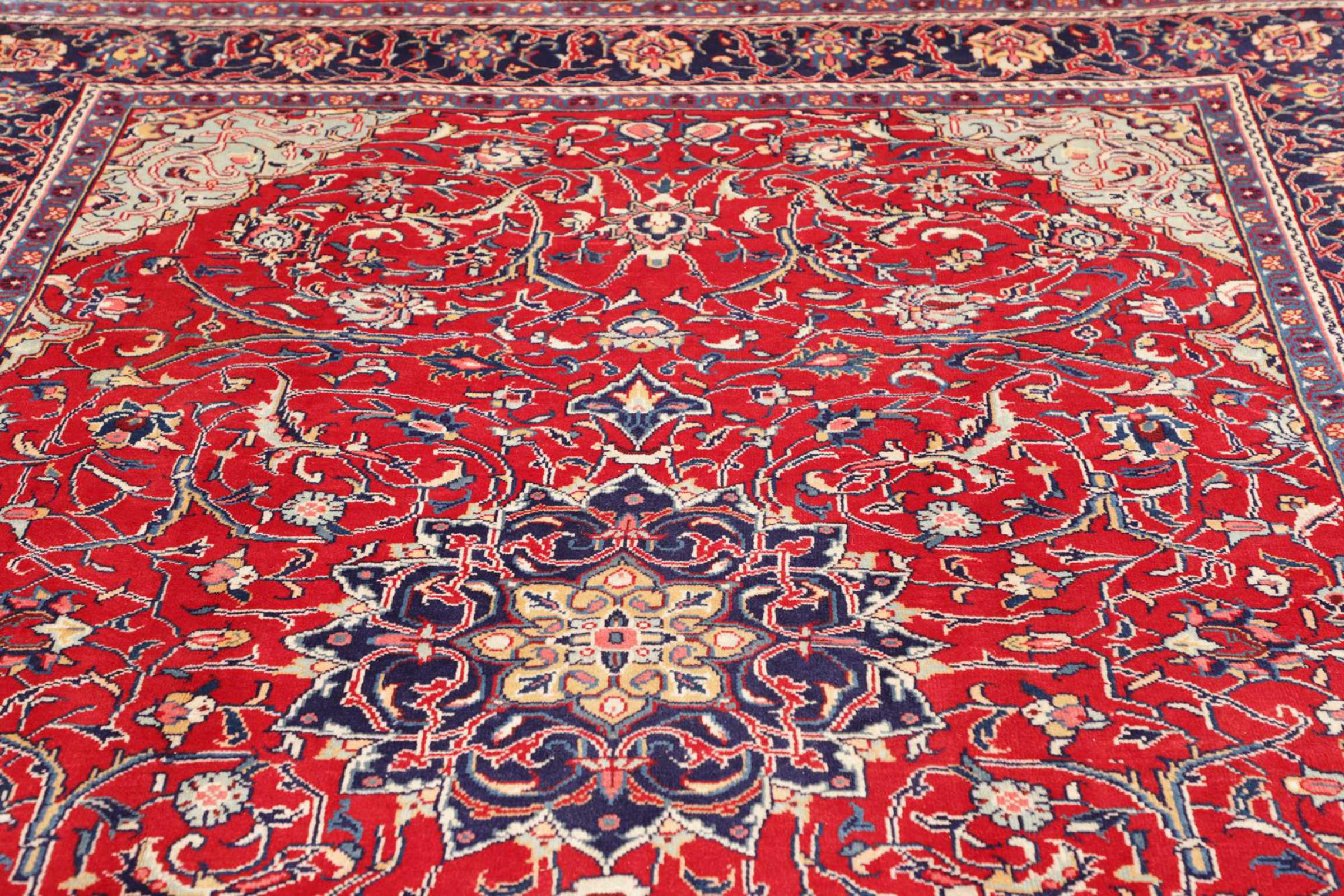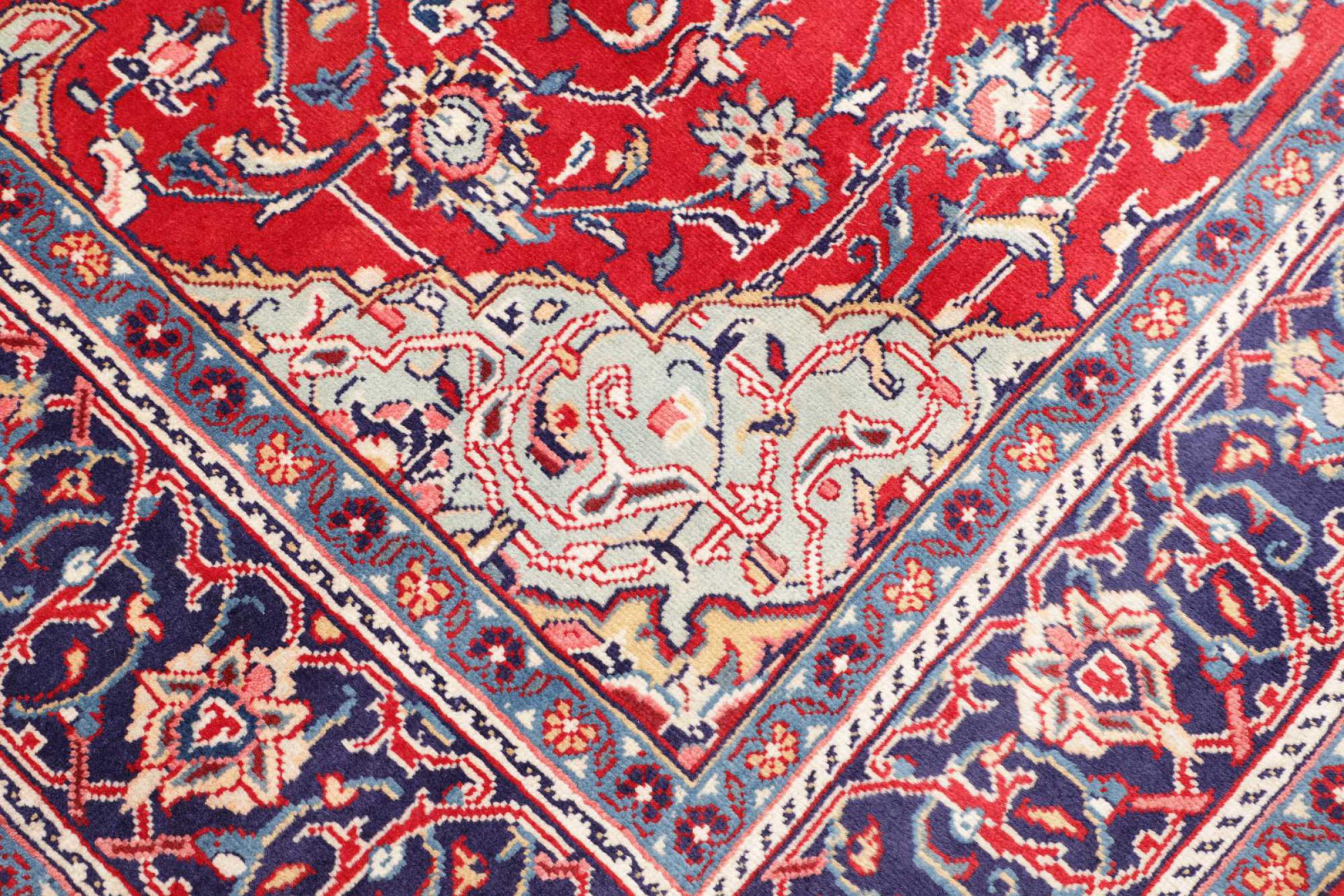 Dywan ten wykonany jest z ręcznie formowanej wełny owczej najwyższej jakości. Zwłaszcza w Iranie (była Persja), Afganistanie i Pakistanie wełna jest nadal ręcznie skręcana, zanim rozpocznie się faktyczne wiązanie dywanu. Wełna sprawdziła się jako naturalny i niezwykle wytrzymały materiał na przestrzeni wieków. Ma m.in. właściwości antybrudzące i termoizolacyjne. Jednocześnie wełna jest nieporównywalnie miękka i ma naturalny połysk.