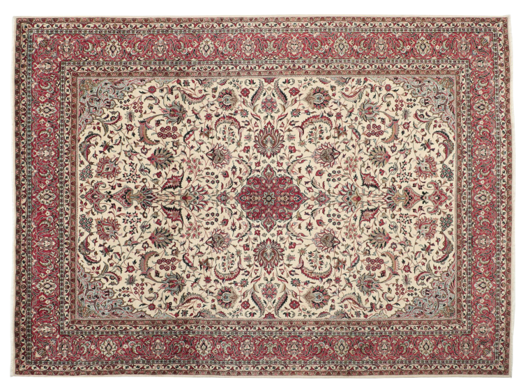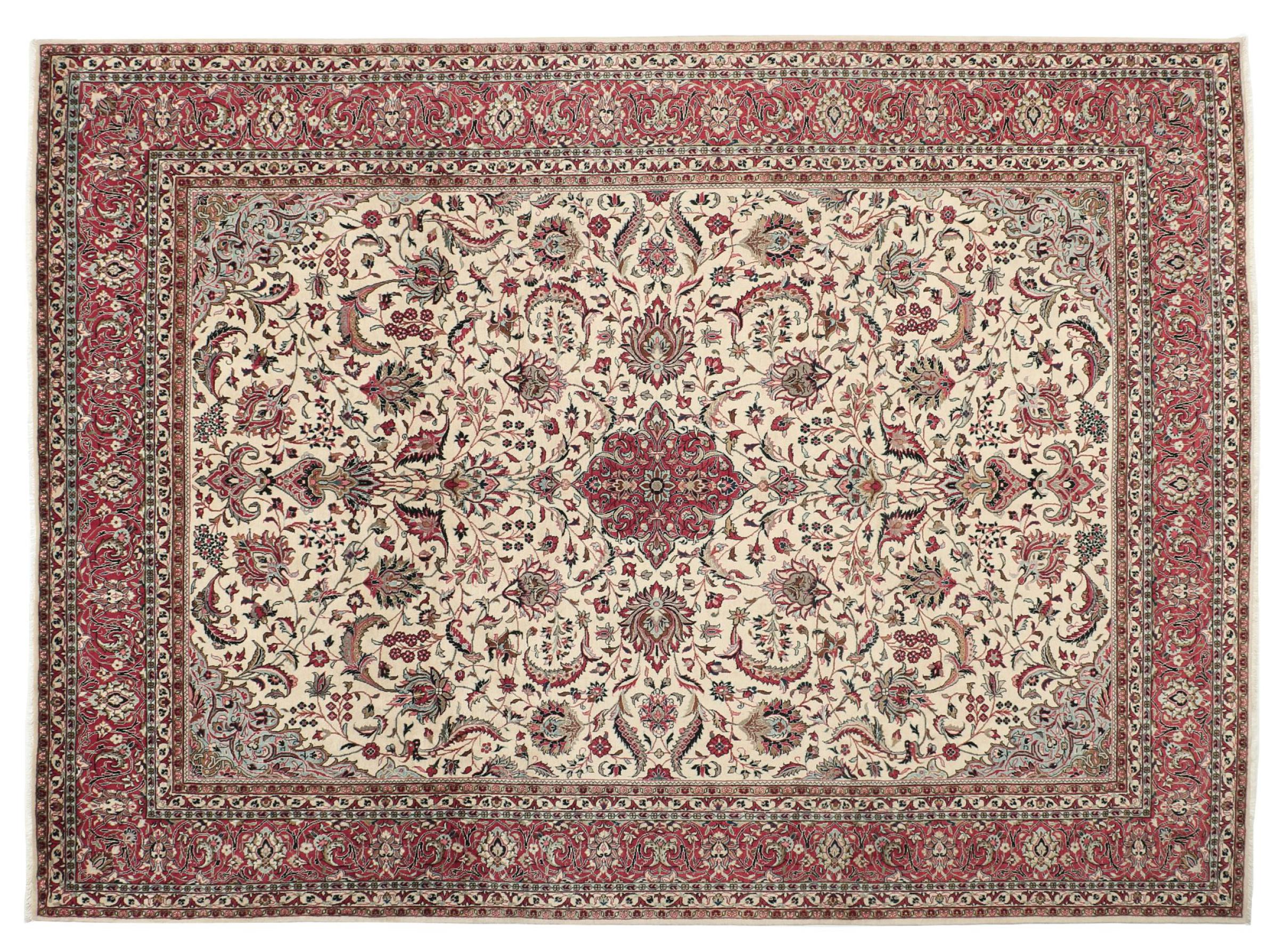 Nr.dywanu: 309002008299768 Wielkość: 407x294 cm Grubość: ok. 10 mm Gęstość tkania: 200 000 - 250 000 / m² Przetwarzanie: Ręcznie tkane Włosie: Wełna ręcznie przędzona Osnowa: Bawełna Pochodzenie: Persja / Iran Wiek: stare/antyczne, starsze niż 50 lat Waga: ok. 42 kg Ilość w magazynie: Unikalny - Tylko 1 na składzie