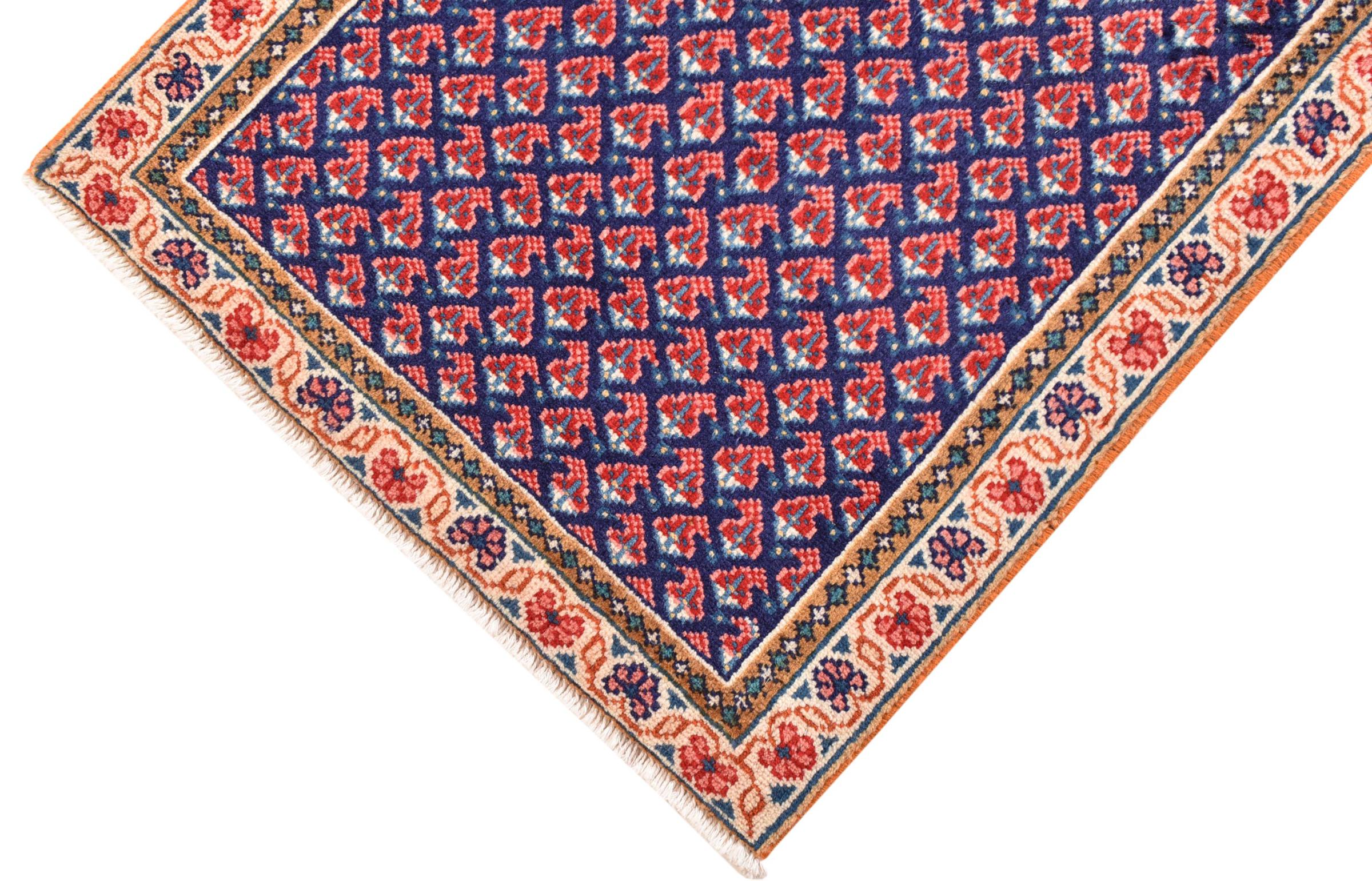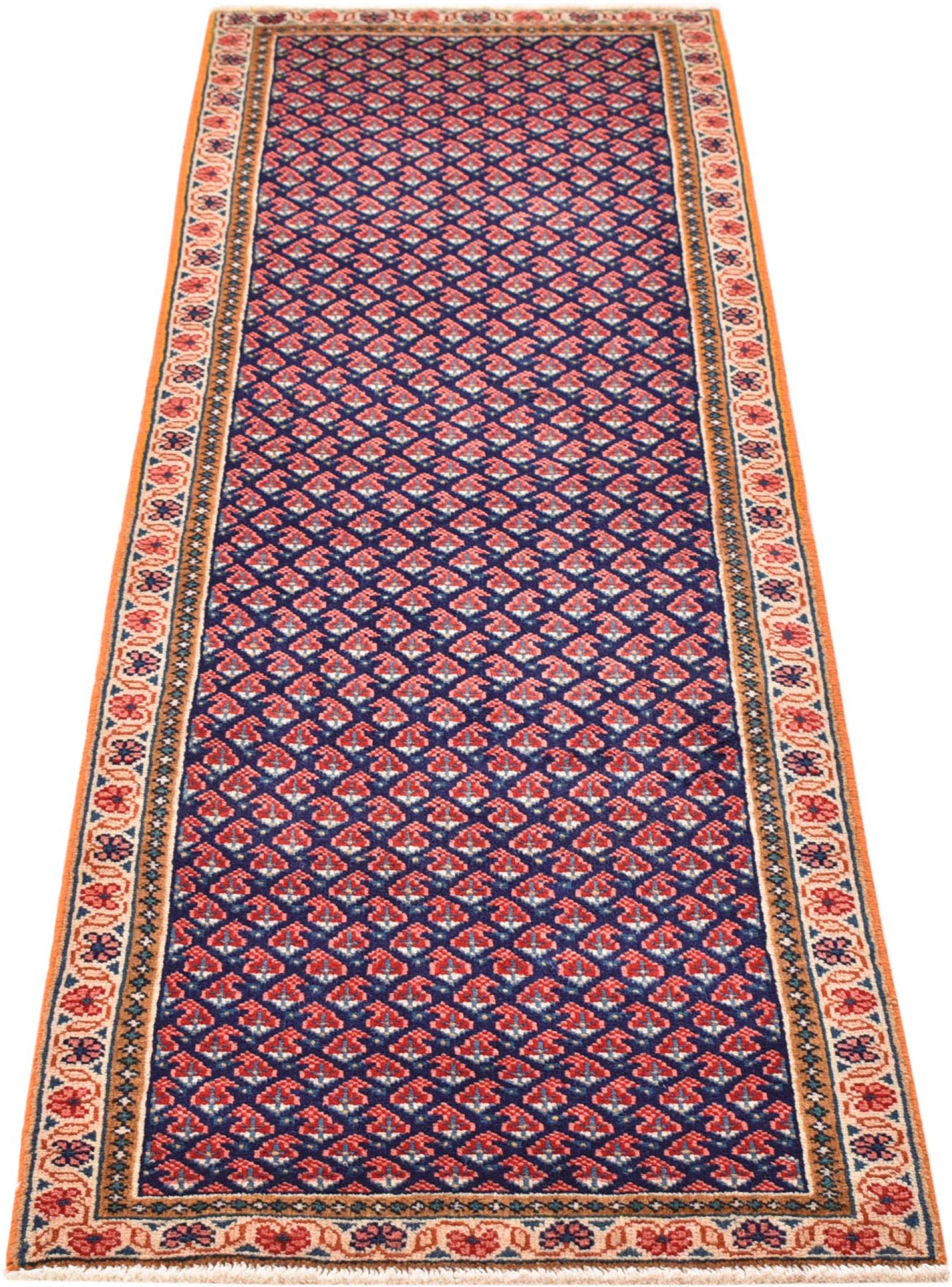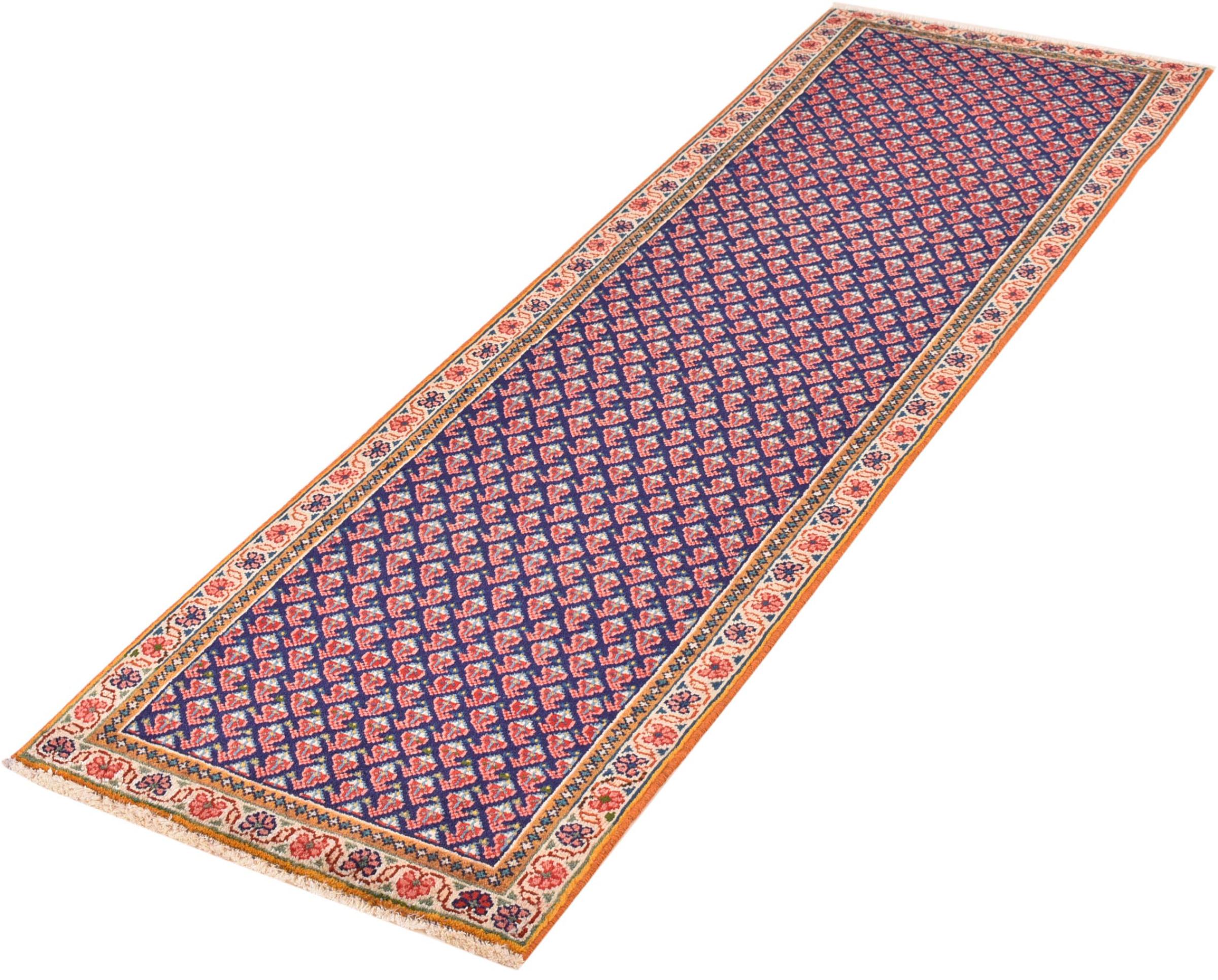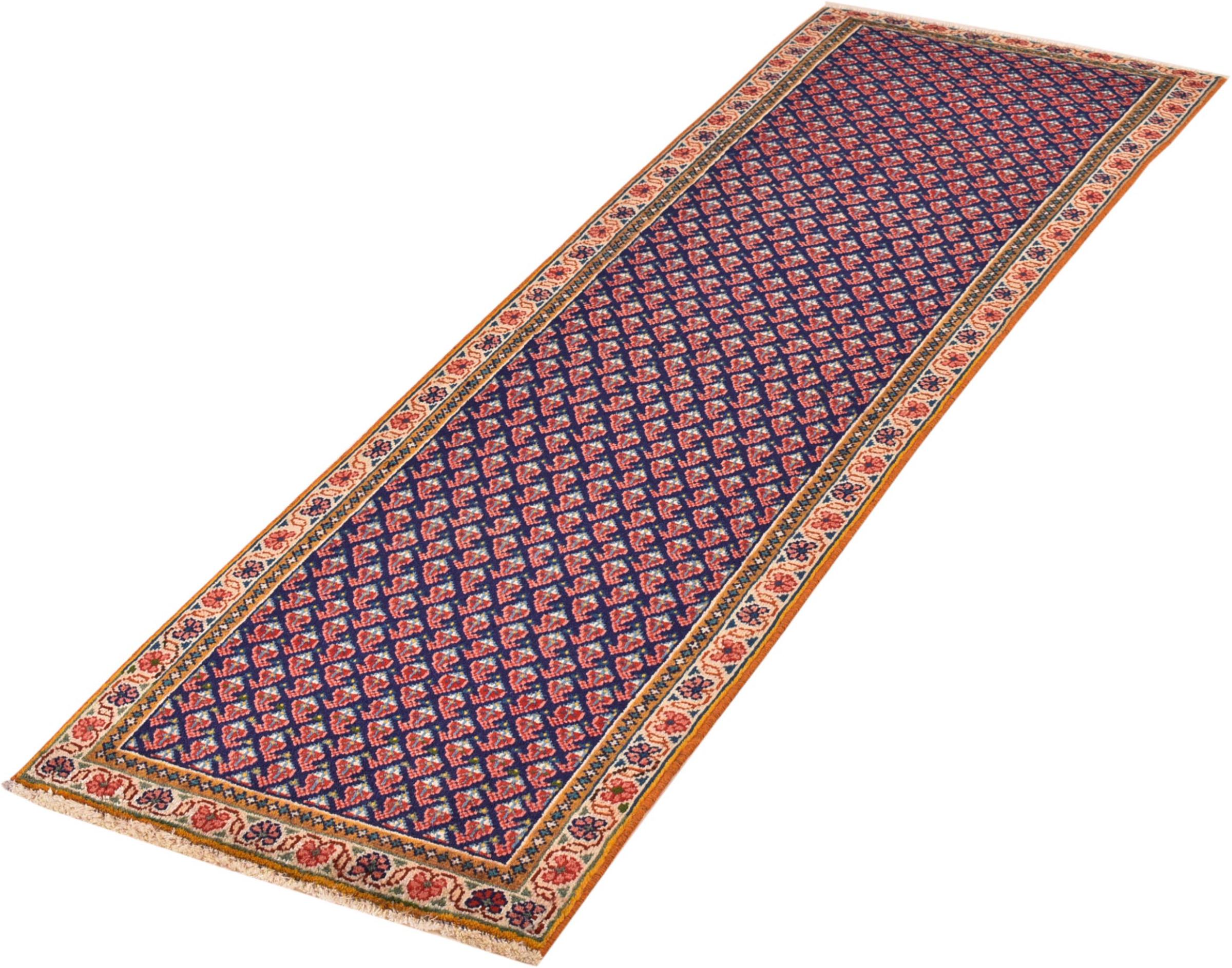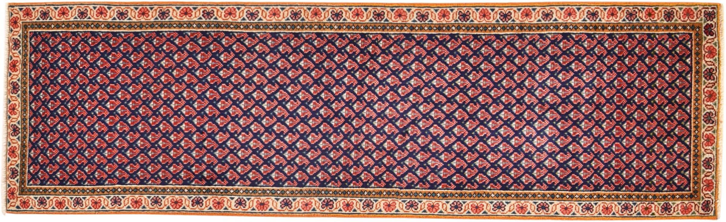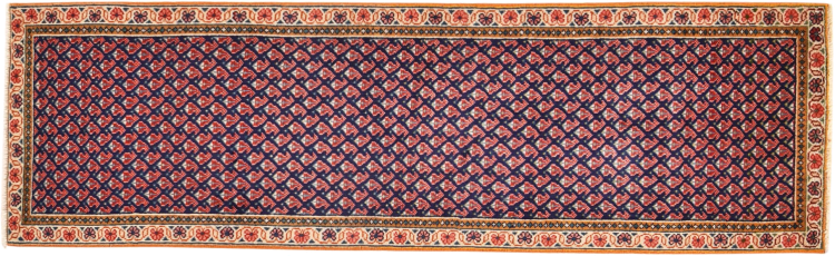 Nr.dywanu: 28620600639302 Wielkość: 201x59 cm Grubość: ok. 12 mm Gęstość tkania: 72 000 - 90 000 / m² Przetwarzanie: Ręcznie tkane Włosie: Wełna ręcznie przędzona Osnowa: Bawełna Pochodzenie: Persja / Iran Wiek: nowe Waga: ok. 5 kg Znany także jako Sarough Mir Ilość w magazynie: Unikalny - Tylko 1 na składzie