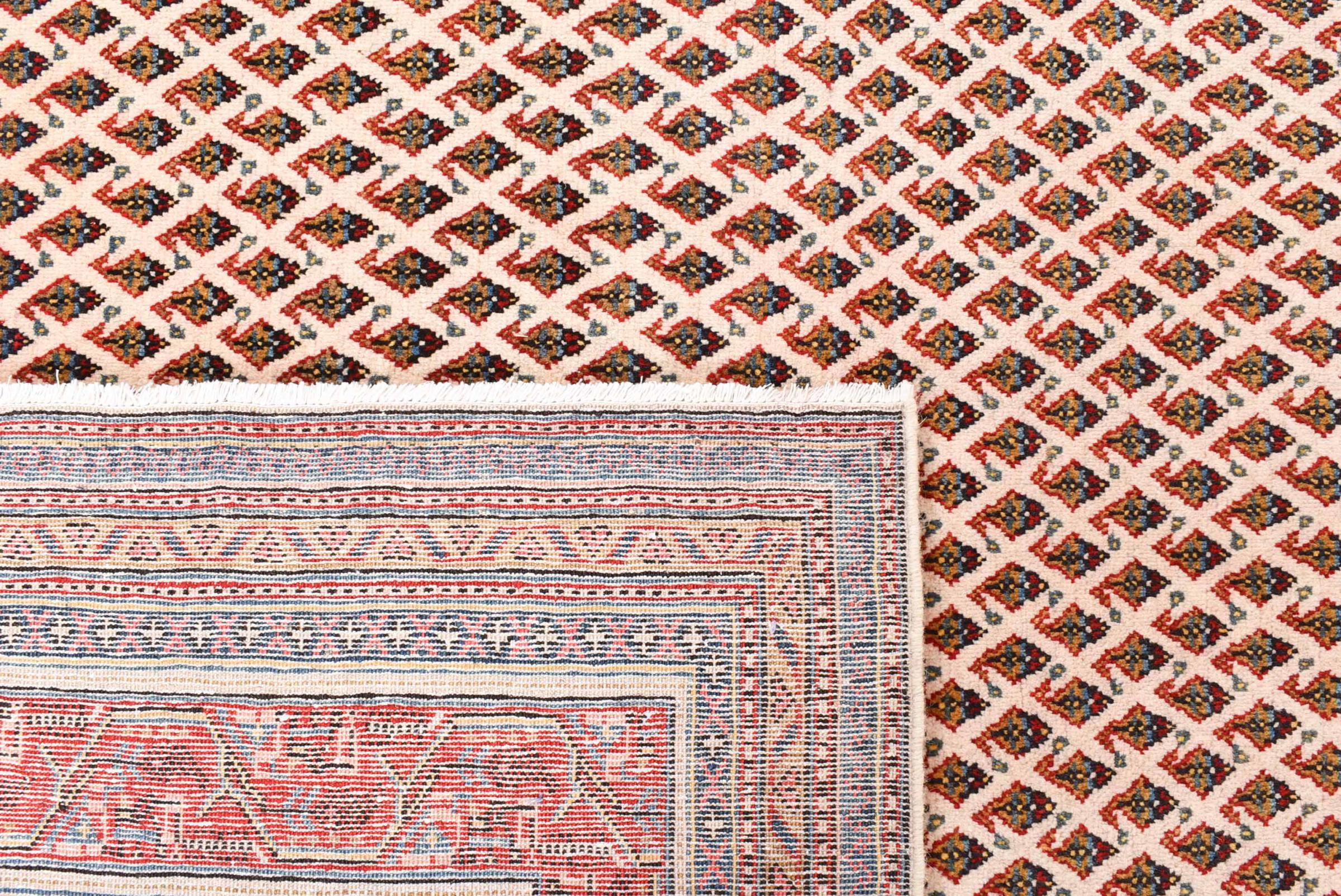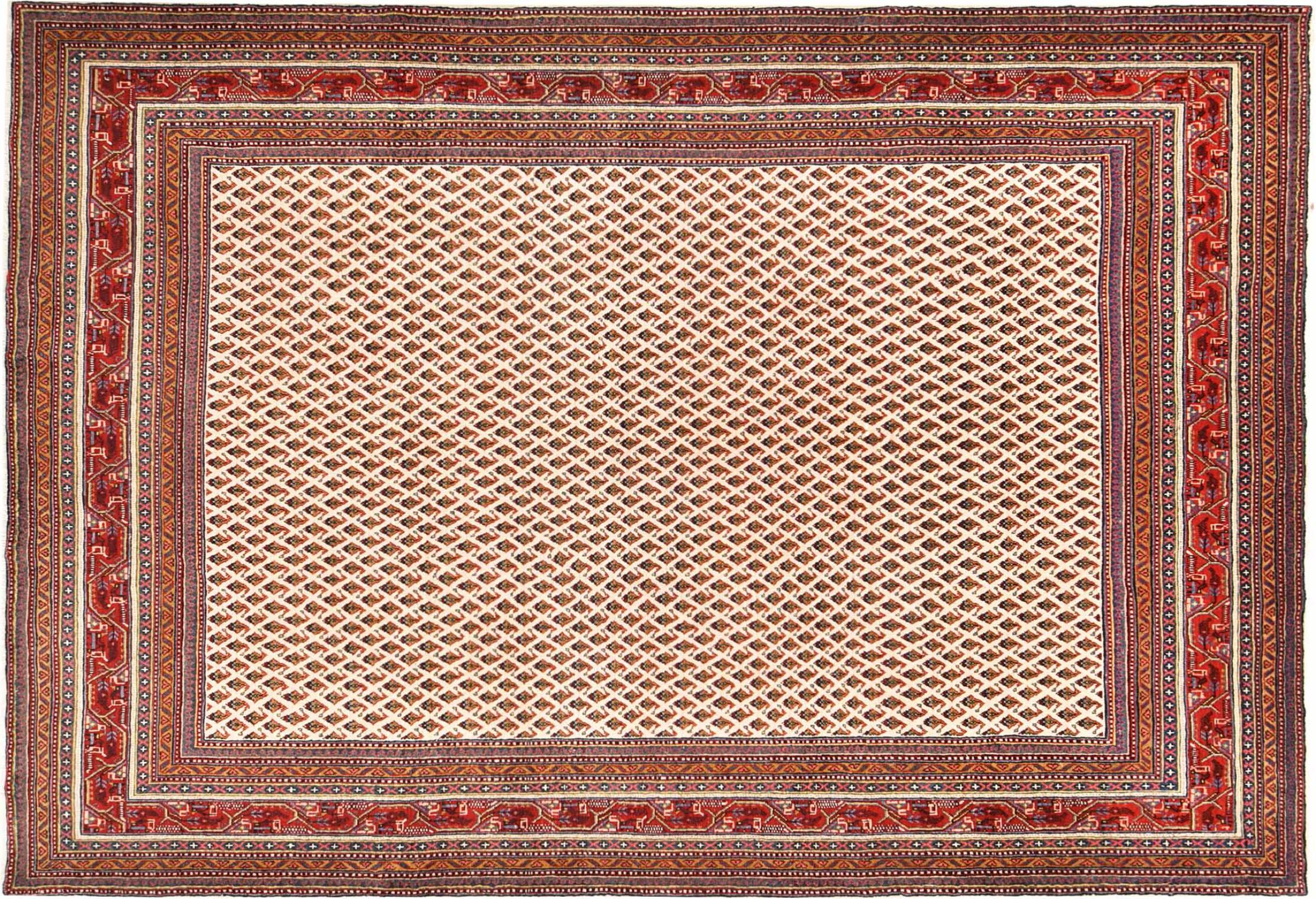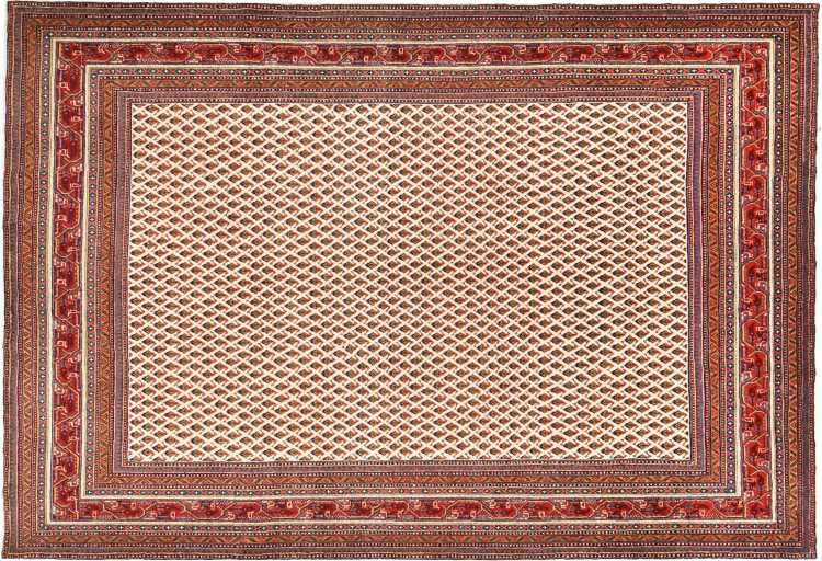Nr.dywanu: 30981400668505 Wielkość: 313x214 cm Grubość: ok. 12 mm Gęstość tkania: 160 000 - 200 000 / m² Przetwarzanie: Ręcznie tkane Włosie: Wełna ręcznie przędzona Osnowa: Bawełna Pochodzenie: Persja / Iran Wiek: nowe Waga: ok. 27 kg Znany także jako Sarough Mir Ilość w magazynie: Unikalny - Tylko 1 na składzie