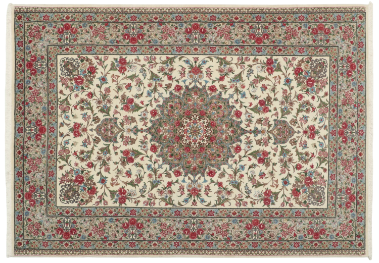 Dywan ten pochodzi z Iranu (dawniej Persja) i jako perski dywan cieszy się prawdopodobnie najwyższą reputacją wśród wszystkich ręcznie tkanych typów dywanów. Żaden inny region nie spogląda wstecz na tak długą tradycję wiązania dywanów jak Iran. Więc prawdopodobnie najlepsze i najbardziej wyszukane dywany przychodzą tutaj. Wytrzymałość, trwałość i jakość węzła perskiego są do dziś niezrównane. Perskie dywany są zwykle nazywane po regionie pochodzenia. Tak więc Nain, Ghom, jak i dywan Isfahan pochodzą z miasta o tej samej nazwie w Iranie.