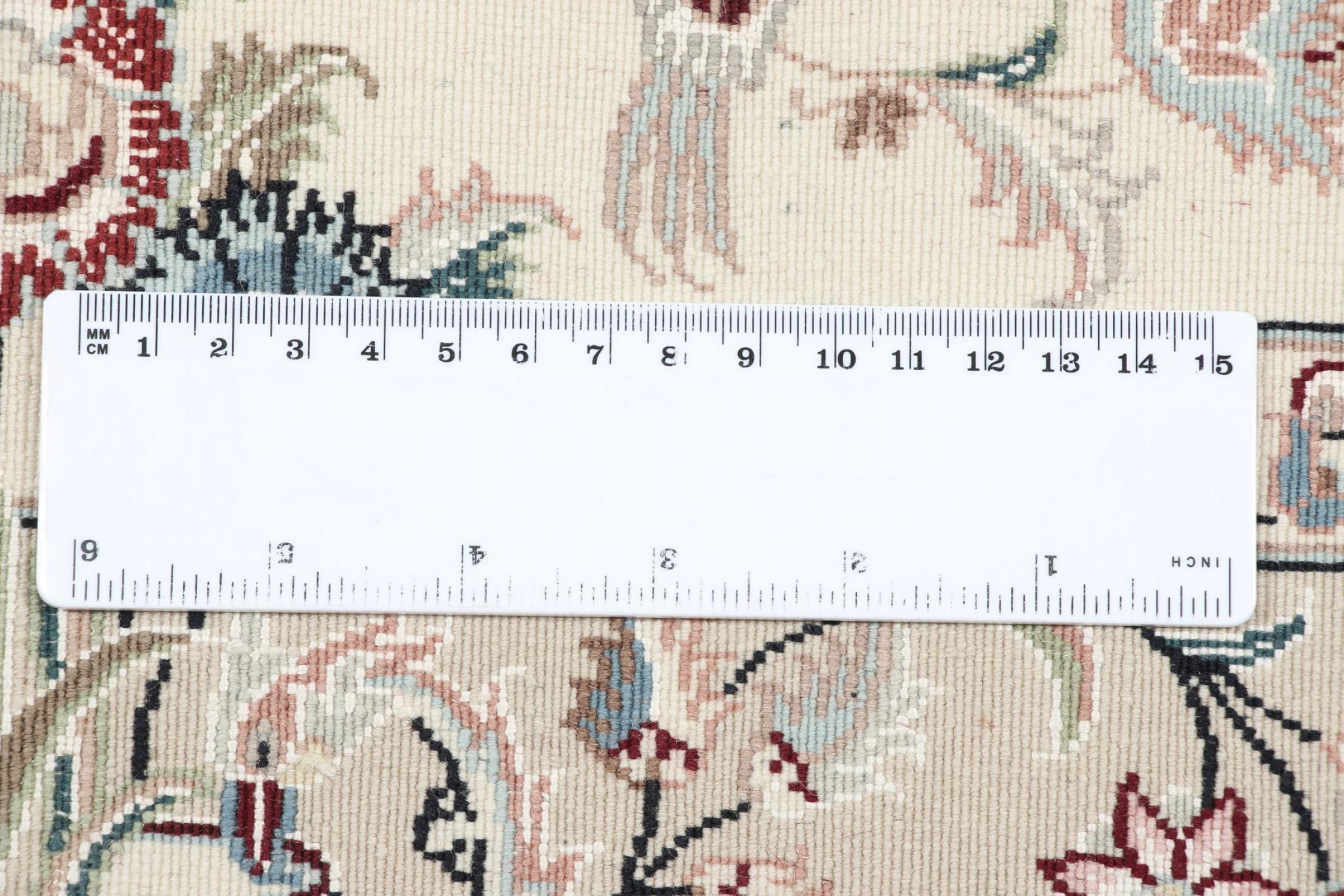 Nr.dywanu: 308984009482003 Wielkość: 161x109 cm Grubość: ok. 10 mm Gęstość tkania: 810 000 / m² Przetwarzanie: Ręcznie tkane Włosie: Wełna z jedwabiem Osnowa: Jewab Pochodzenie: Persja / Iran Wiek: nowe Waga: ok. 6 kg Ilość w magazynie: Unikalny - Tylko 1 na składzie