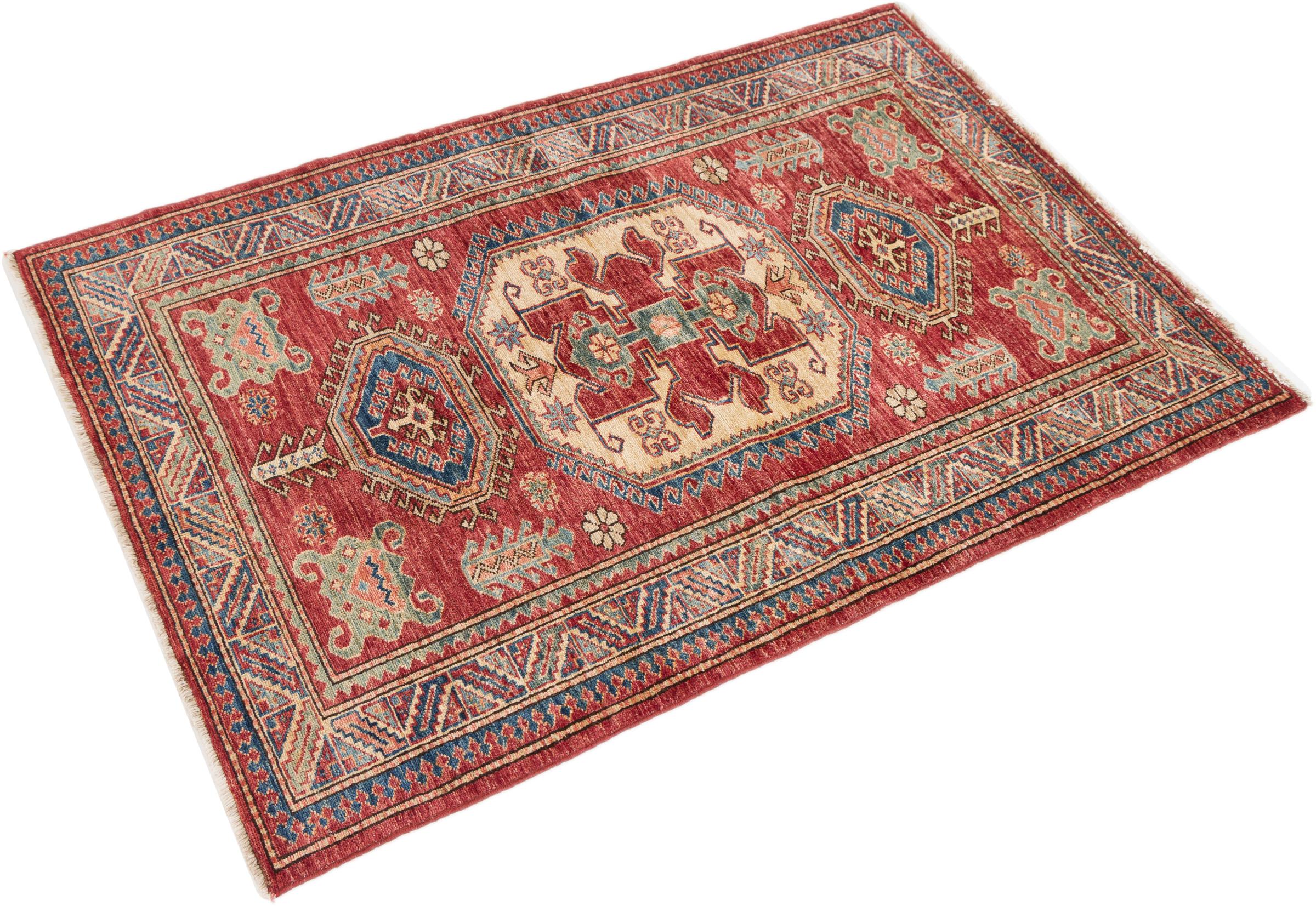 Nr.dywanu: 295284006511 Wielkość: 149x97 cm Grubość: ok. 5 mm Gęstość tkania: 128 000 - 160 000 / m² Przetwarzanie: Ręcznie tkane Włosie: Wełna ręcznie przędzona Osnowa: Bawełna Pochodzenie: Afganistan Wiek: nowe Waga: ok. 4 kg Ilość w magazynie: Unikalny - Tylko 1 na składzie
