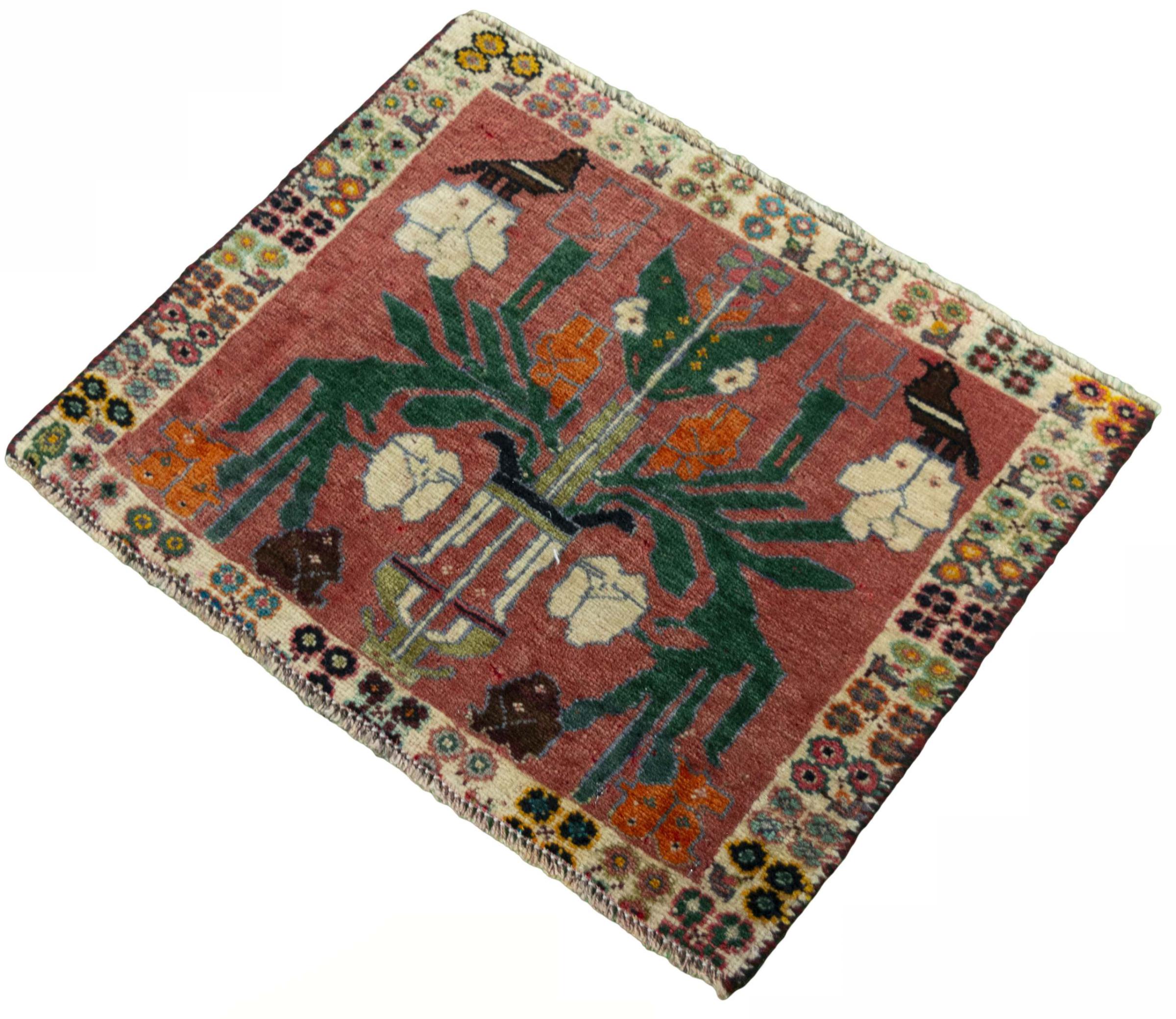 Nr.dywanu: 300151008714706 Wielkość: 45x55 cm Grubość: ok. 10 mm Gęstość tkania: 96 000 - 120 000 / m² Przetwarzanie: Ręcznie tkane Włosie: Wełna ręcznie przędzona Osnowa: Wełna Pochodzenie: Persja / Iran Wiek: nowe Waga: ok. 1 kg Ilość w magazynie: Unikalny - Tylko 1 na składzie