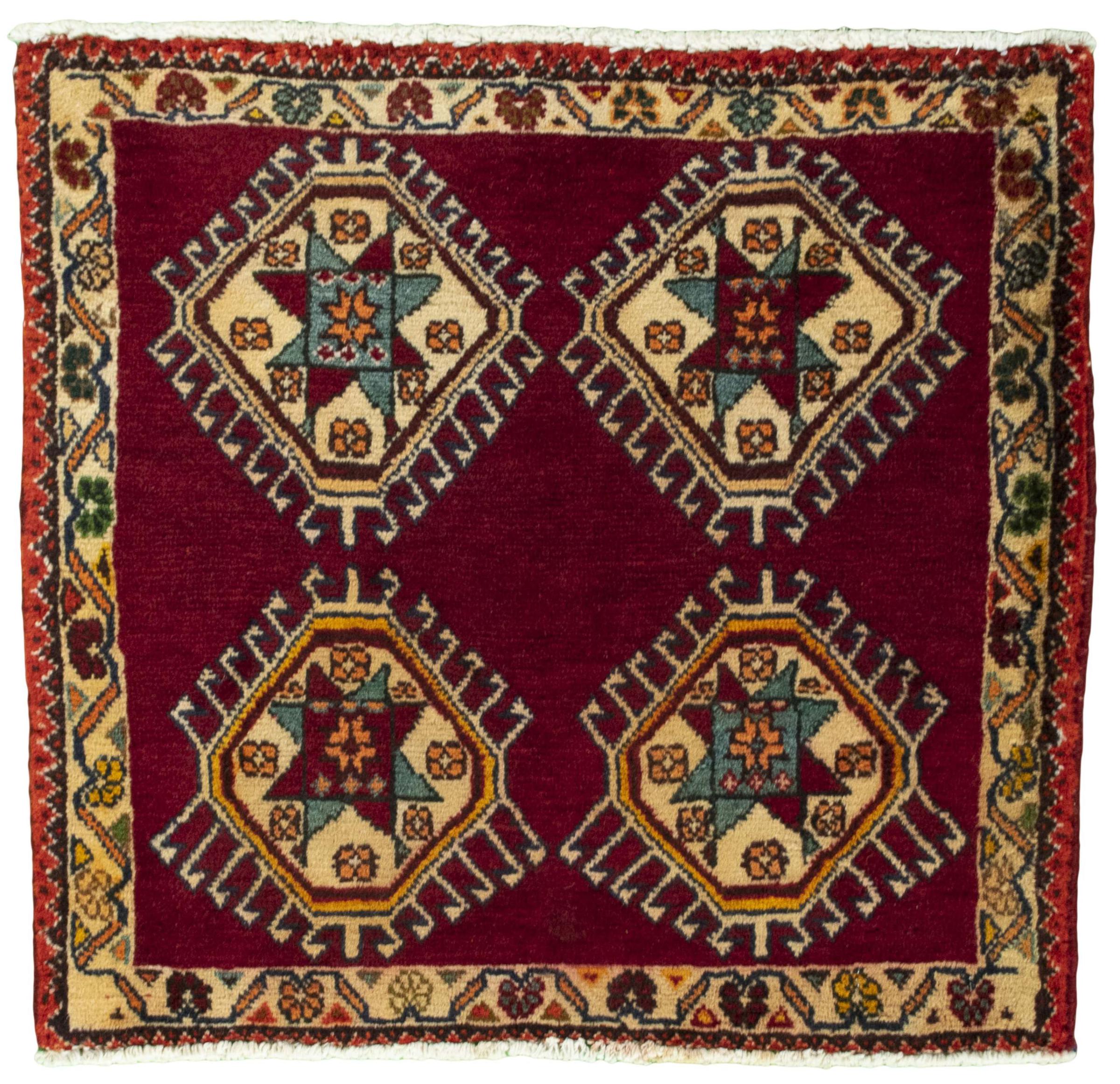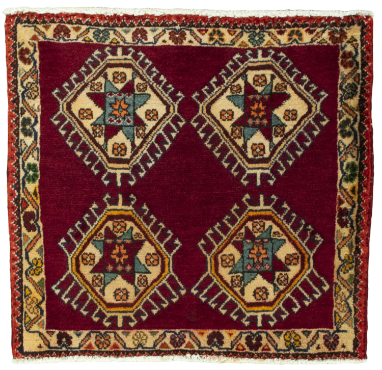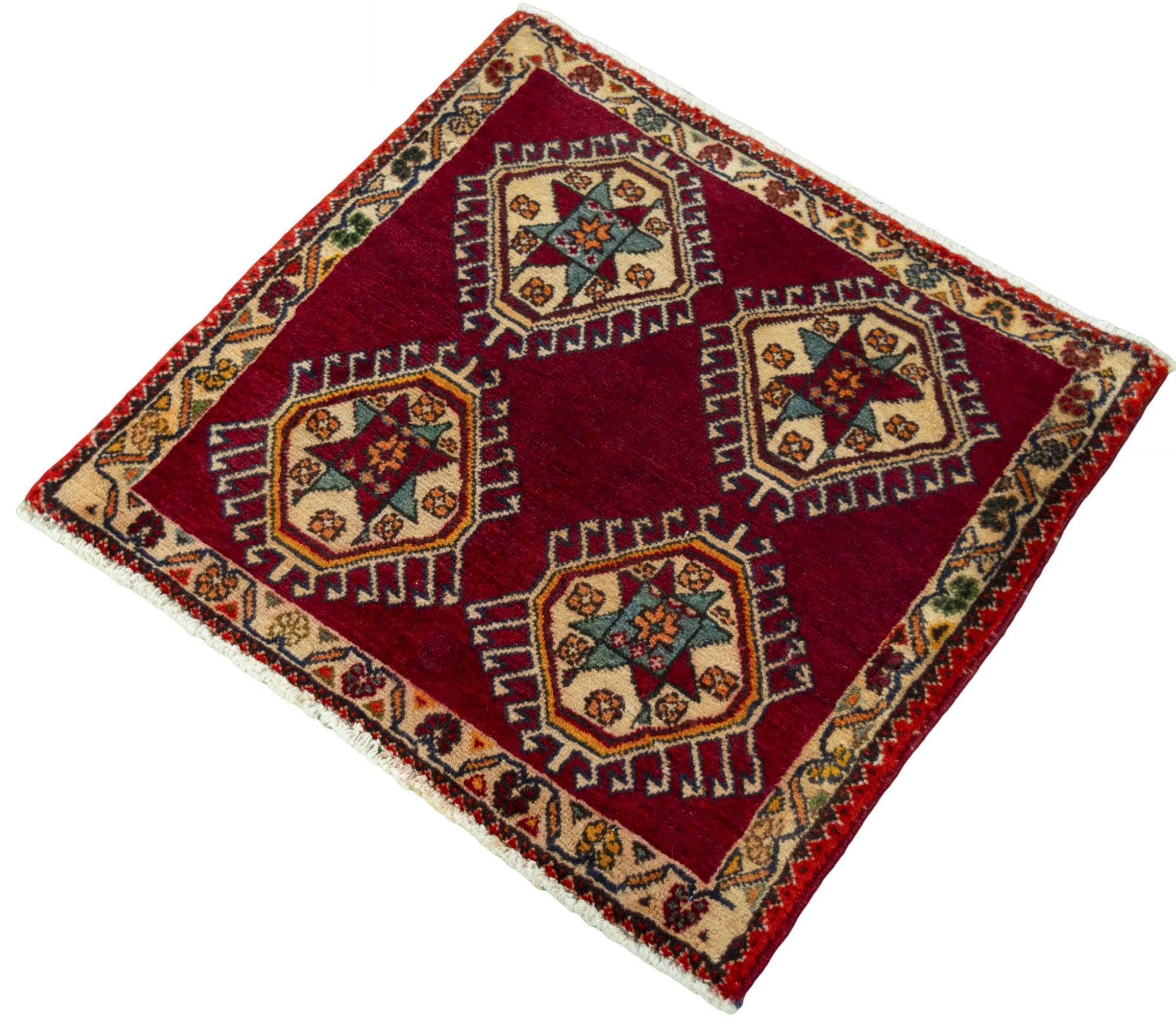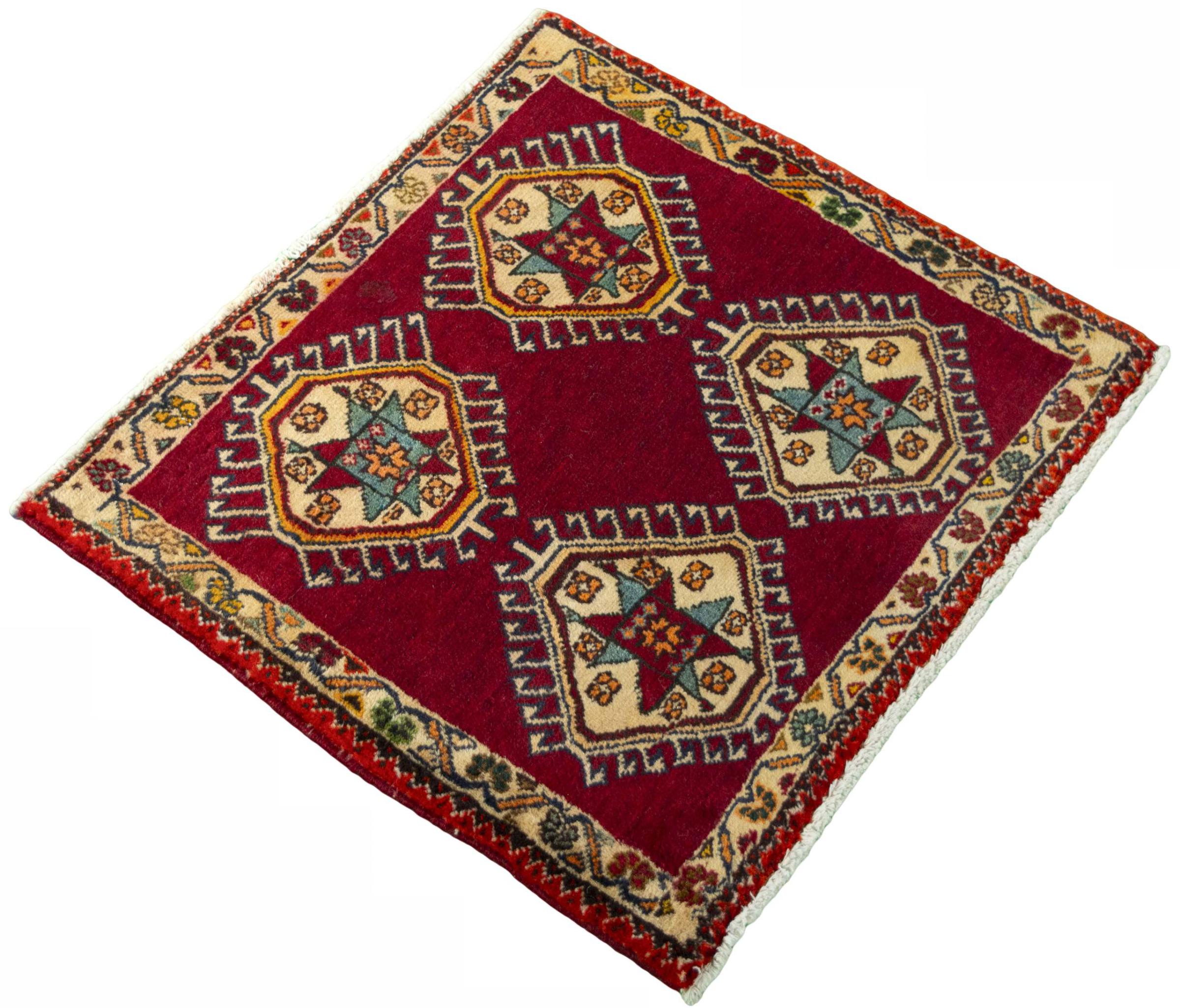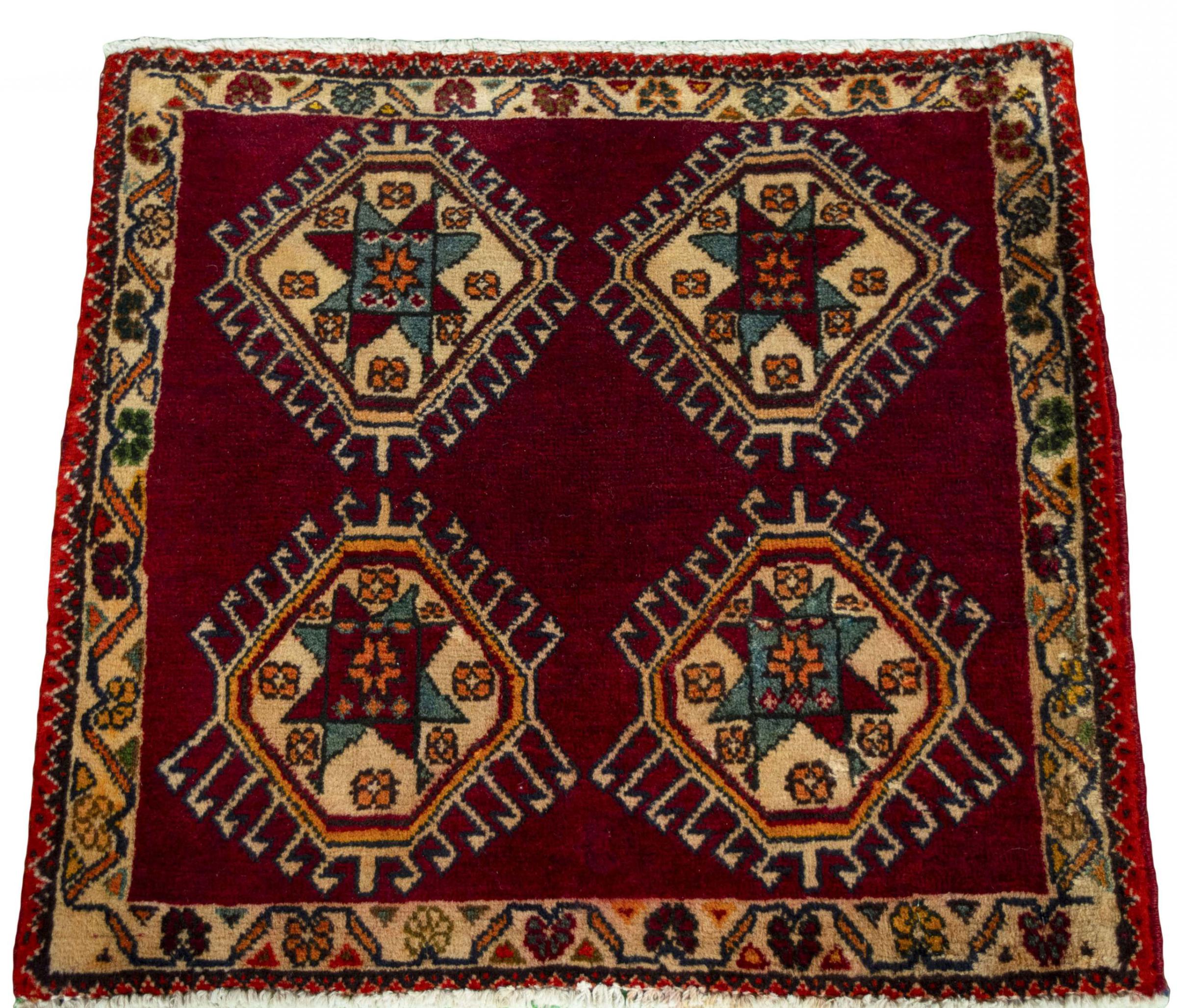Nr.dywanu: 300160003106390 Wielkość: 53x56 cm Grubość: ok. 10 mm Gęstość tkania: 96 000 - 120 000 / m² Przetwarzanie: Ręcznie tkane Włosie: Wełna ręcznie przędzona Osnowa: Wełna Pochodzenie: Persja / Iran Wiek: nowe Waga: ok. 1 kg Ilość w magazynie: Unikalny - Tylko 1 na składzie