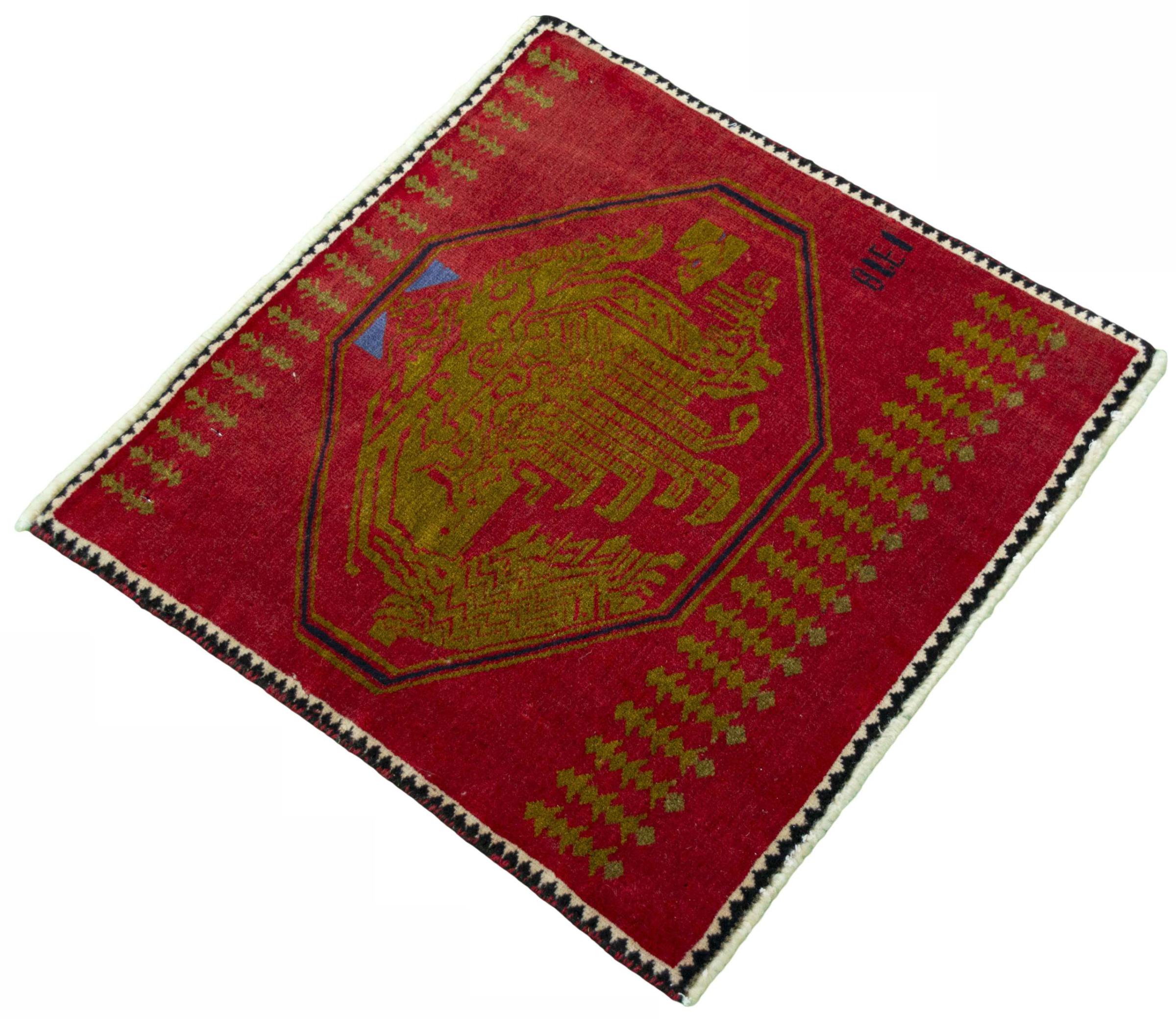 Nr.dywanu: 300167007393267 Wielkość: 56x57 cm Grubość: ok. 10 mm Gęstość tkania: 96 000 - 120 000 / m² Przetwarzanie: Ręcznie tkane Włosie: Wełna ręcznie przędzona Osnowa: Wełna Pochodzenie: Persja / Iran Wiek: nowe Waga: ok. 1 kg Ilość w magazynie: Unikalny - Tylko 1 na składzie