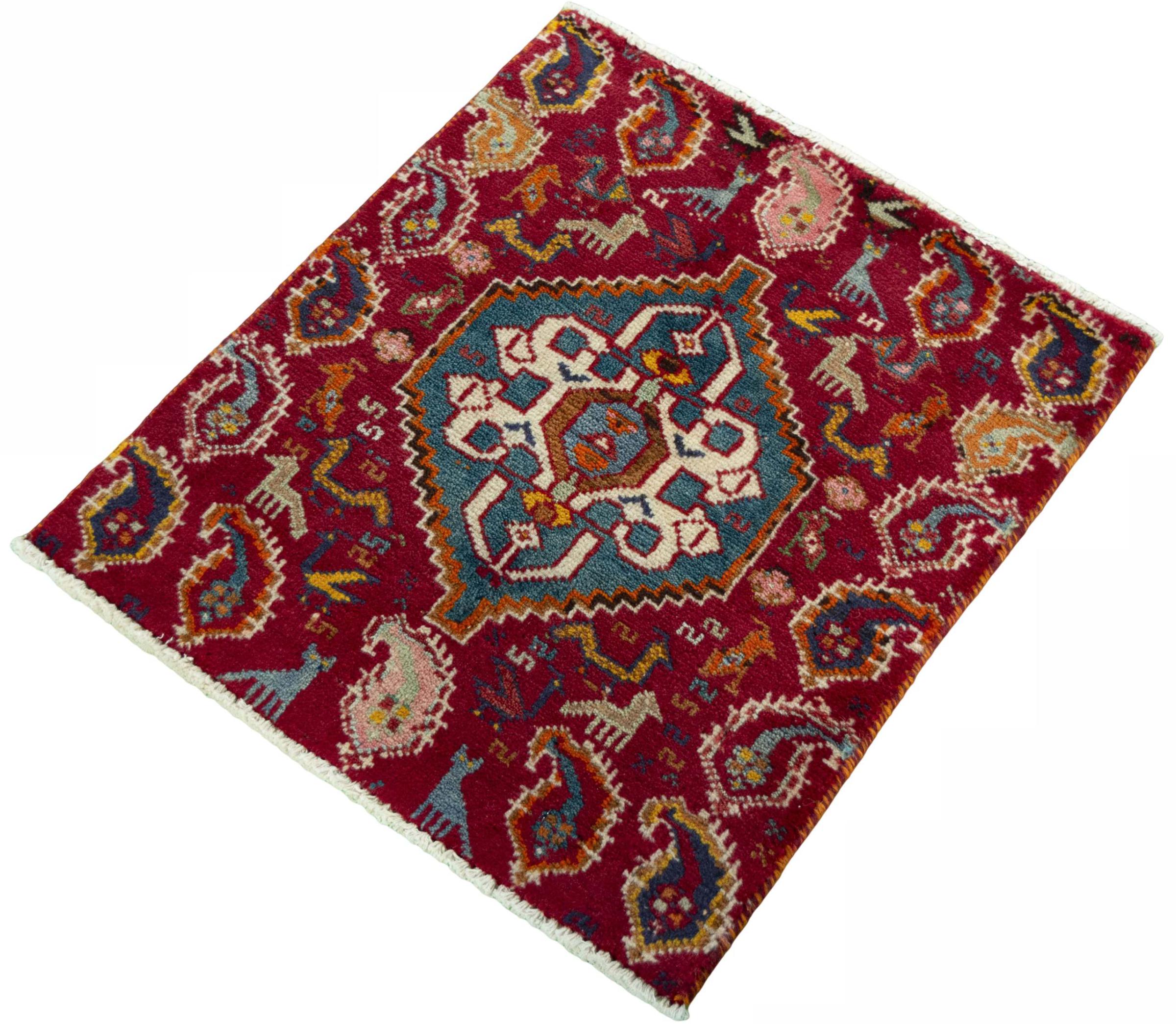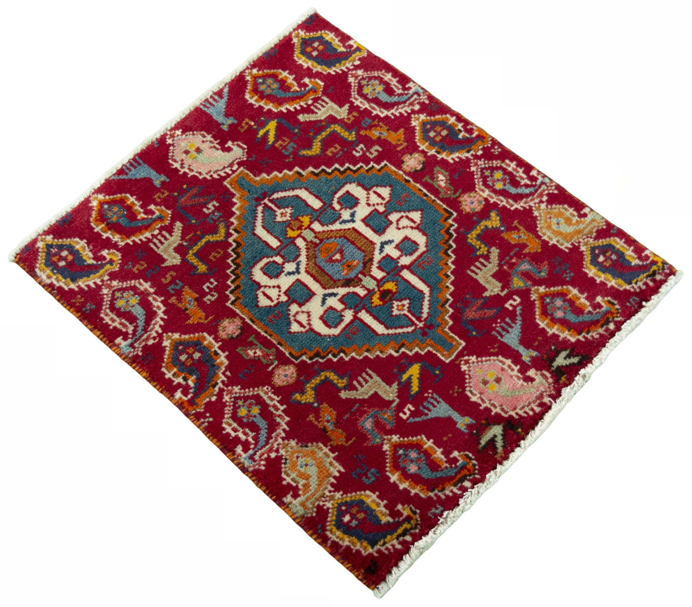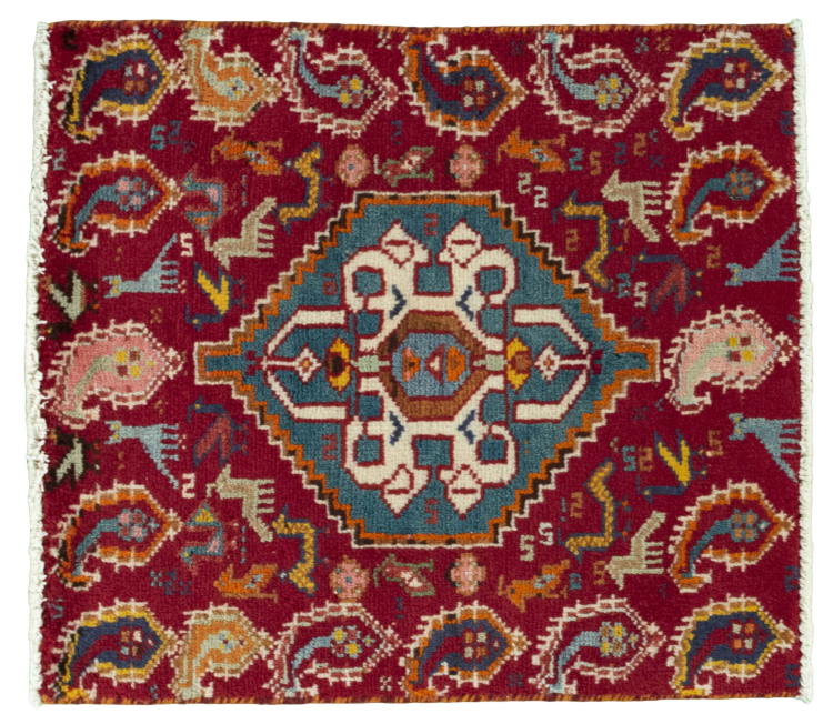 Nr.dywanu: 300148006680547 Wielkość: 57x50 cm Grubość: ok. 10 mm Gęstość tkania: 96 000 - 120 000 / m² Przetwarzanie: Ręcznie tkane Włosie: Wełna ręcznie przędzona Osnowa: Wełna Pochodzenie: Persja / Iran Wiek: nowe Waga: ok. 1 kg Ilość w magazynie: Unikalny - Tylko 1 na składzie