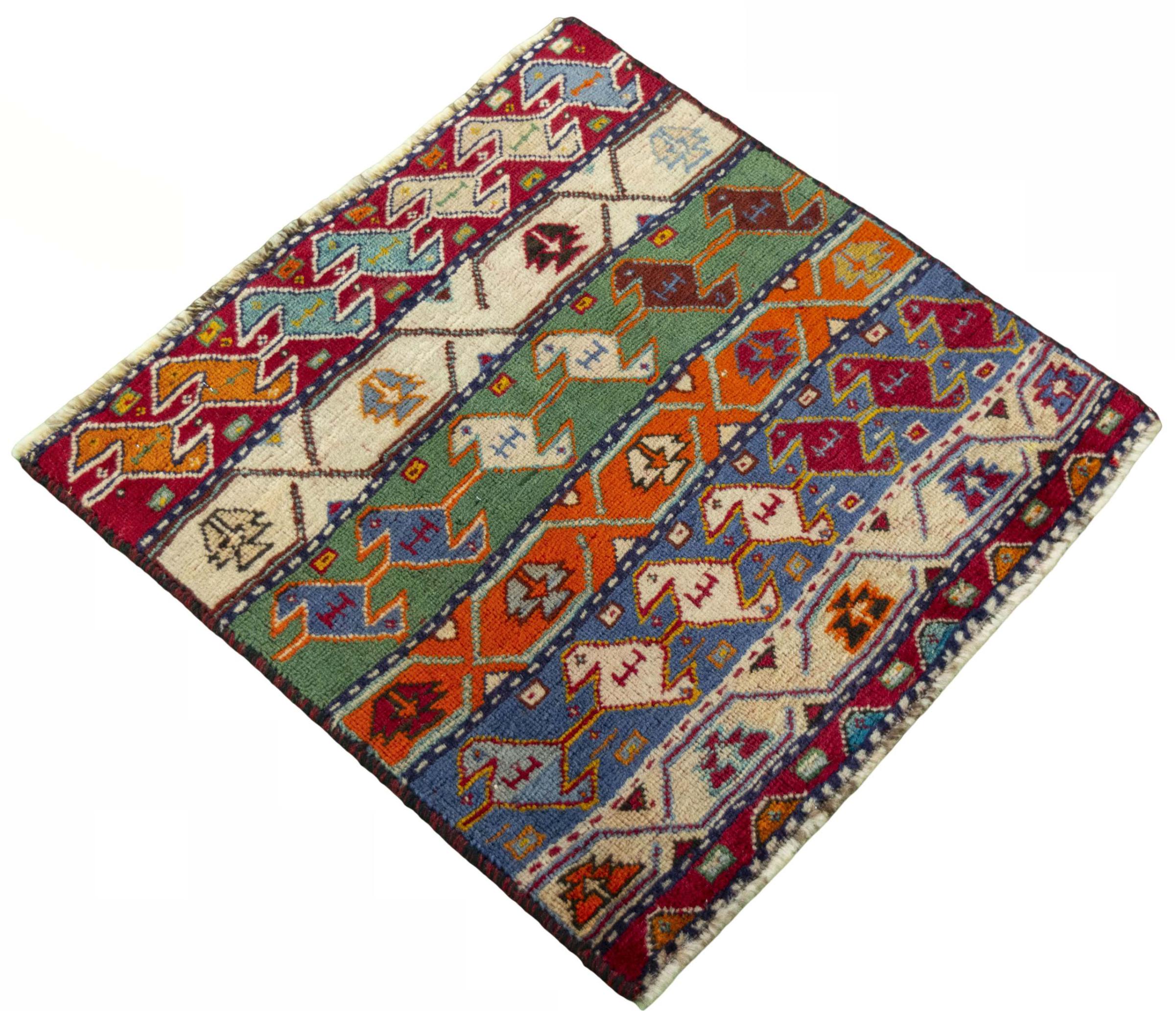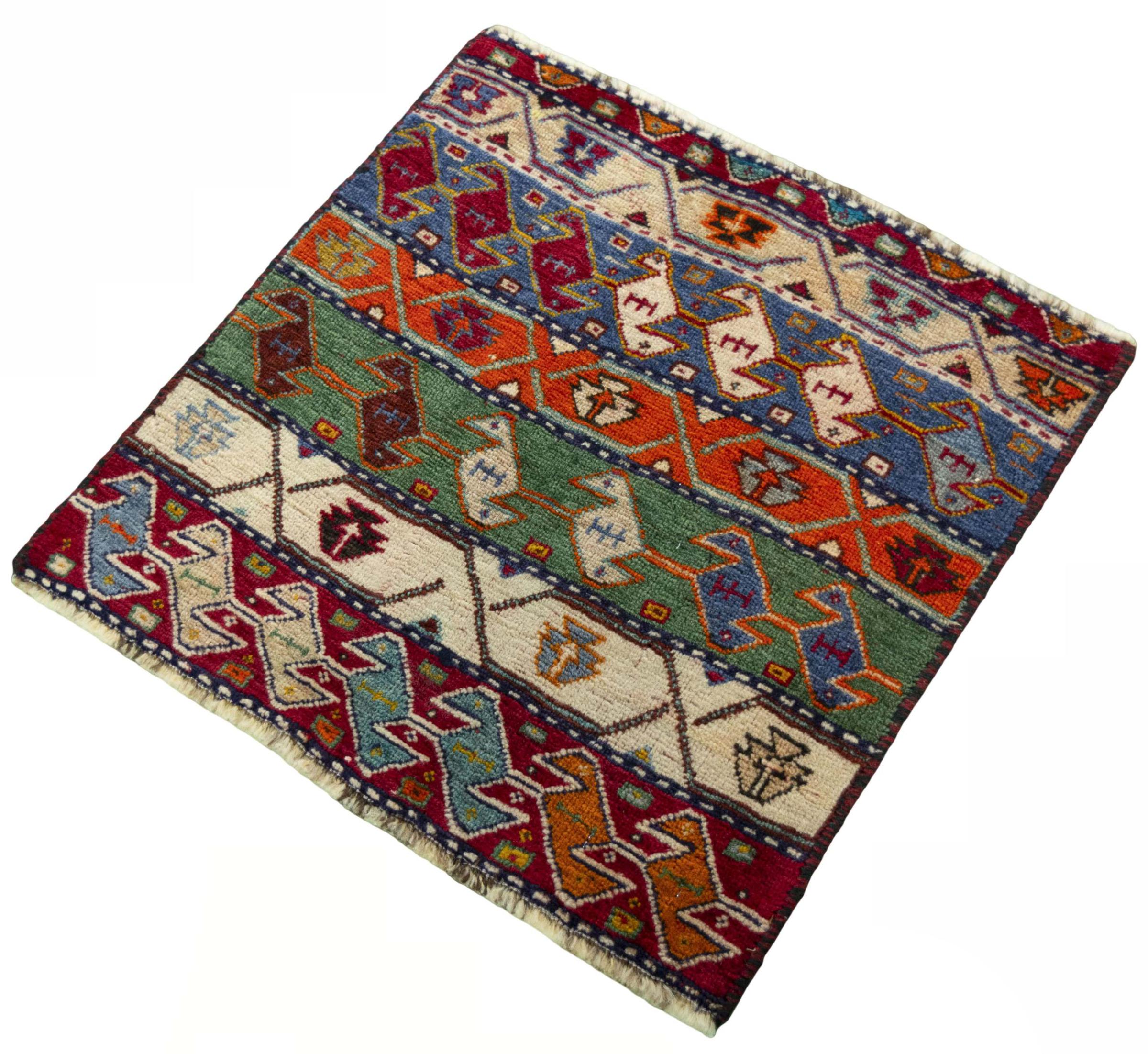 Nr.dywanu: 300166001505360 Wielkość: 57x57 cm Grubość: ok. 10 mm Gęstość tkania: 96 000 - 120 000 / m² Przetwarzanie: Ręcznie tkane Włosie: Wełna ręcznie przędzona Osnowa: Wełna Pochodzenie: Persja / Iran Wiek: nowe Waga: ok. 1 kg Ilość w magazynie: Unikalny - Tylko 1 na składzie