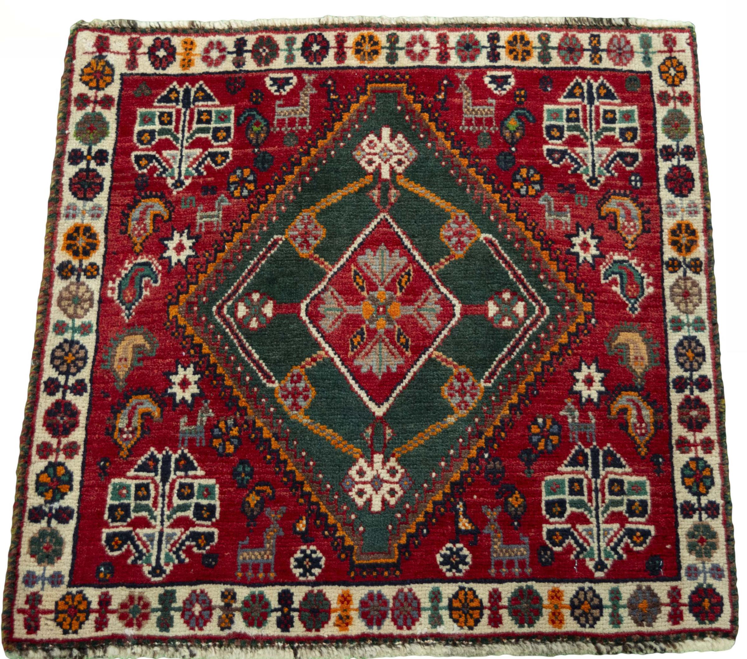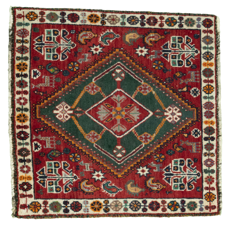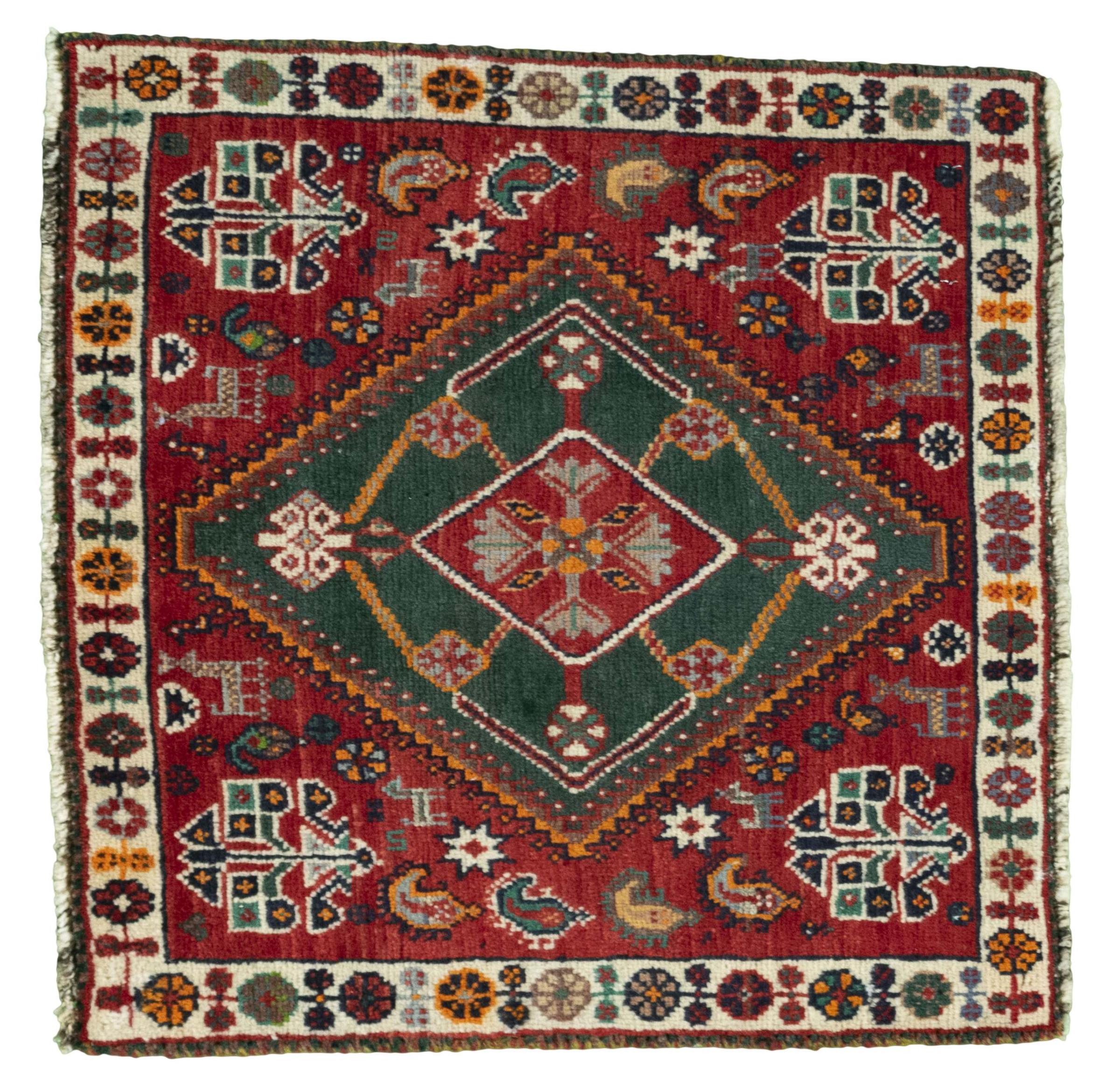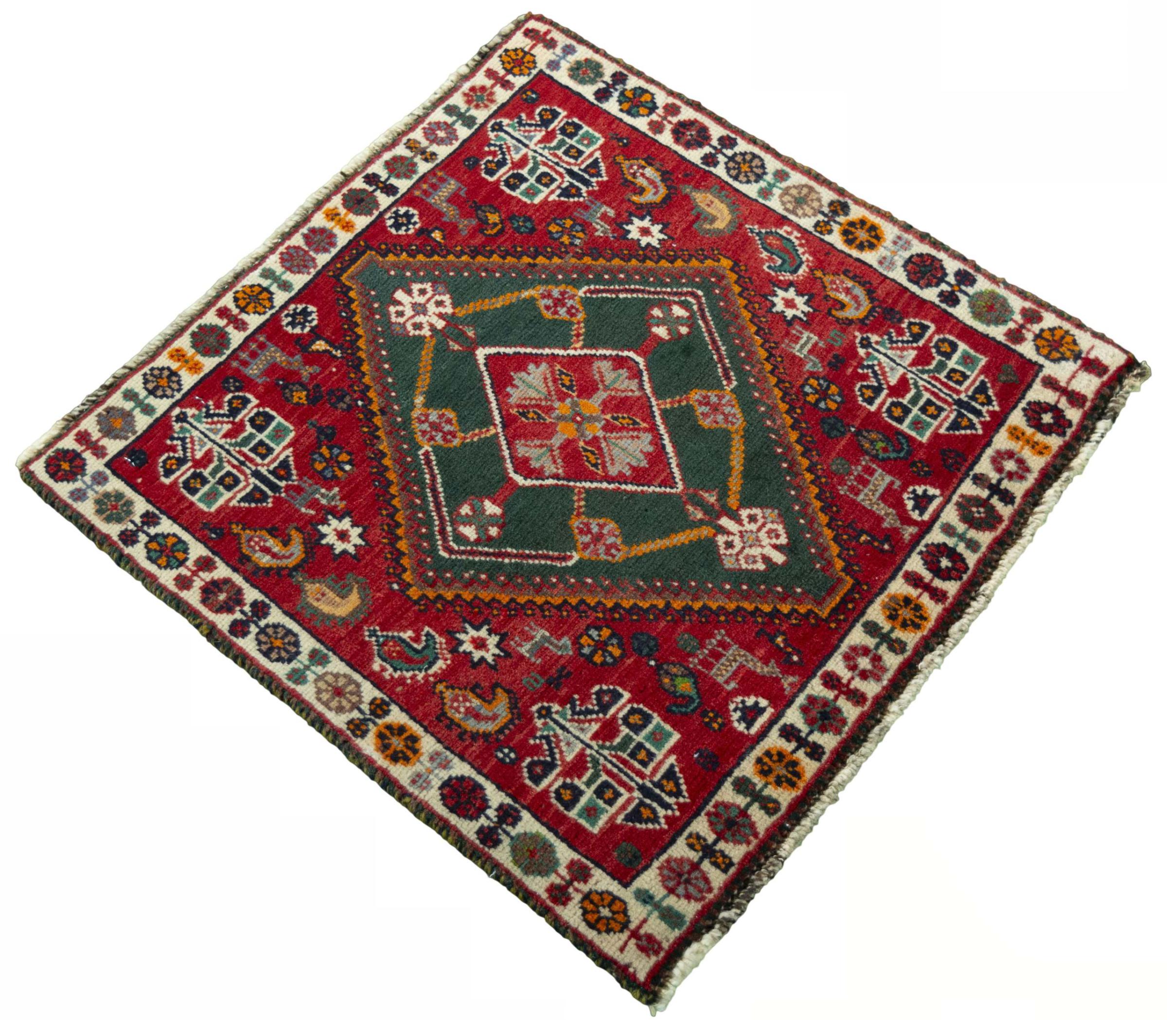 Nr.dywanu: 300165004593322 Wielkość: 57x59 cm Grubość: ok. 10 mm Gęstość tkania: 96 000 - 120 000 / m² Przetwarzanie: Ręcznie tkane Włosie: Wełna ręcznie przędzona Osnowa: Wełna Pochodzenie: Persja / Iran Wiek: nowe Waga: ok. 1 kg Ilość w magazynie: Unikalny - Tylko 1 na składzie
