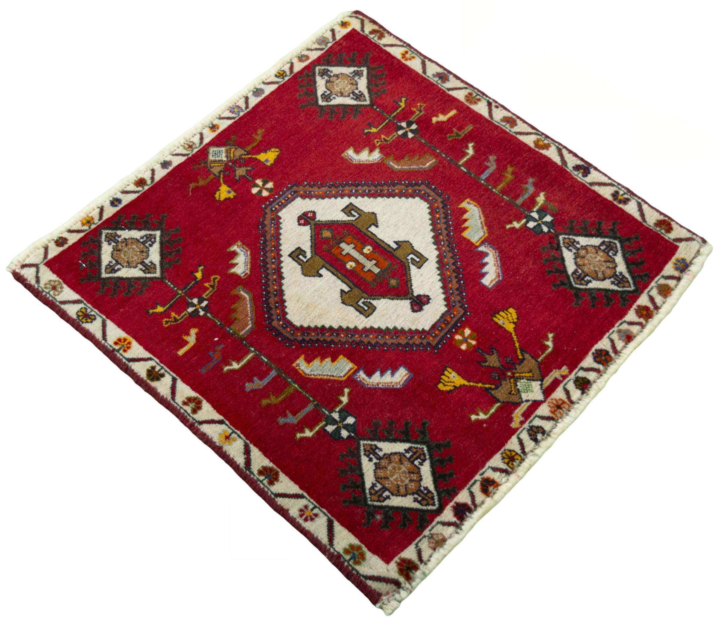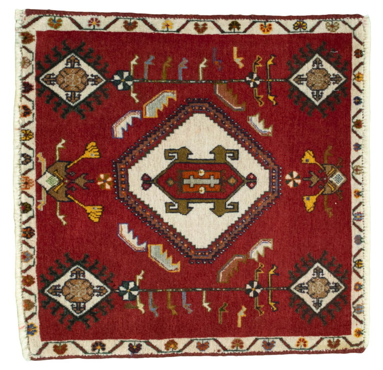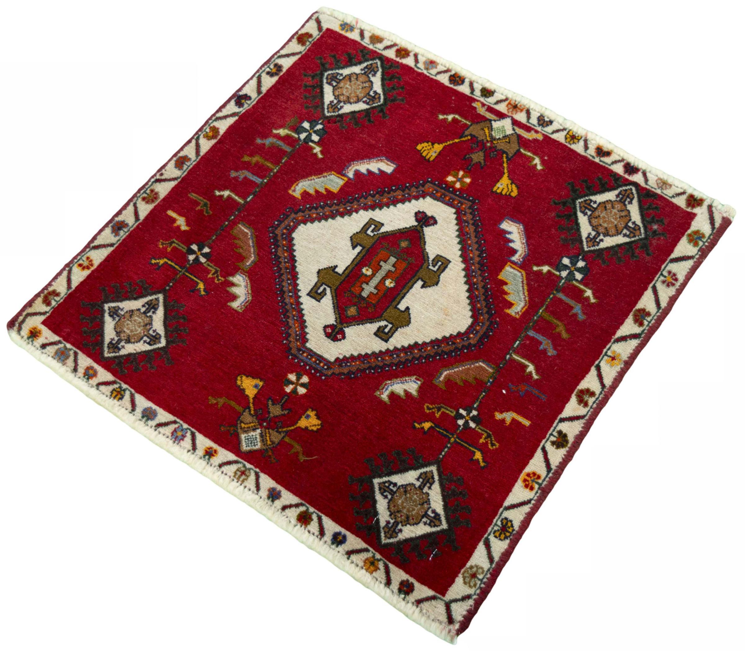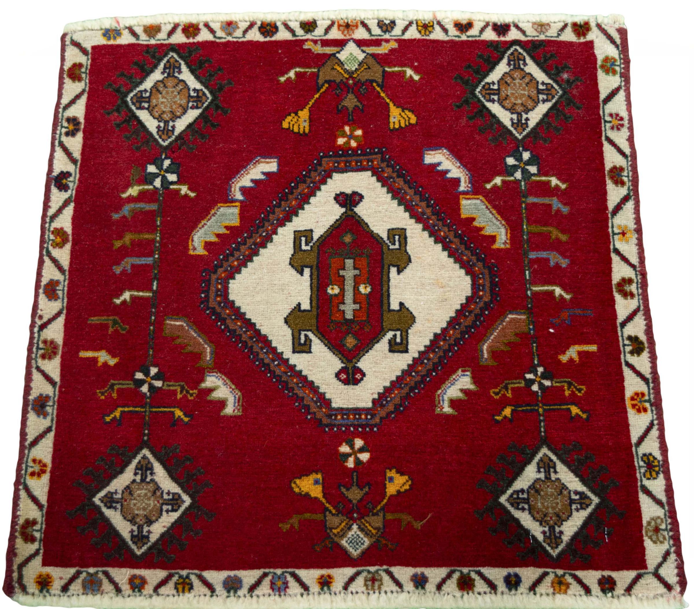 Nr.dywanu: 300182006146051 Wielkość: 59x59 cm Grubość: ok. 10 mm Gęstość tkania: 96 000 - 120 000 / m² Przetwarzanie: Ręcznie tkane Włosie: Wełna ręcznie przędzona Osnowa: Wełna Pochodzenie: Persja / Iran Wiek: nowe Waga: ok. 1 kg Ilość w magazynie: Unikalny - Tylko 1 na składzie