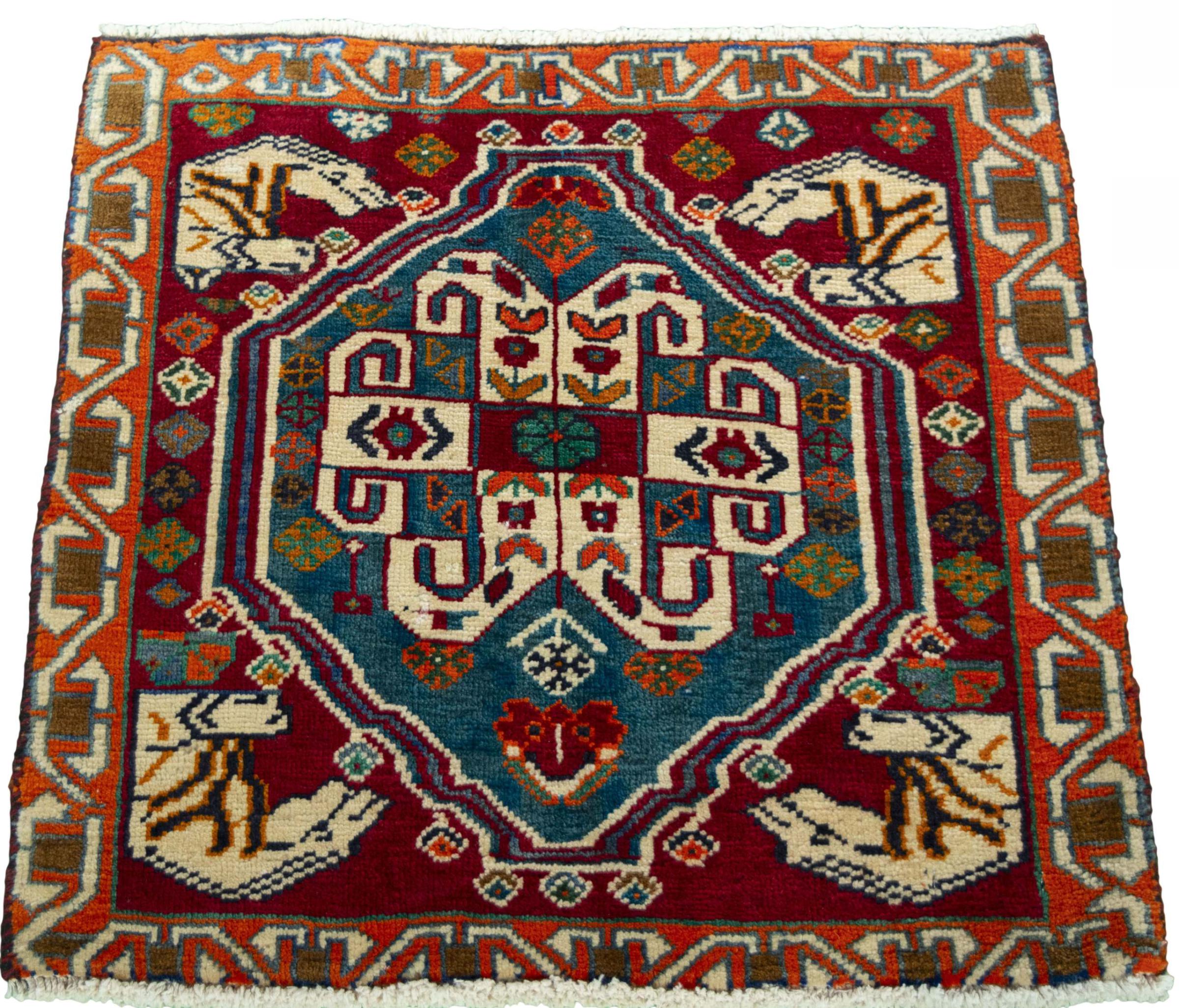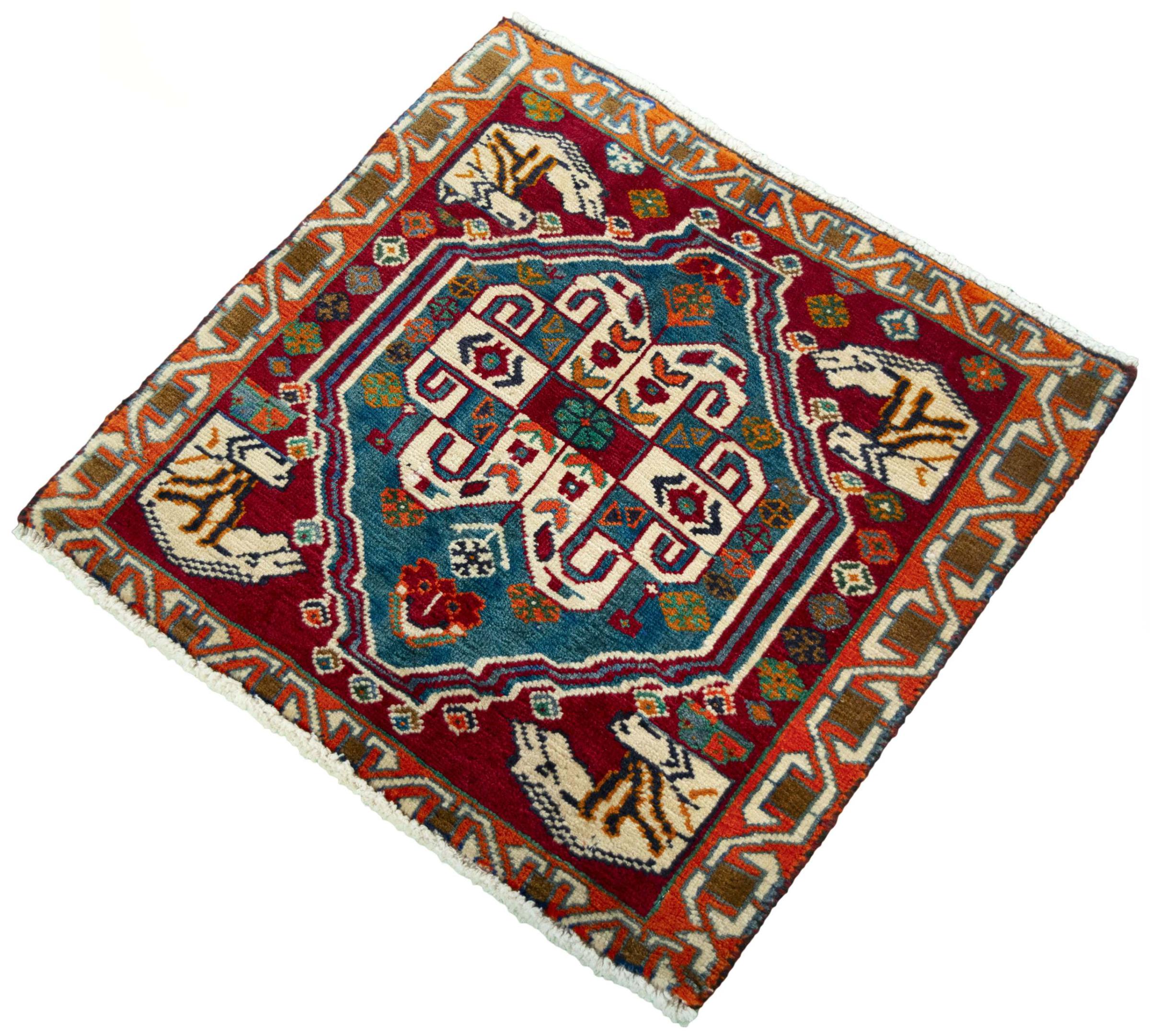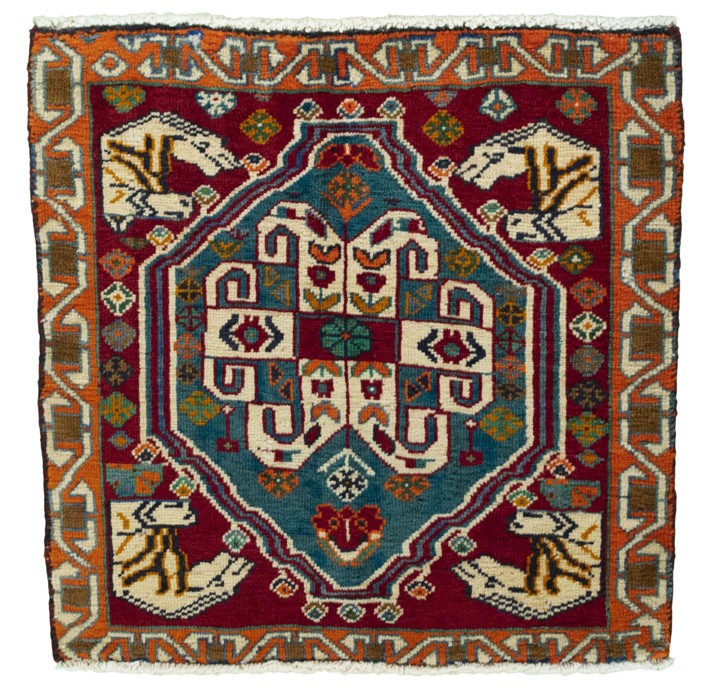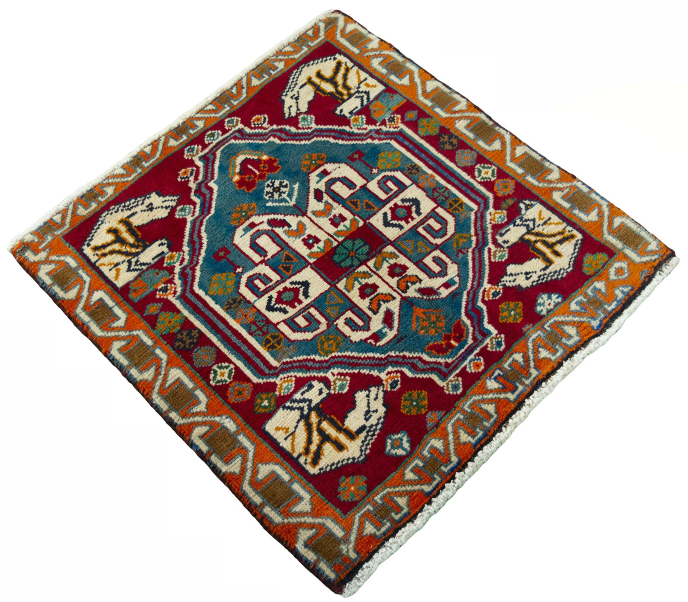 Nr.dywanu: 300150002487185 Wielkość: 63x64 cm Grubość: ok. 10 mm Gęstość tkania: 96 000 - 120 000 / m² Przetwarzanie: Ręcznie tkane Włosie: Wełna ręcznie przędzona Osnowa: Wełna Pochodzenie: Persja / Iran Wiek: nowe Waga: ok. 1 kg Ilość w magazynie: Unikalny - Tylko 1 na składzie