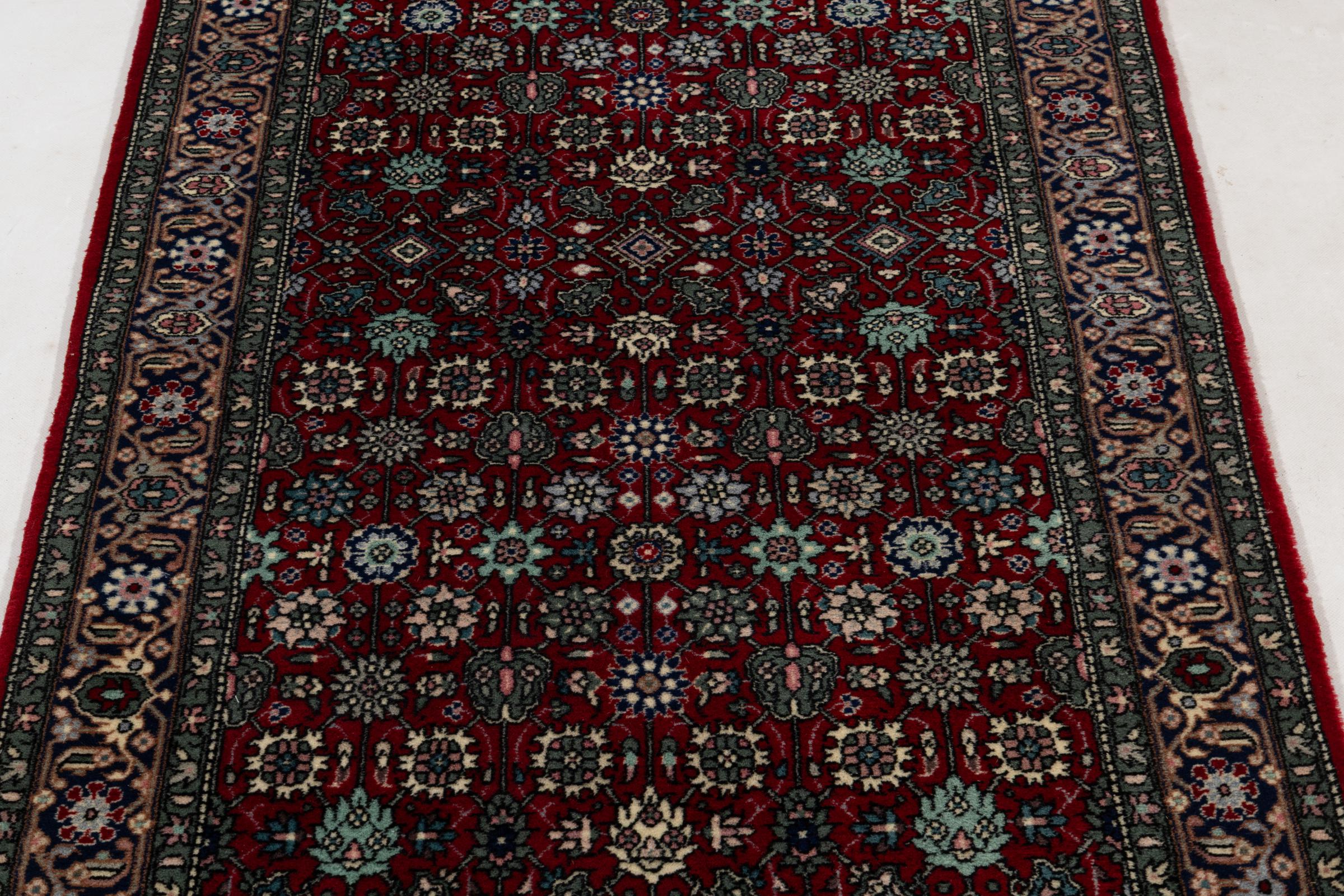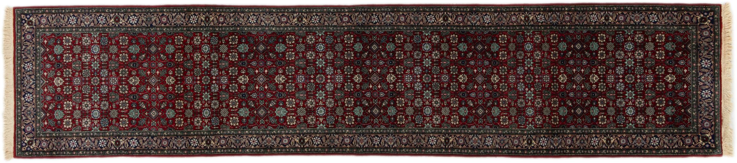 Nr.dywanu: 297142008486631 Wielkość: 365x76 cm Grubość: ok. 12 mm Gęstość tkania: 200 000 - 250 000 / m² Przetwarzanie: Ręcznie tkane Włosie: Wełna Osnowa: Bawełna Pochodzenie: Indie Wiek: ok. 20-30 lat (nowe Waga: ok. 11 kg Znany także jako Indo Täbriz Ilość w magazynie: Unikalny - Tylko 1 na składzie