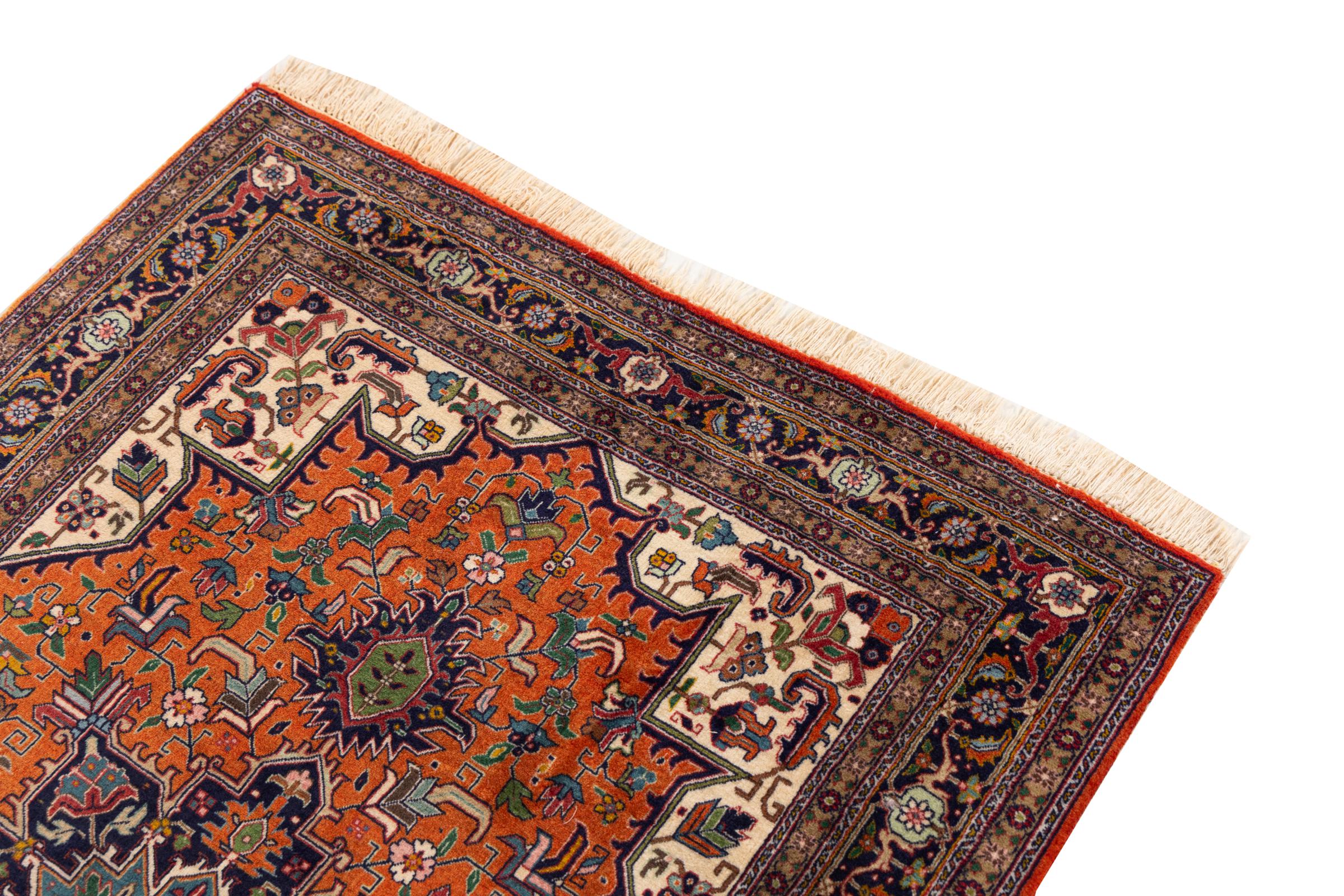 Nr.dywanu: 30697900105509 Wielkość: 145x101 cm Grubość: ok. 7 mm Gęstość tkania: 440 000 - 490 000 / m² Przetwarzanie: Ręcznie tkane Włosie: Wełna ręcznie przędzona Osnowa: Bawełna Pochodzenie: Persja / Iran Wiek: nowe Waga: ok. 4 kg Znany także jako Tabriz, Tabris, Täbris, Tebriz, Tebris, 40Raj, 50Raj Ilość w magazynie: Unikalny - Tylko 1 na składzie