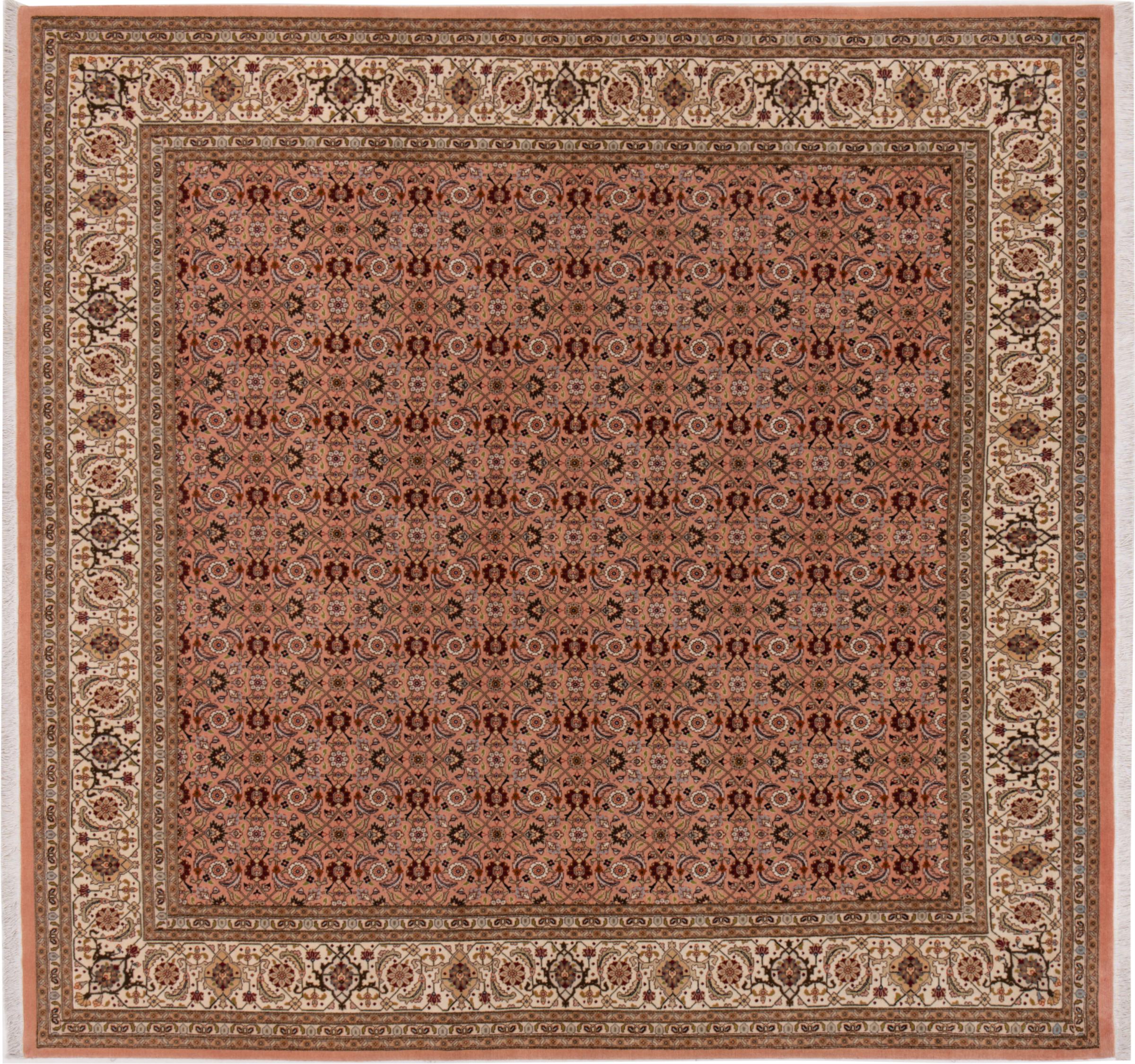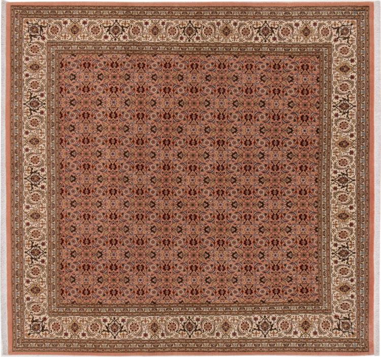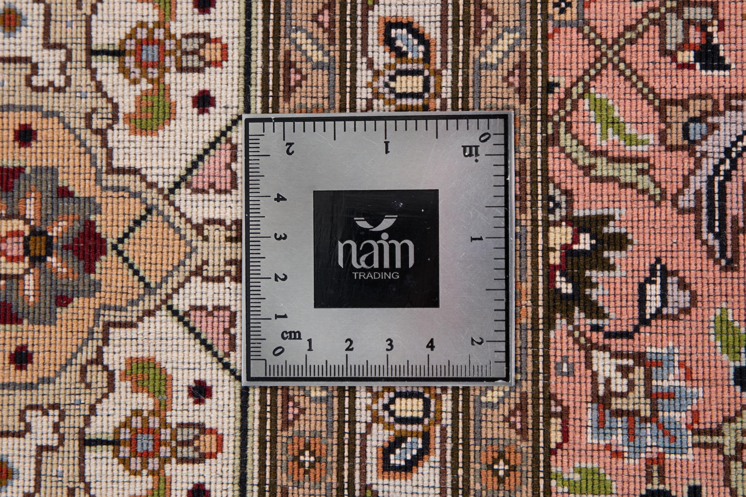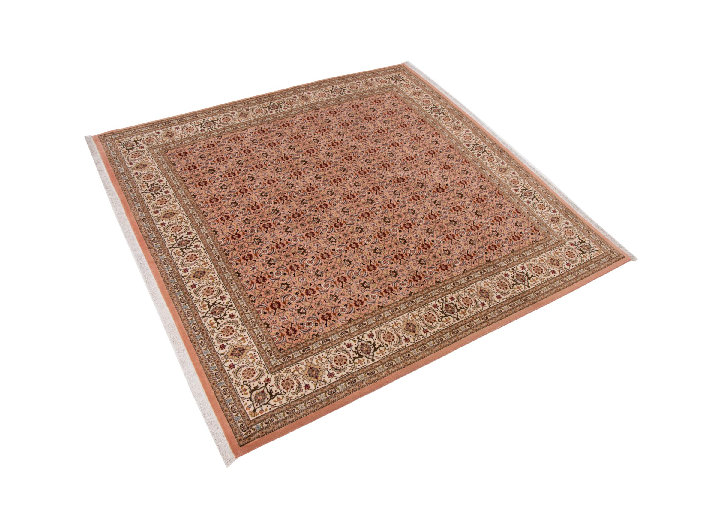 Nr.dywanu: 293028004230734 Wielkość: 208x198 cm Grubość: ok. 7 mm Gęstość tkania: 440 000 - 490 000 / m² Przetwarzanie: Ręcznie tkane Włosie: Wełna z jedwabiem Osnowa: Bawełna Pochodzenie: Persja / Iran Wiek: nowe Waga: ok. 12 kg Znany także jako Tabriz, Tabris, Täbris, Tebriz, Tebris, 40Raj, 50Raj Ilość w magazynie: Unikalny - Tylko 1 na składzie