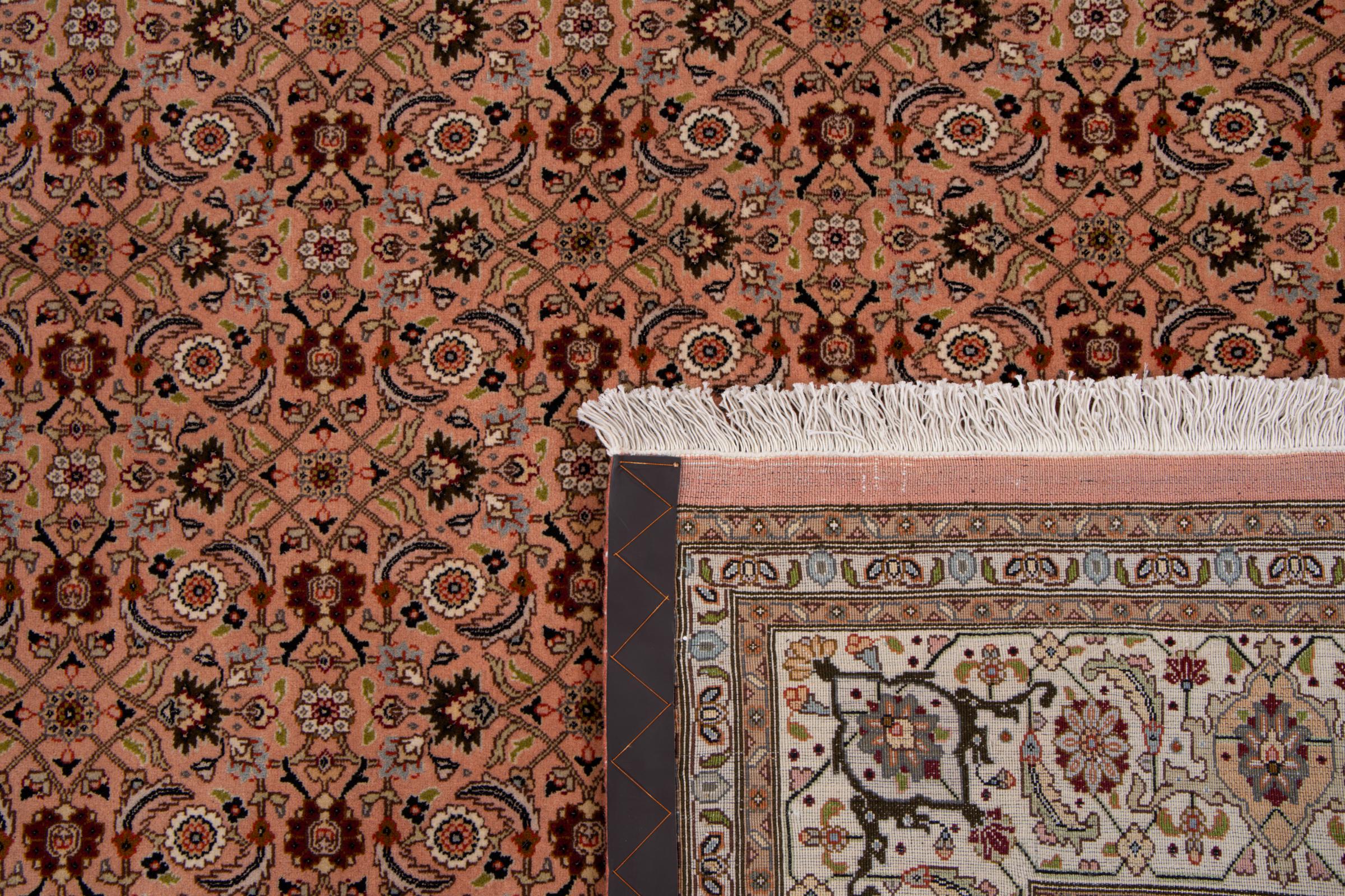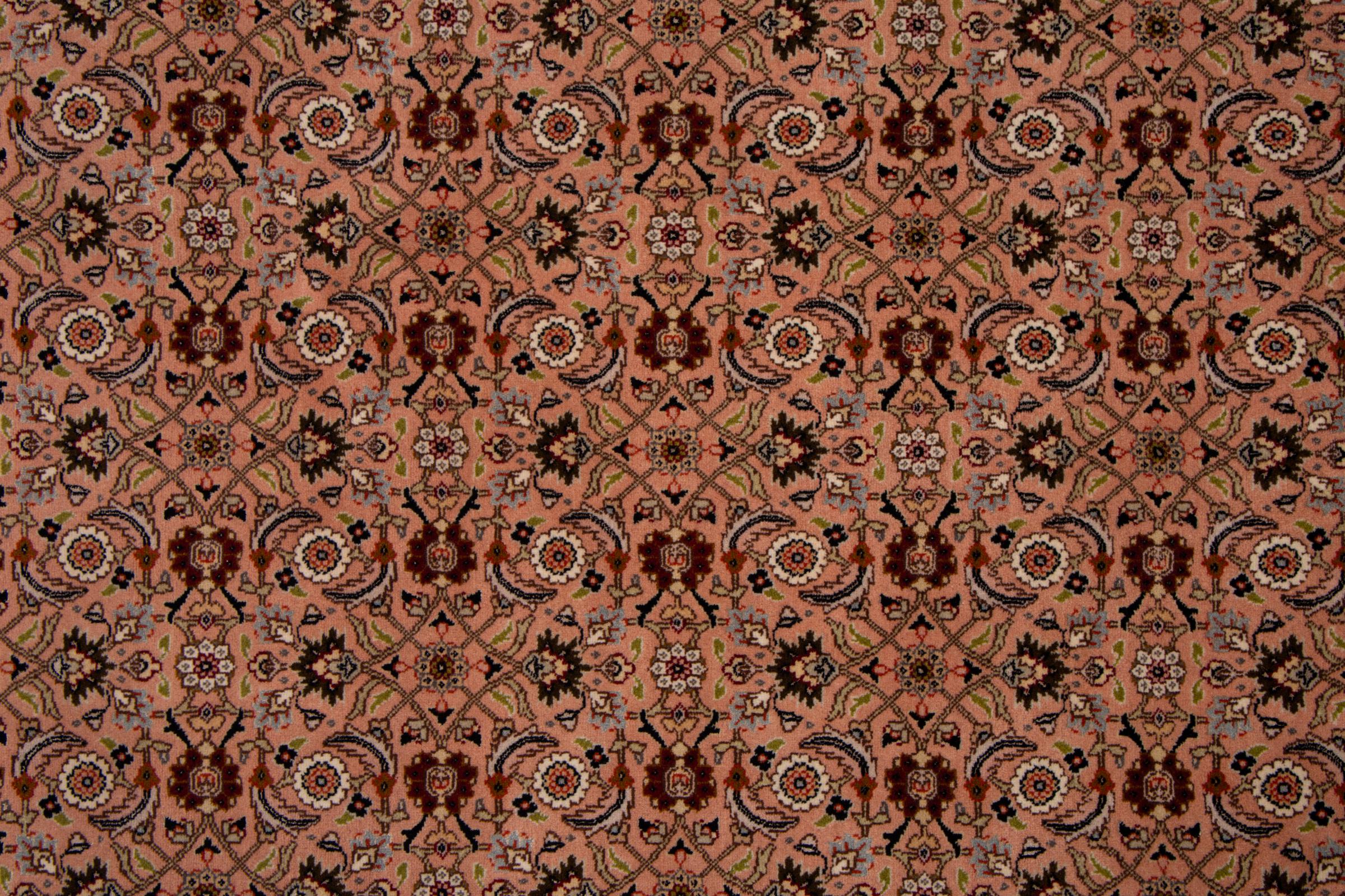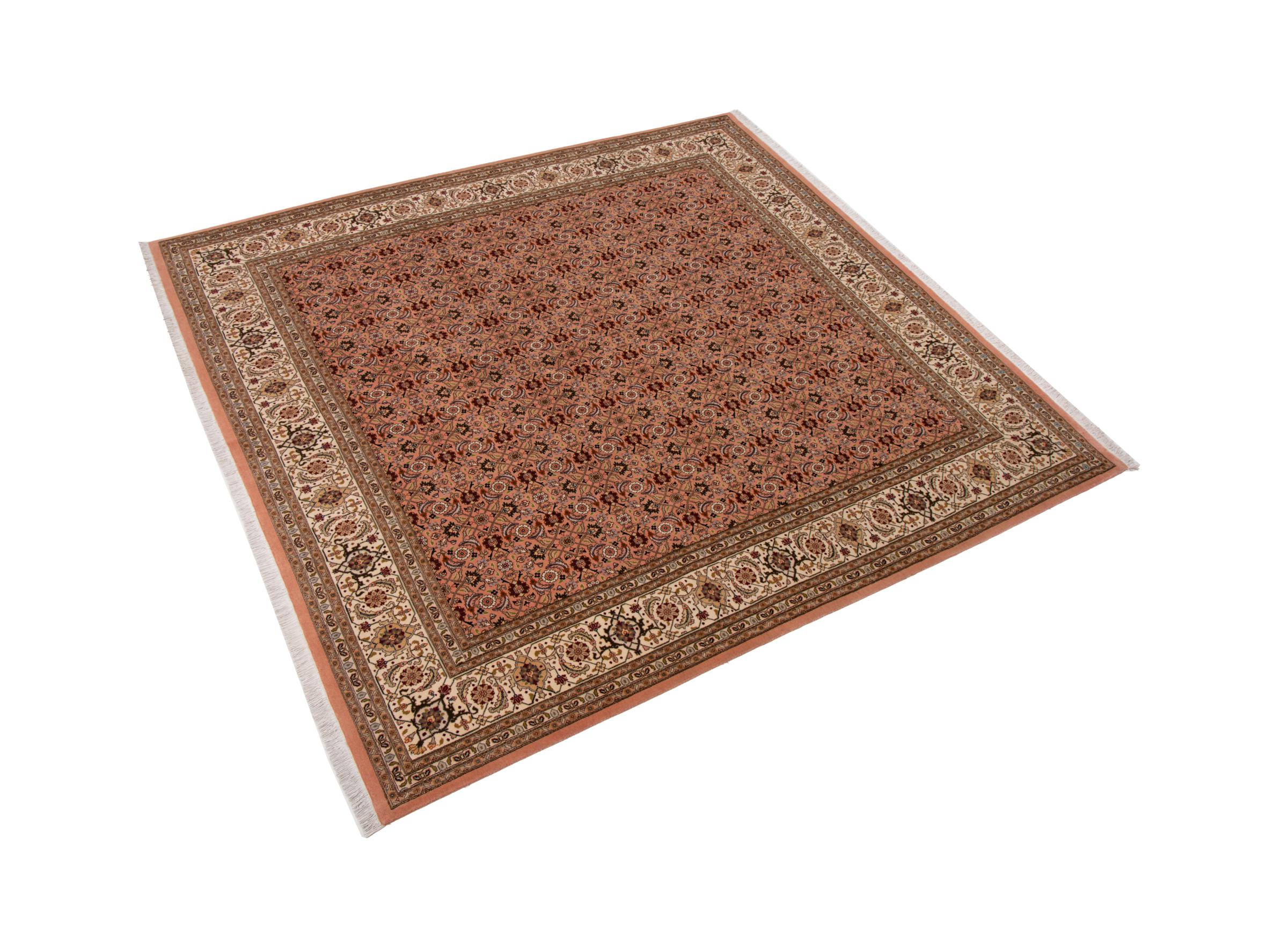 Nr.dywanu: 293028004230734 Wielkość: 208x198 cm Grubość: ok. 7 mm Gęstość tkania: 440 000 - 490 000 / m² Przetwarzanie: Ręcznie tkane Włosie: Wełna z jedwabiem Osnowa: Bawełna Pochodzenie: Persja / Iran Wiek: nowe Waga: ok. 12 kg Znany także jako Tabriz, Tabris, Täbris, Tebriz, Tebris, 40Raj, 50Raj Ilość w magazynie: Unikalny - Tylko 1 na składzie
