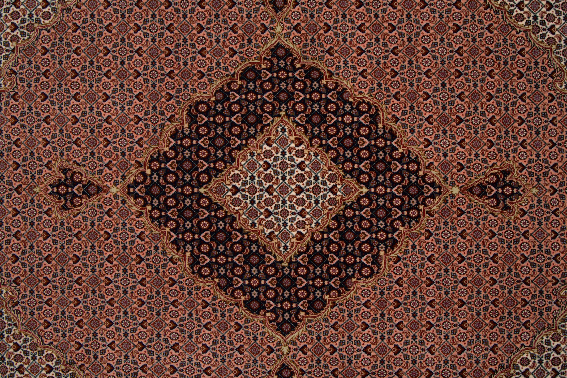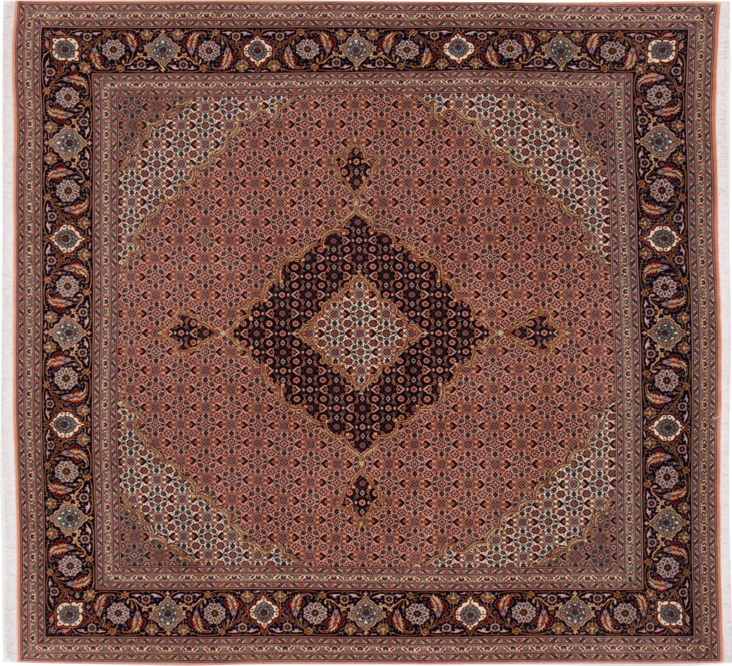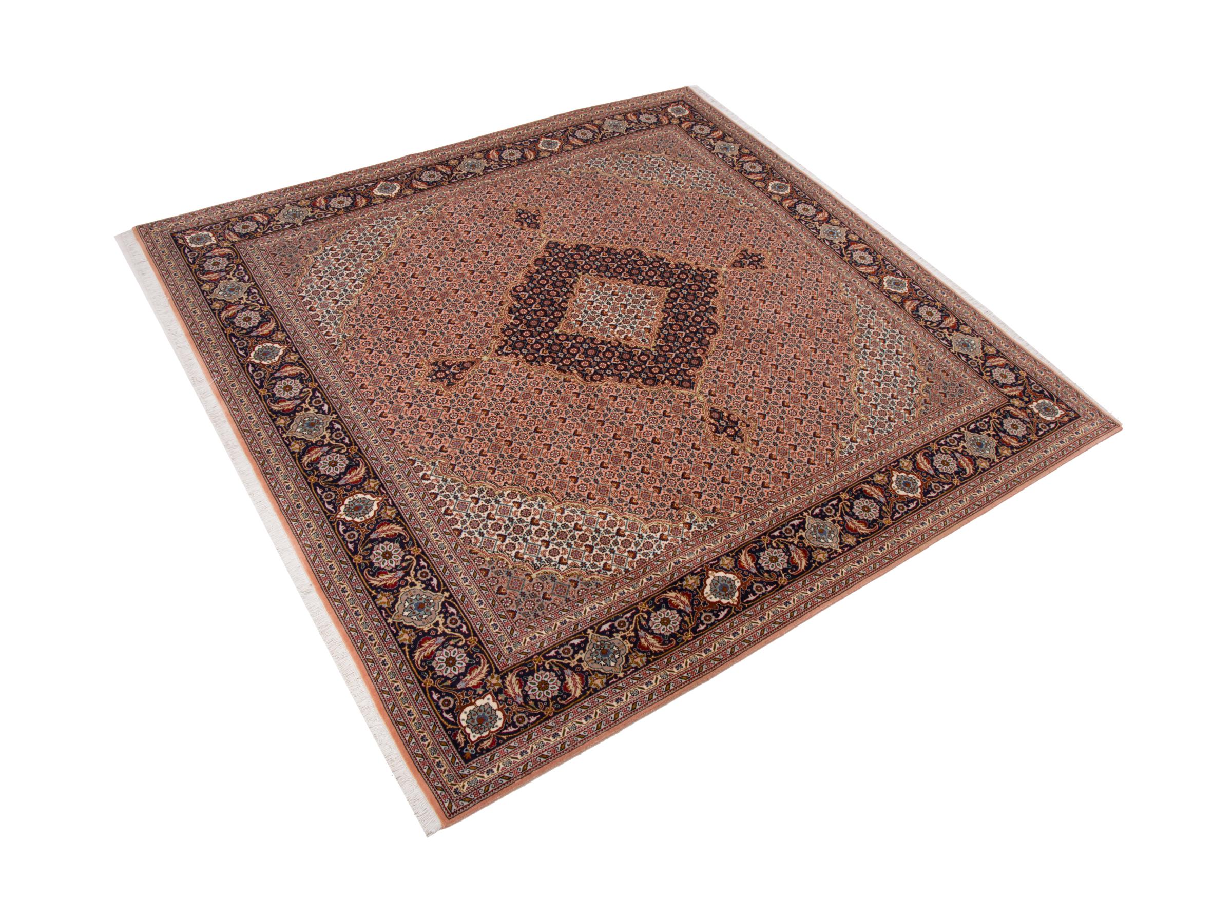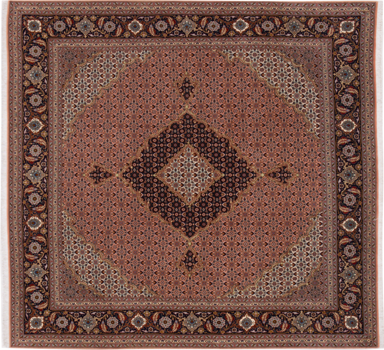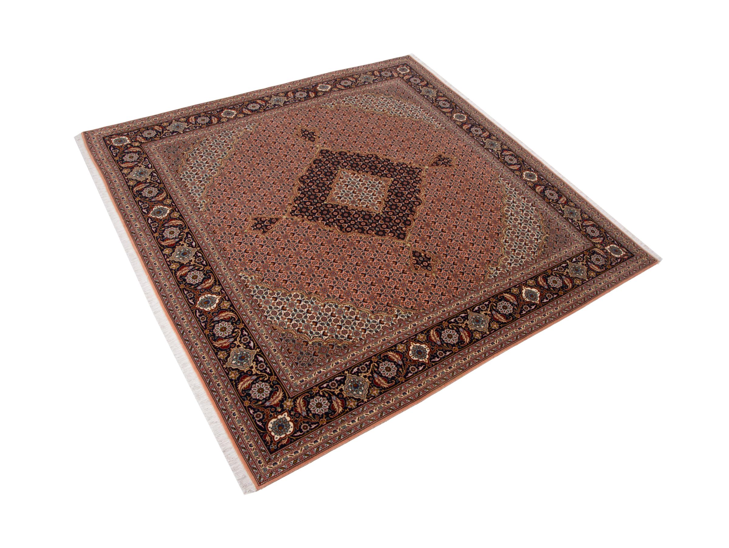 Nr.dywanu: 293033006525317 Wielkość: 213x199 cm Grubość: ok. 7 mm Gęstość tkania: 440 000 - 490 000 / m² Przetwarzanie: Ręcznie tkane Włosie: Wełna z jedwabiem Osnowa: Bawełna Pochodzenie: Persja / Iran Wiek: nowe Waga: ok. 13 kg Znany także jako Tabriz, Tabris, Täbris, Tebriz, Tebris, 40Raj, 50Raj Ilość w magazynie: Unikalny - Tylko 1 na składzie
