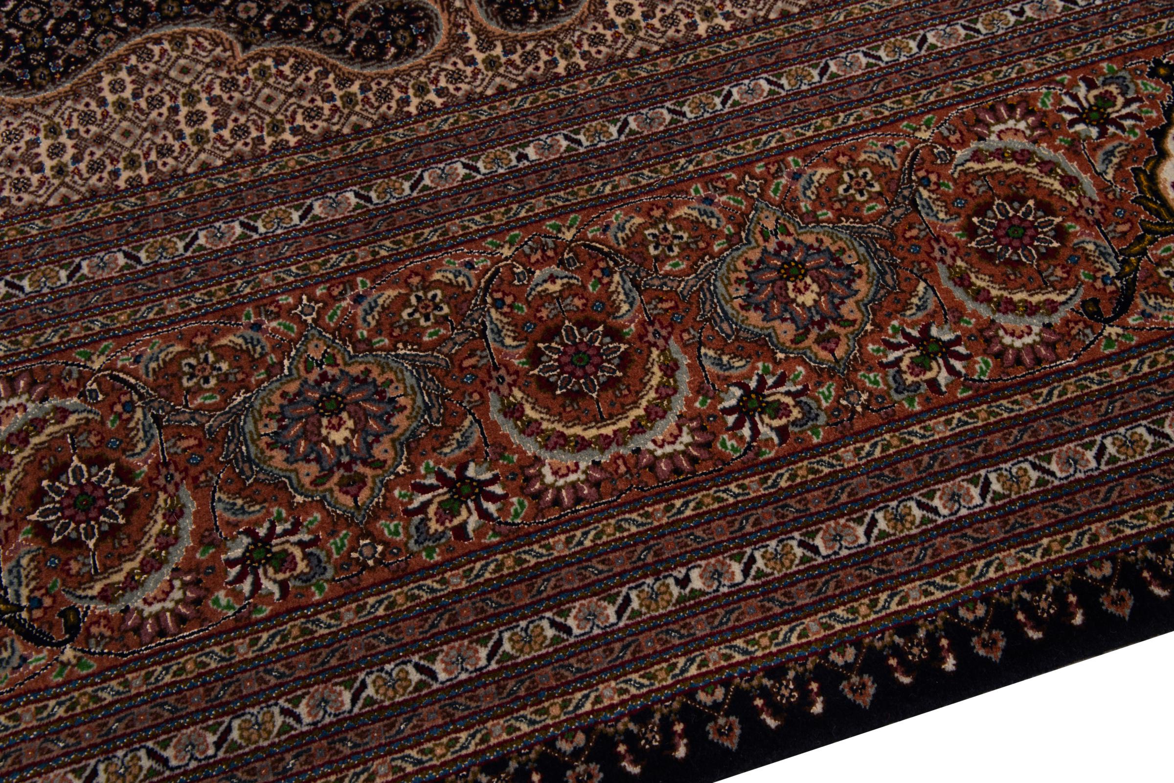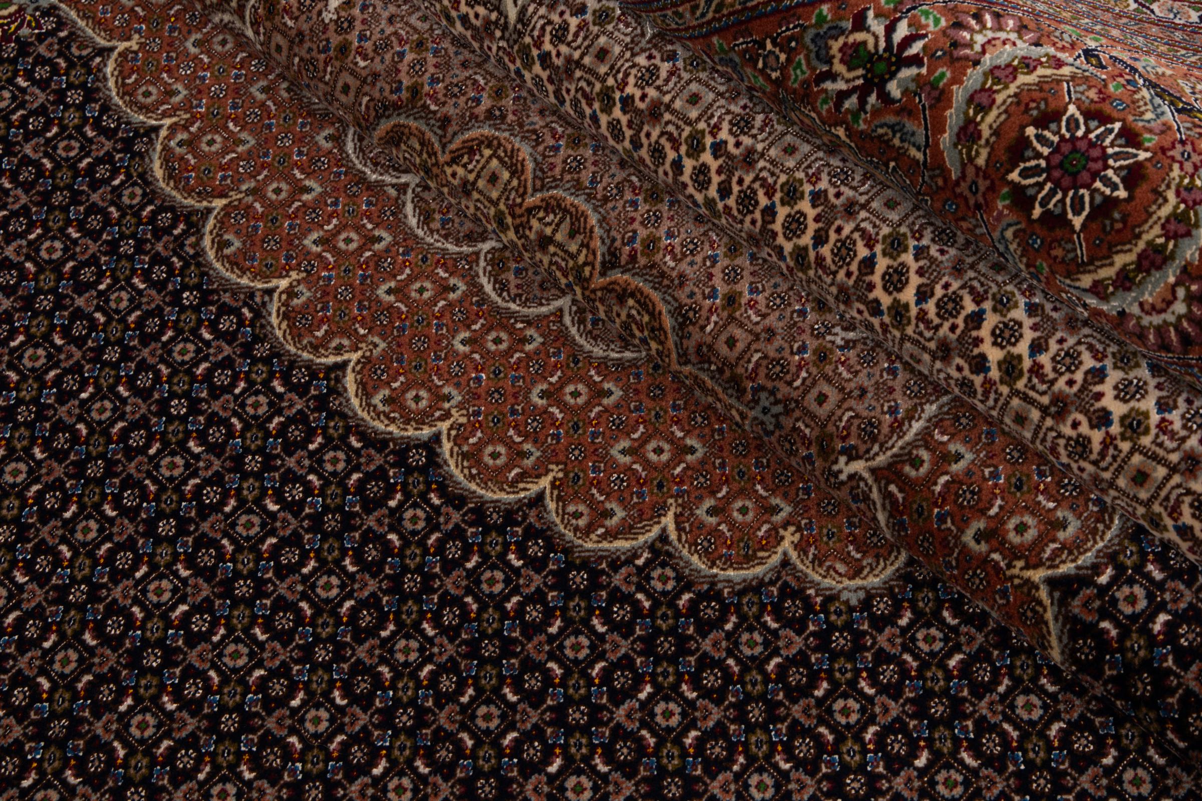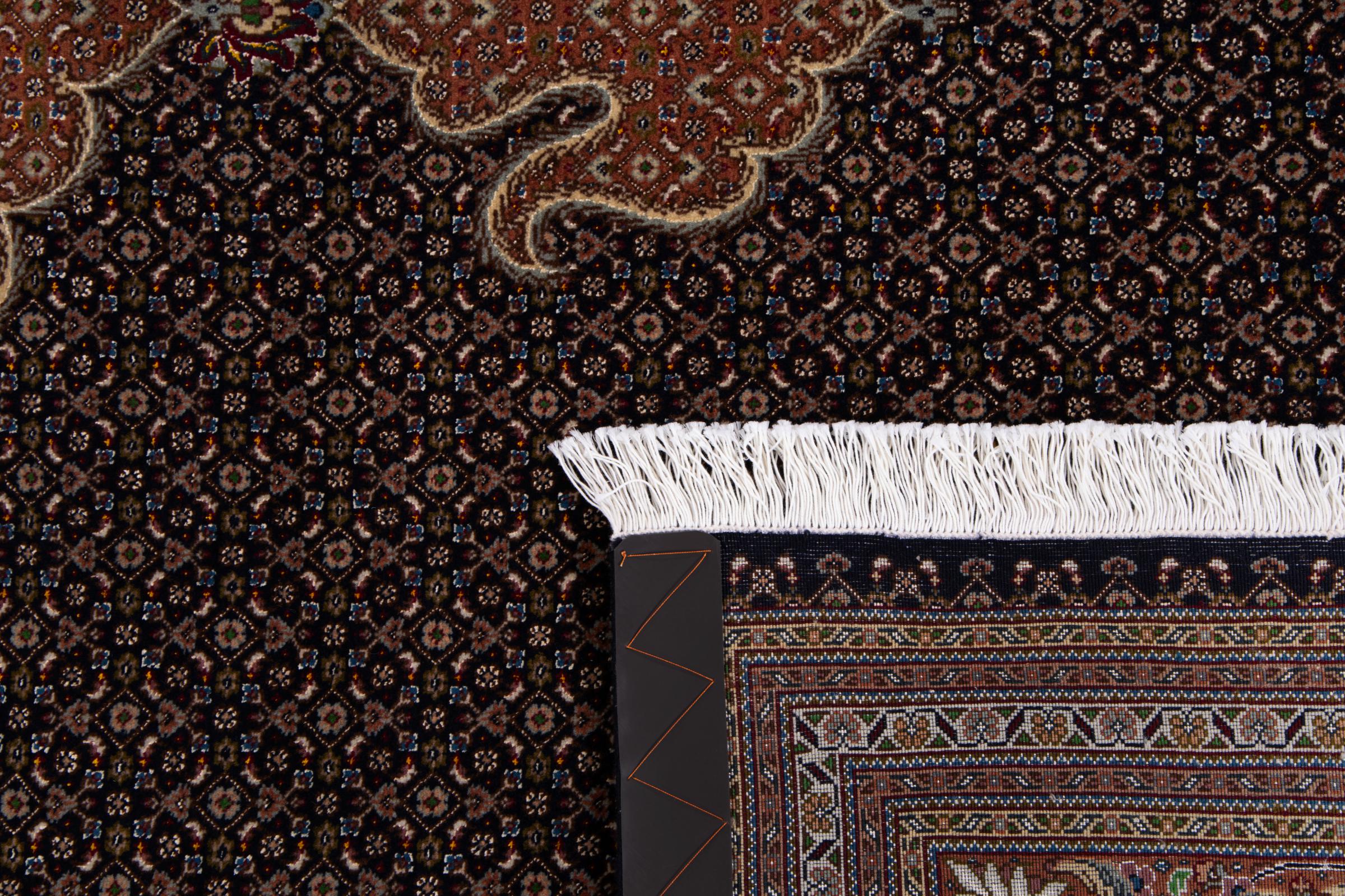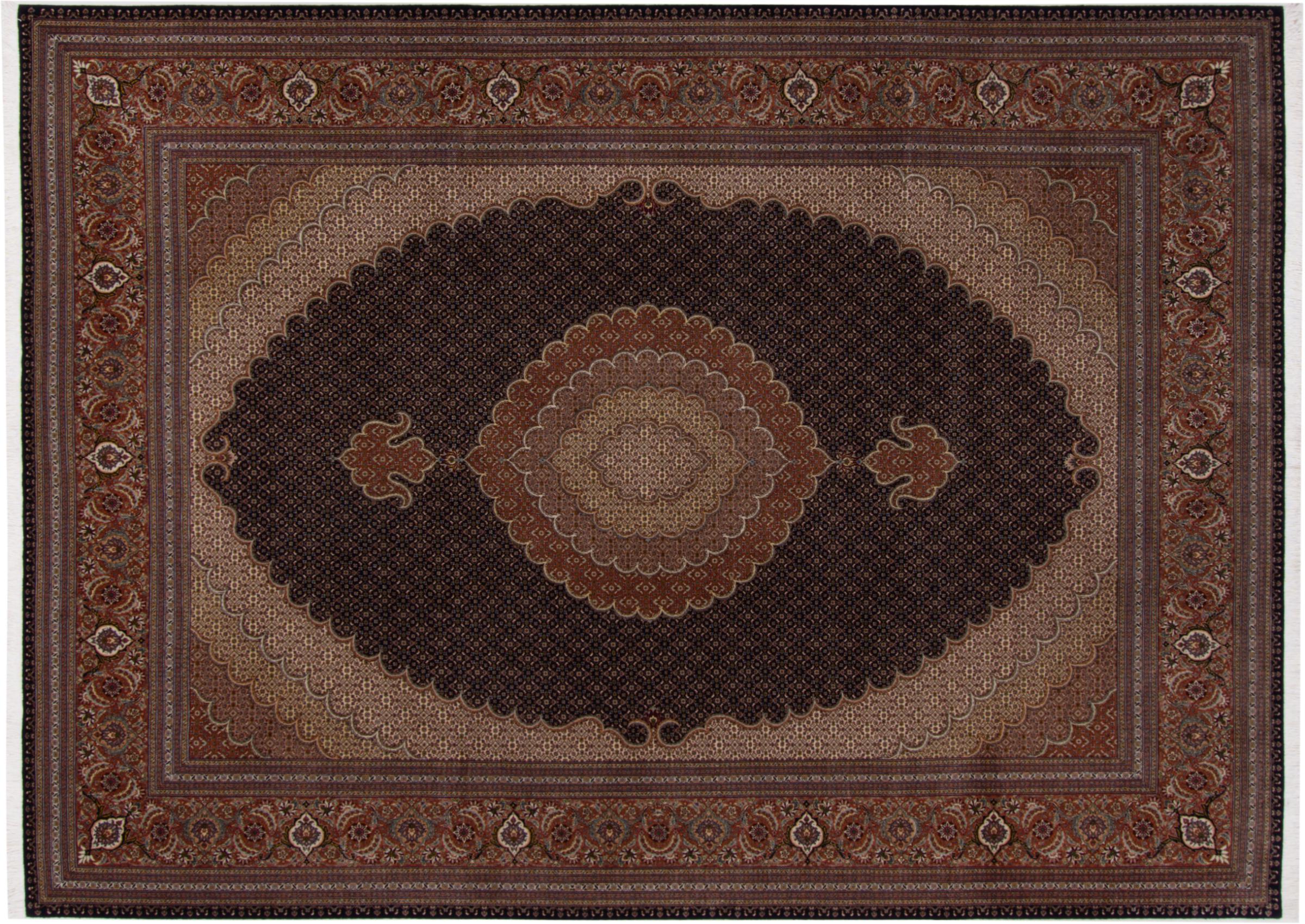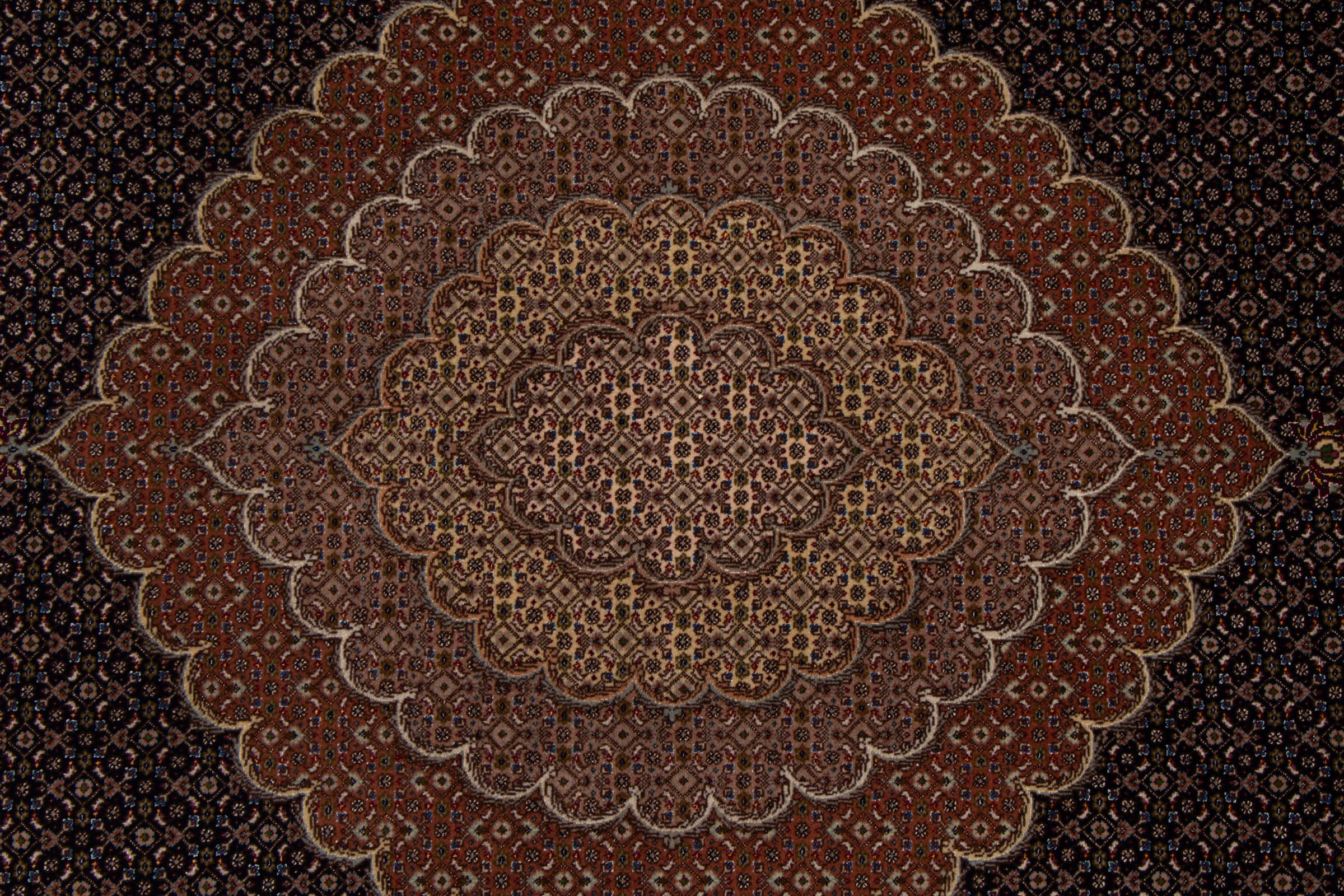 Nr.dywanu: 293801005129480 Wielkość: 345x251 cm Grubość: ok. 7 mm Gęstość tkania: 440 000 - 490 000 / m² Przetwarzanie: Ręcznie tkane Włosie: Wełna z jedwabiem Osnowa: Bawełna Pochodzenie: Persja / Iran Wiek: nowe Waga: ok. 26 kg Znany także jako Tabriz, Tabris, Täbris, Tebriz, Tebris, 40Raj, 50Raj Ilość w magazynie: Unikalny - Tylko 1 na składzie
