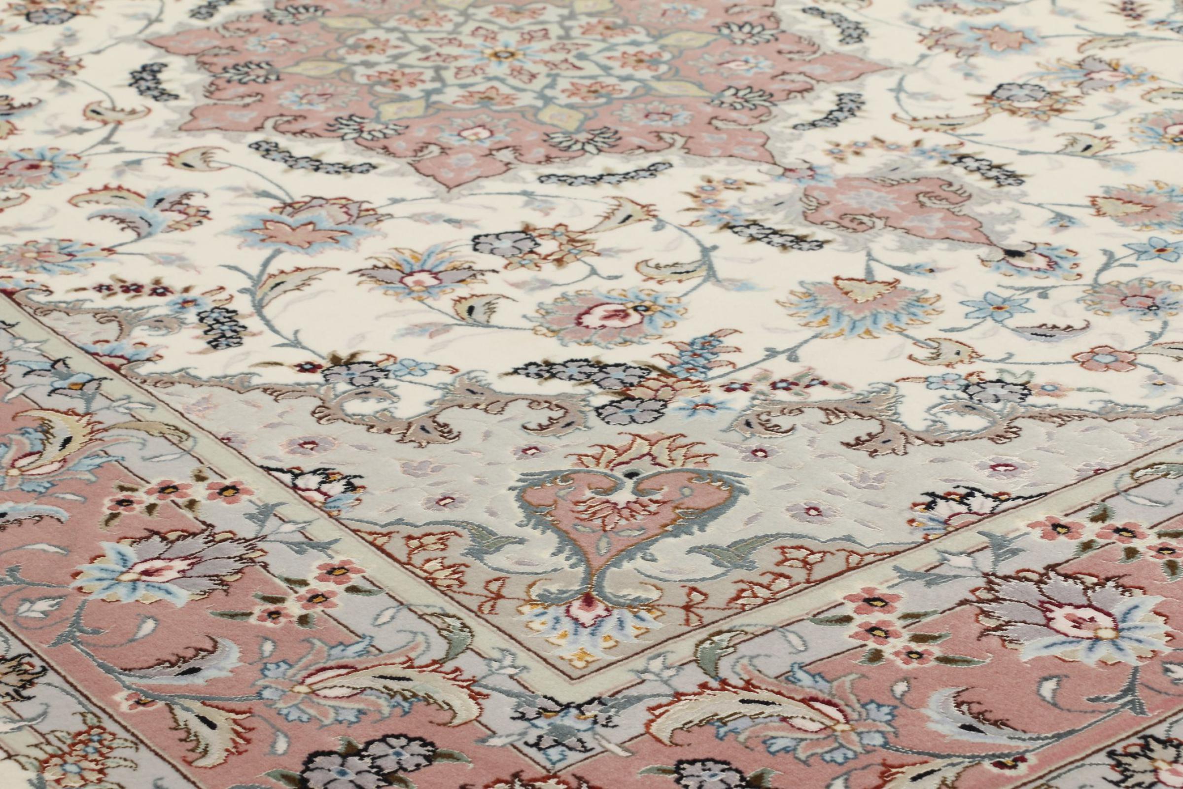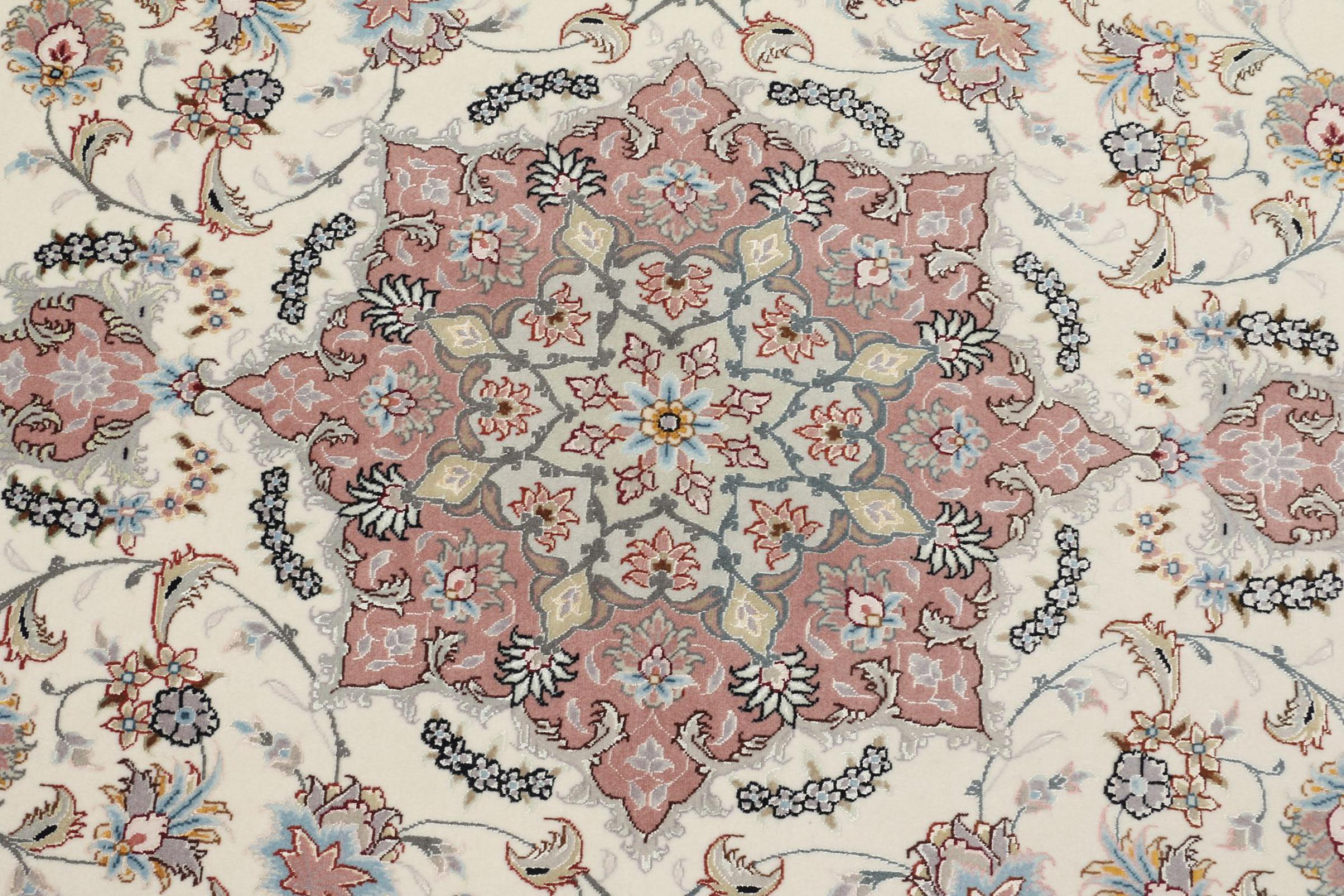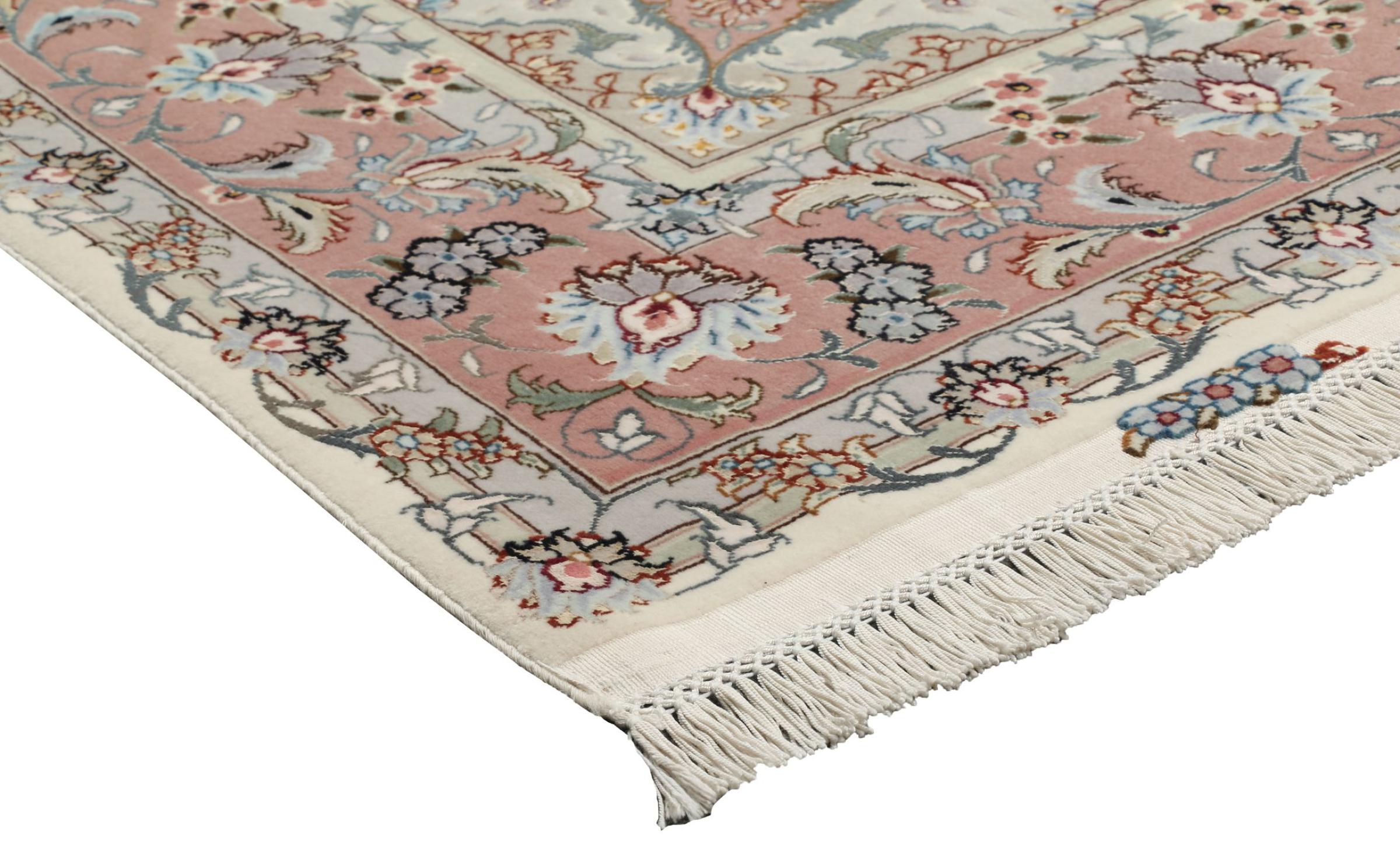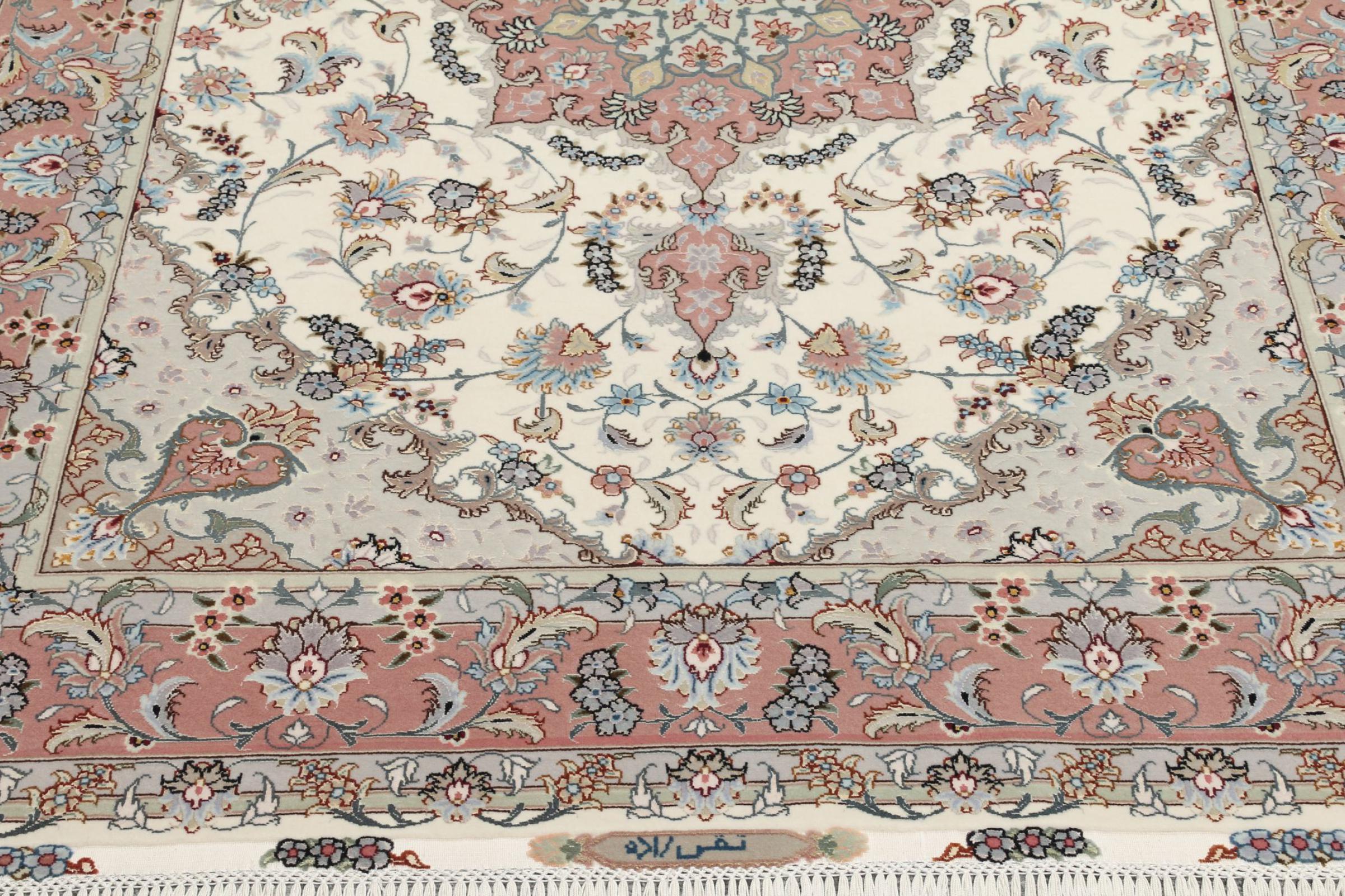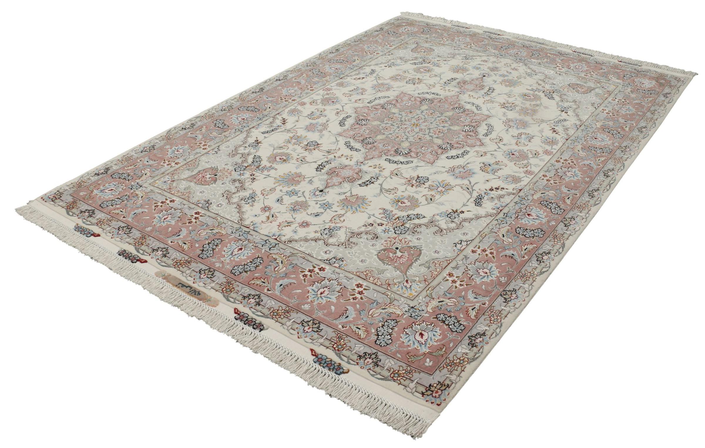 Nr.dywanu: 309109007597602 Wielkość: 205x145 cm Grubość: ok. 7 mm Gęstość tkania: 440 000 - 490 000 / m² Przetwarzanie: Ręcznie tkane Włosie: Wełna z jedwabiem Osnowa: Jewab Pochodzenie: Persja / Iran Wiek: nowe Waga: ok. 9 kg Znany także jako Tabriz, Tabris, Täbris, Tebriz, Tebris, 40Raj, 50Raj Ilość w magazynie: Unikalny - Tylko 1 na składzie