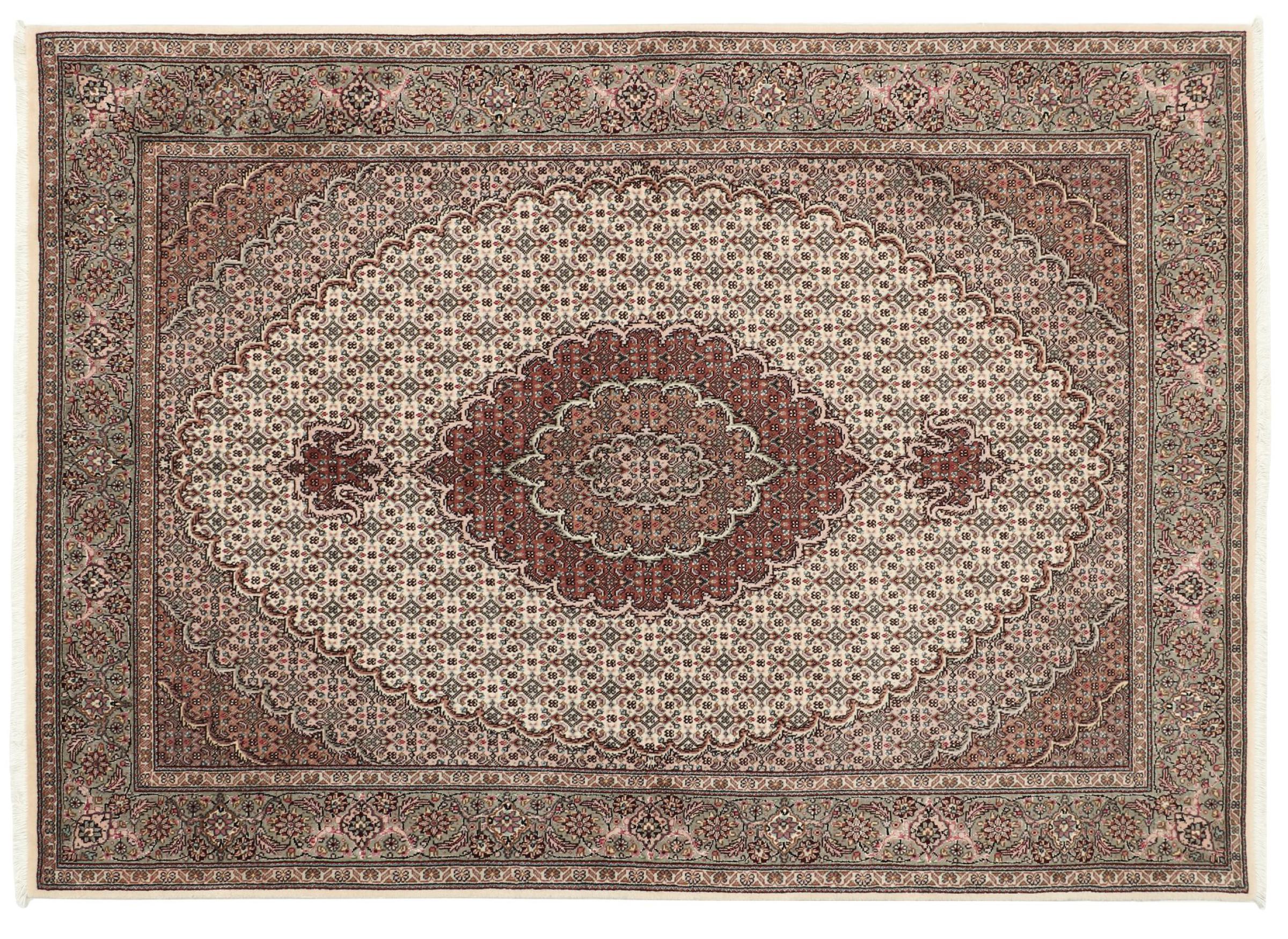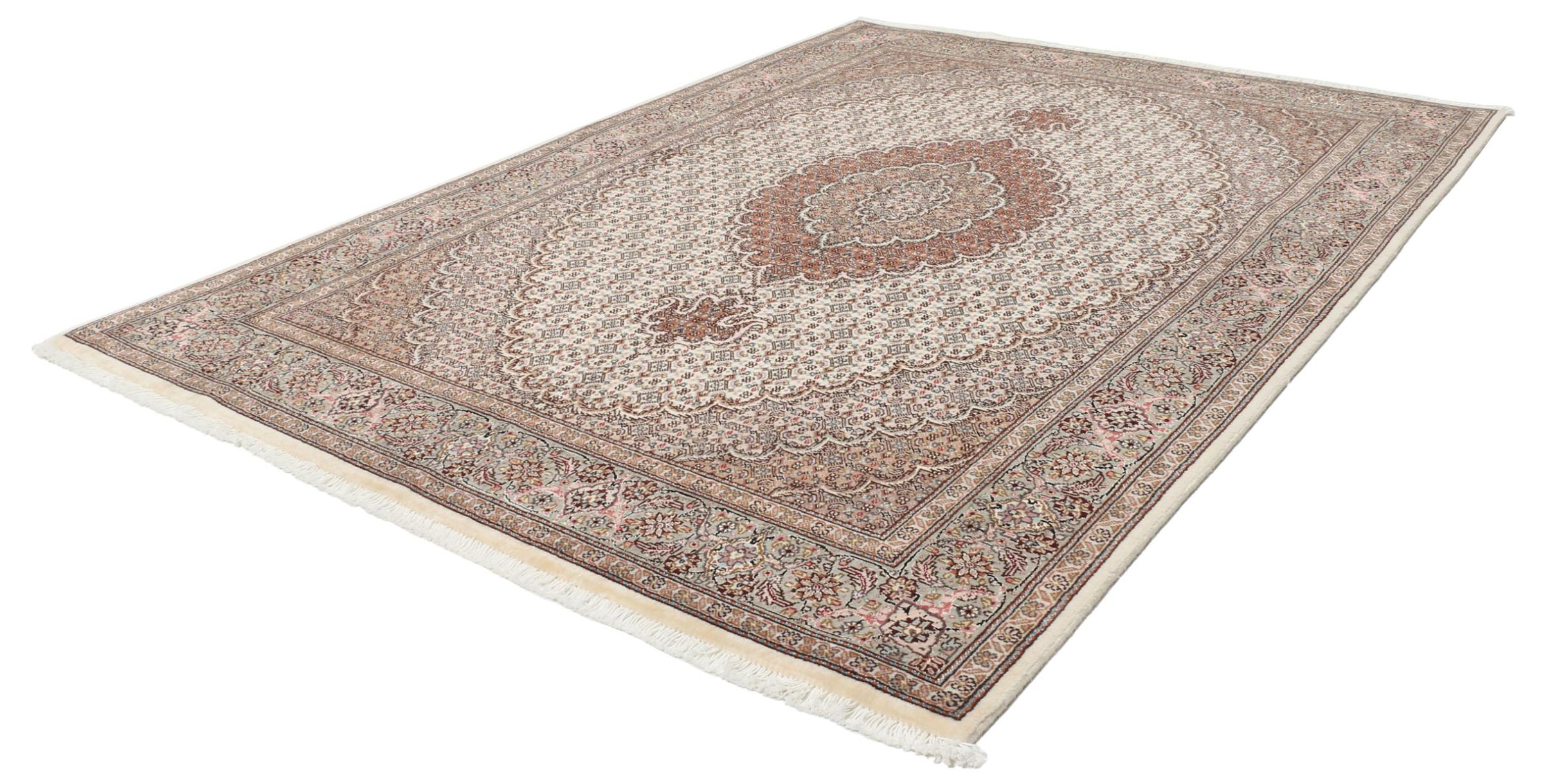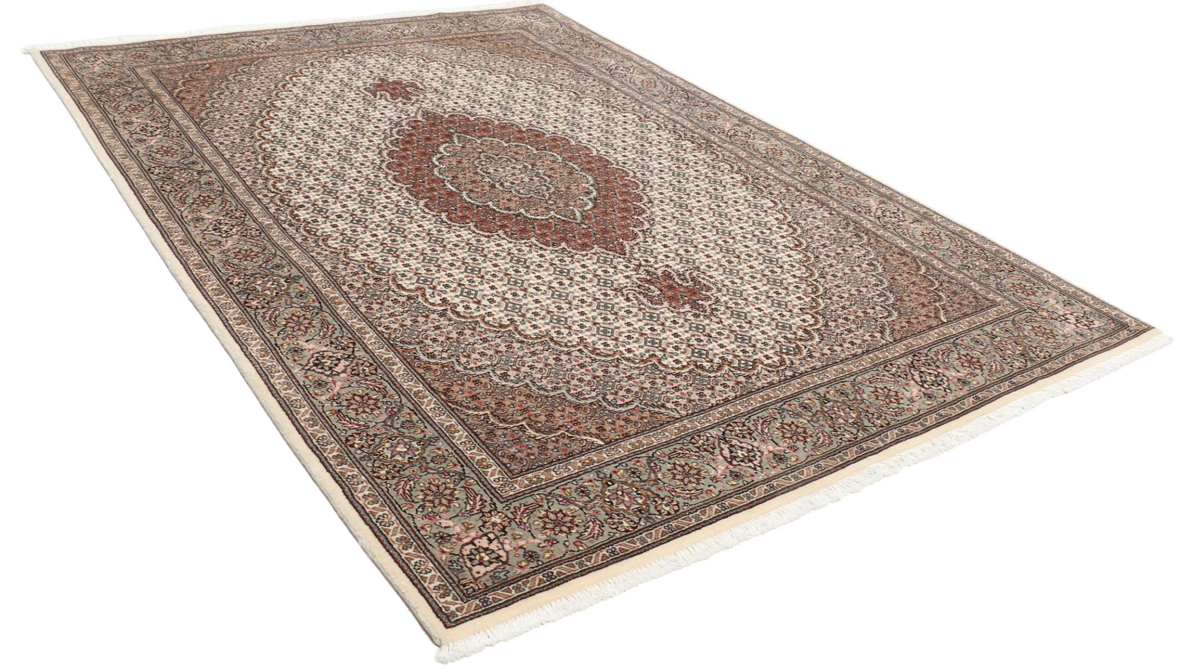 Nr.dywanu: 309144003051205 Wielkość: 204x145 cm Grubość: ok. 10 mm Gęstość tkania: 200 000 - 250 000 / m² Przetwarzanie: Ręcznie tkane Włosie: Wełna z jedwabiem Osnowa: Bawełna Pochodzenie: Persja / Iran Wiek: nowe Waga: ok. 12 kg Znany także jako Tabris, Tabriz, Tebris, Tebriz, Täbris Ilość w magazynie: Unikalny - Tylko 1 na składzie