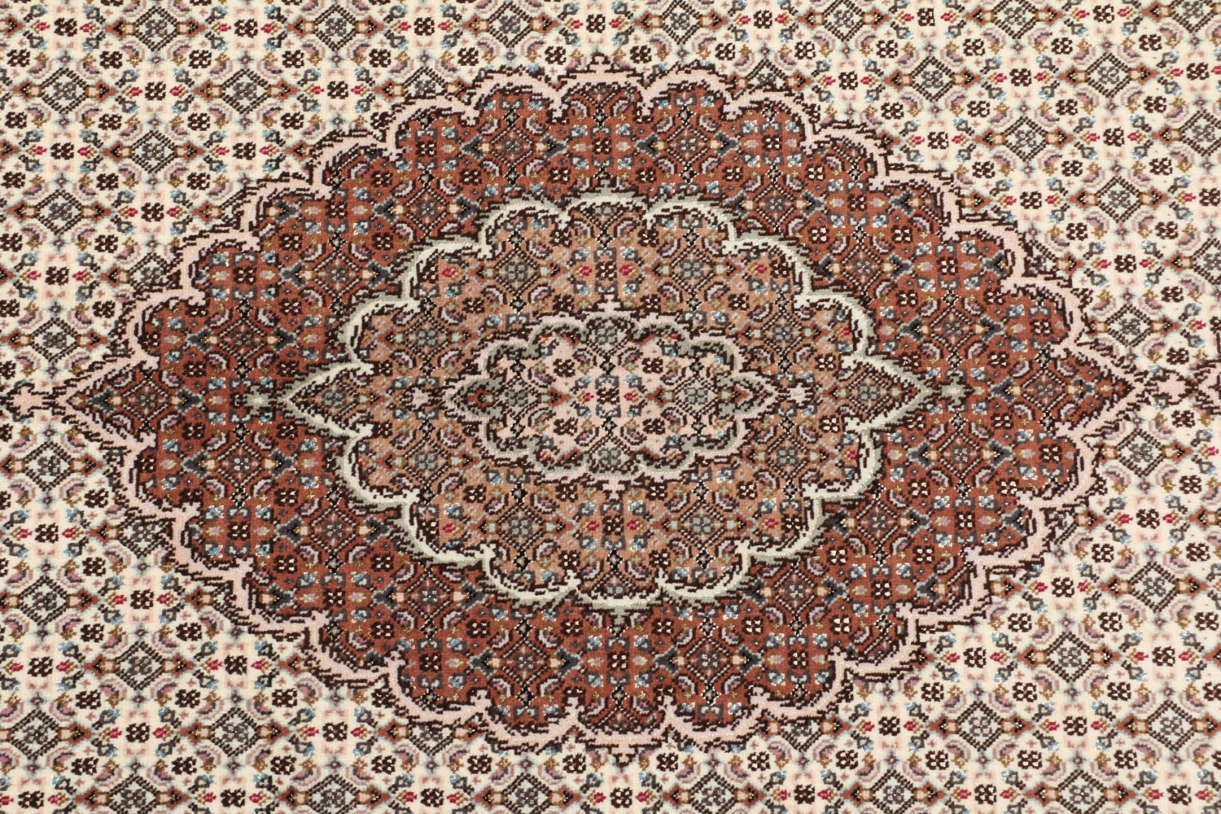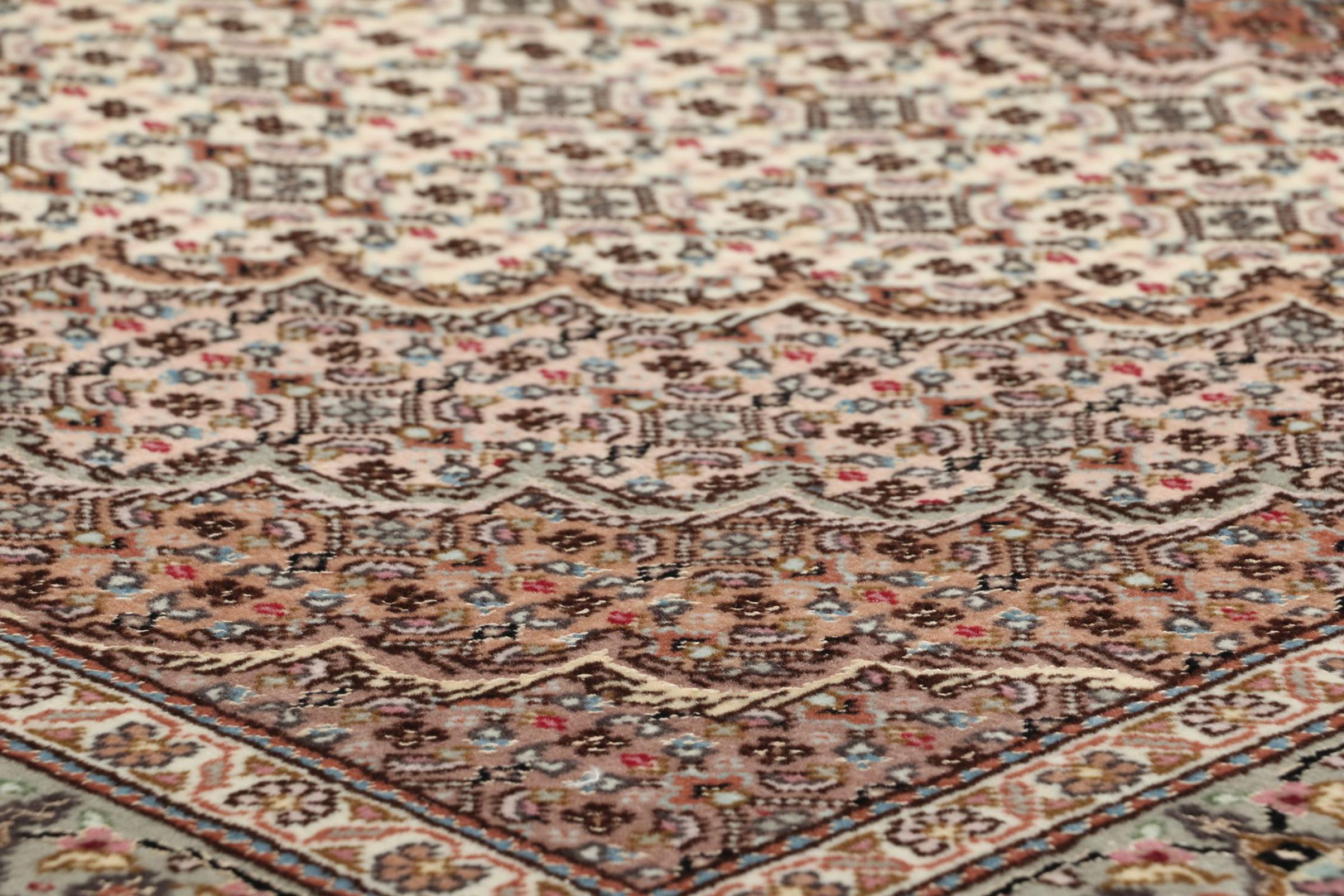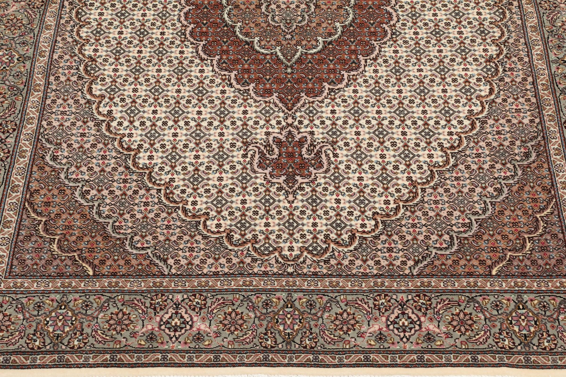 Nr.dywanu: 309144003051205 Wielkość: 204x145 cm Grubość: ok. 10 mm Gęstość tkania: 200 000 - 250 000 / m² Przetwarzanie: Ręcznie tkane Włosie: Wełna z jedwabiem Osnowa: Bawełna Pochodzenie: Persja / Iran Wiek: nowe Waga: ok. 12 kg Znany także jako Tabris, Tabriz, Tebris, Tebriz, Täbris Ilość w magazynie: Unikalny - Tylko 1 na składzie
