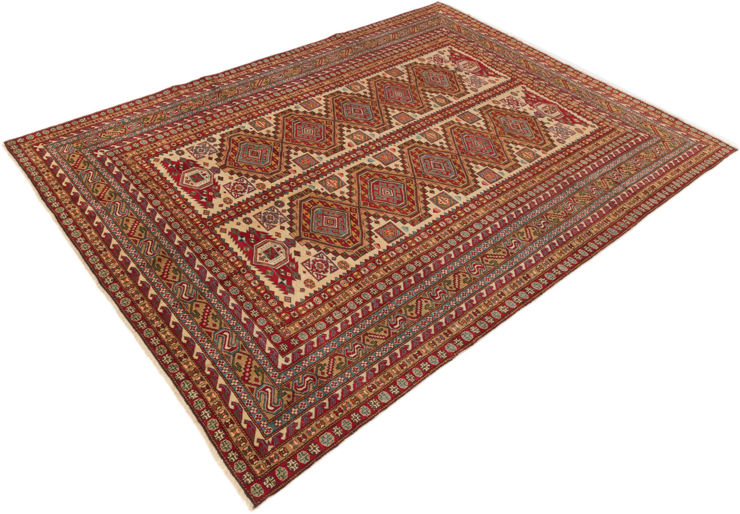Dywan ten wykonany jest z ręcznie formowanej wełny owczej najwyższej jakości. Zwłaszcza w Iranie (była Persja), Afganistanie i Pakistanie wełna jest nadal ręcznie skręcana, zanim rozpocznie się faktyczne wiązanie dywanu. Wełna sprawdziła się jako naturalny i niezwykle wytrzymały materiał na przestrzeni wieków. Ma m.in. właściwości antybrudzące i termoizolacyjne. Jednocześnie wełna jest nieporównywalnie miękka i ma naturalny połysk.