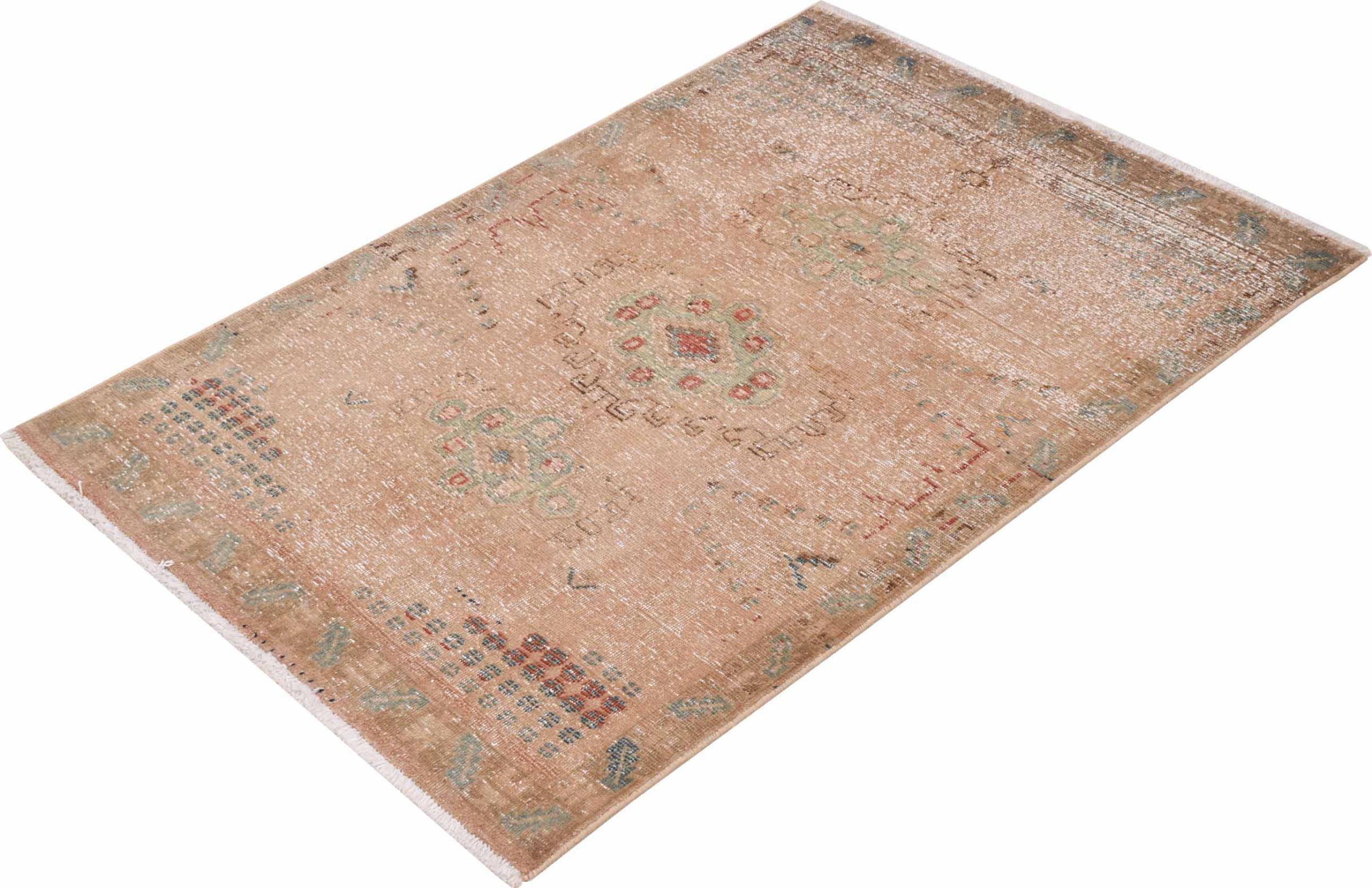 To jest ręcznie tkany perski dywan, który ma co najmniej 20 lat. Taki dywan może przetrwać pokolenia przy odpowiedniej pielęgnacji. Dywan został całkowicie ponownie zabarwiony bez całkowitego przebarwienia oryginalnie wiązanych ornamentów. Nadaje to temu wysokiej jakości perskiemu dywanowi unikalny, nowoczesny charakter vintage.
