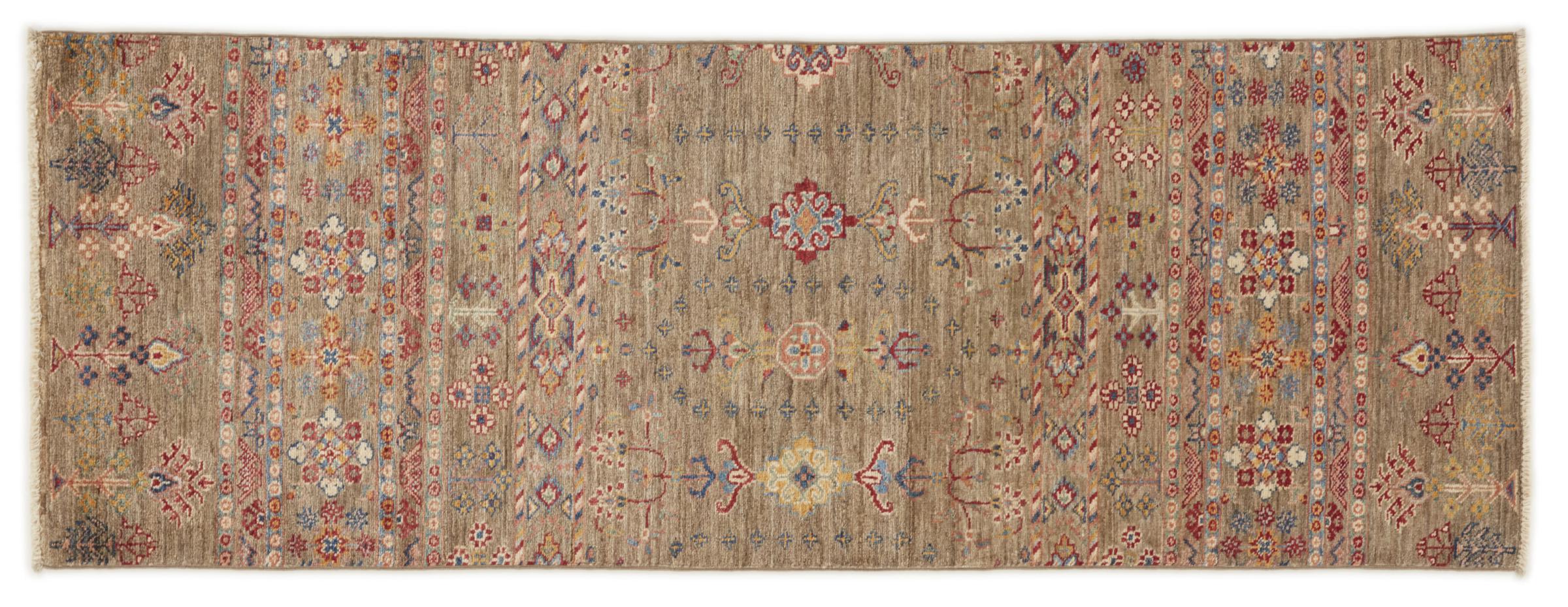 Nr.dywanu: 291866008675967 Wielkość: 202x71 cm Grubość: ok. 6 mm Gęstość tkania: 160 000 - 200 000 / m² Przetwarzanie: Ręcznie tkane Włosie: Wełna ręcznie przędzona Osnowa: Bawełna Pochodzenie: Afganistan Wiek: nowe Waga: ok. 5 kg Ilość w magazynie: Unikalny - Tylko 1 na składzie