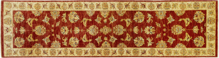 Nr.dywanu: 303913004438445 Wielkość: 303x78 cm Grubość: ok. 6 mm Gęstość tkania: 128 000 - 160 000 / m² Przetwarzanie: Ręcznie tkane Włosie: Wełna ręcznie przędzona Osnowa: Bawełna Pochodzenie: Afganistan Wiek: nowe Waga: ok. 8 kg Ilość w magazynie: Unikalny - Tylko 1 na składzie