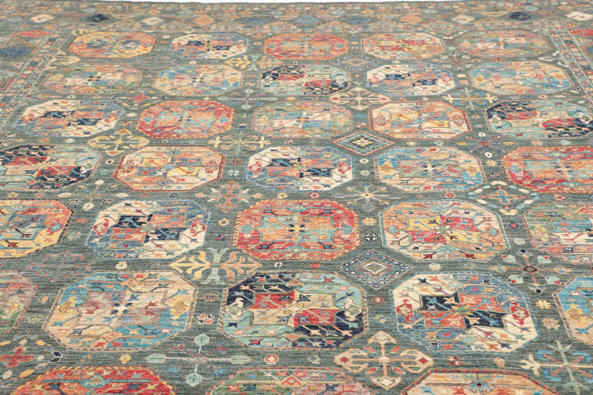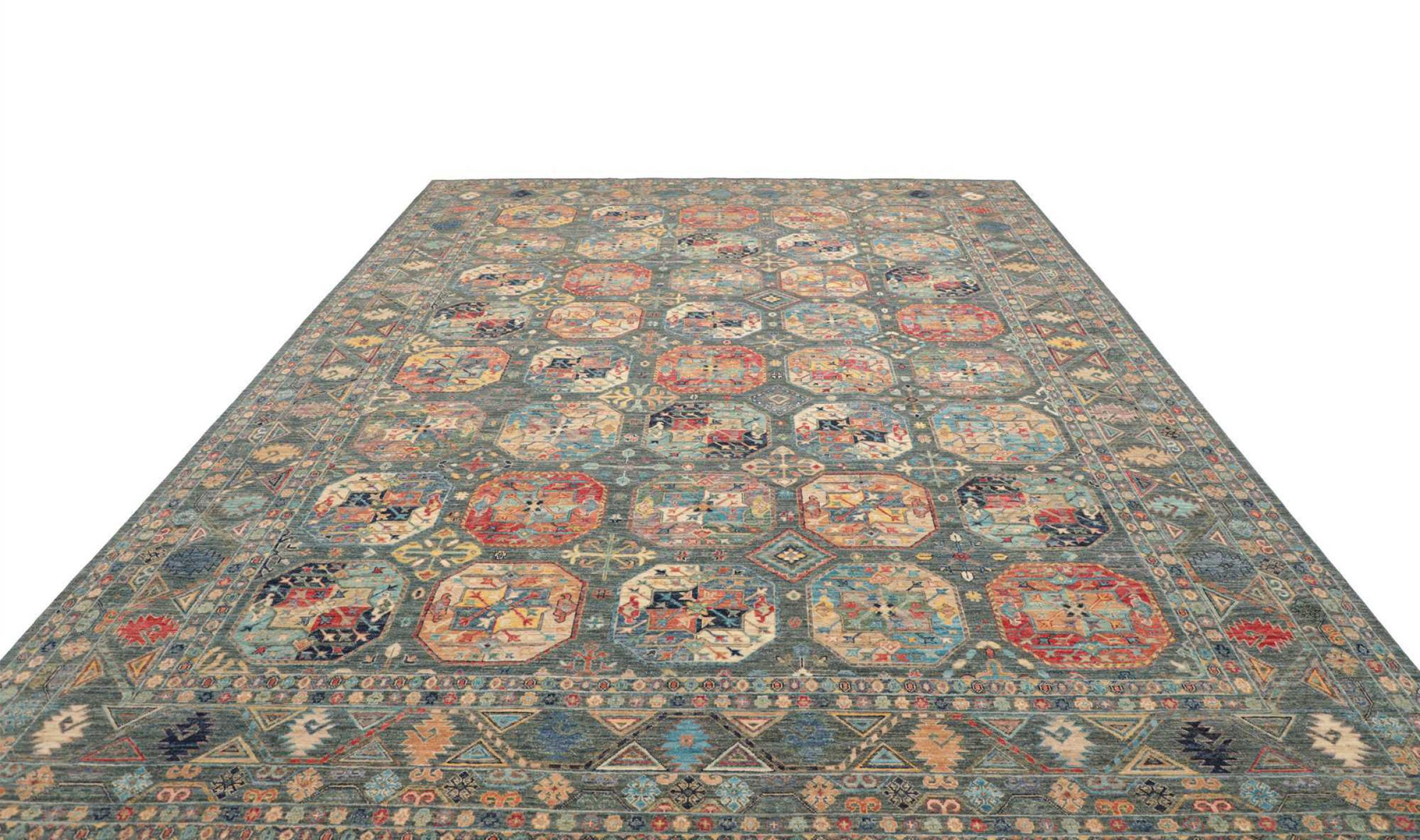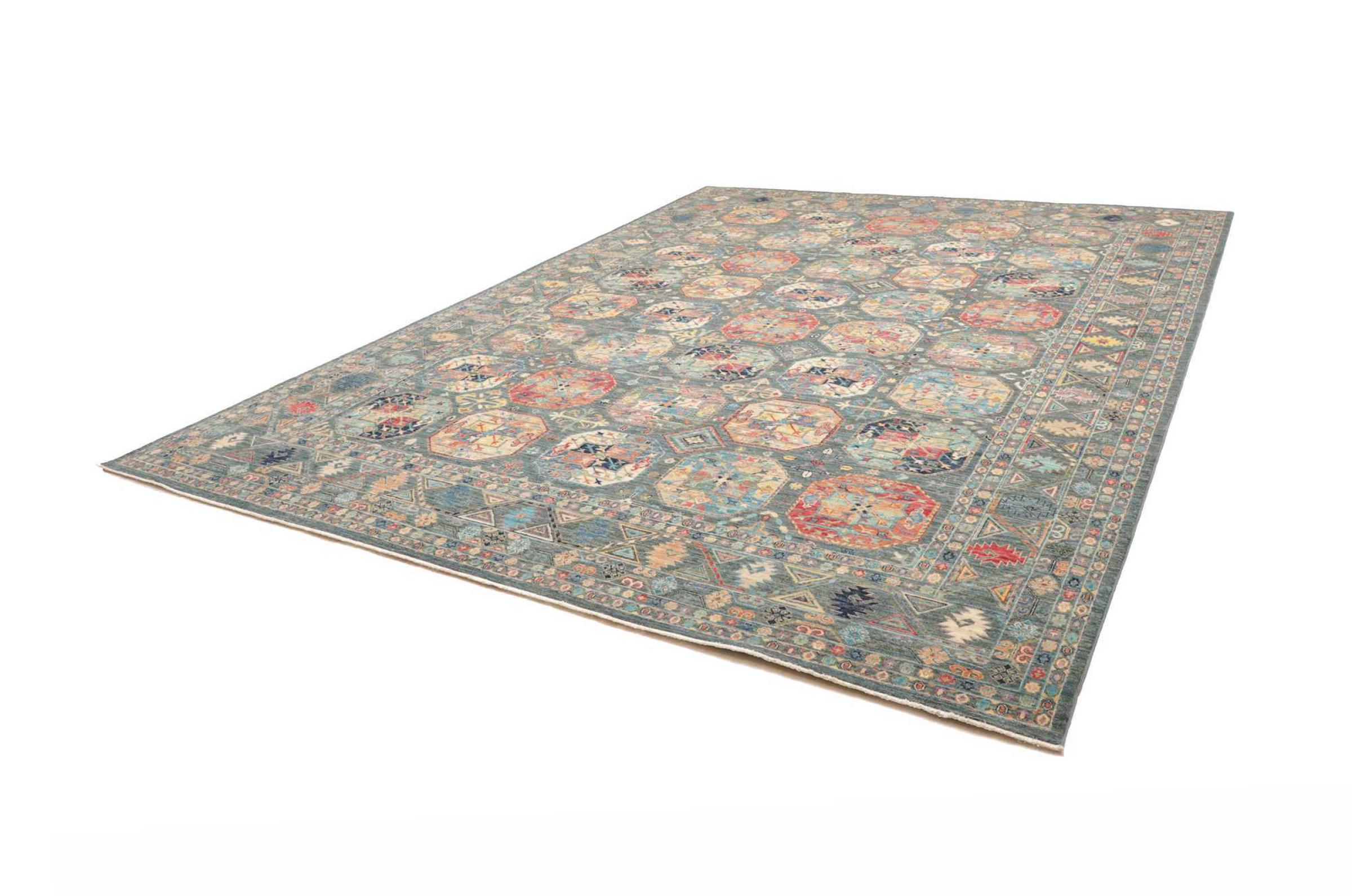 Nr.dywanu: 306372003699279 Wielkość: 387x301 cm Grubość: ok. 6 mm Gęstość tkania: 128 000 - 160 000 / m² Przetwarzanie: Ręcznie tkane Włosie: Wełna ręcznie przędzona Osnowa: Bawełna Pochodzenie: Pakistan Wiek: nowe Waga: ok. 41 kg Ilość w magazynie: Unikalny - Tylko 1 na składzie