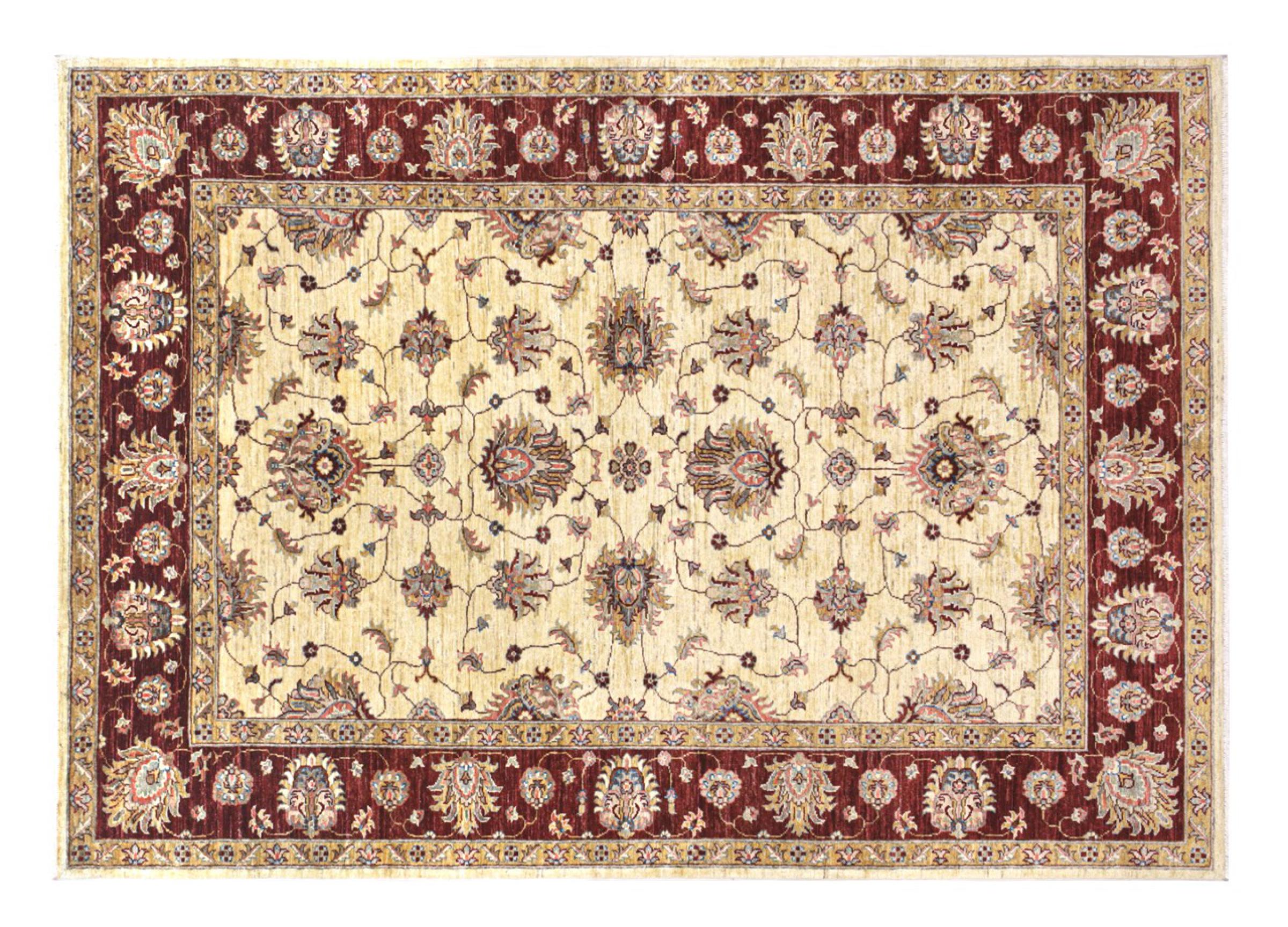 Nr.dywanu: 283332007514549 Wielkość: 244x173 cm Grubość: ok. 5 mm Gęstość tkania: 120 000 - 150 000 / m² Przetwarzanie: Ręcznie tkane Włosie: Wełna ręcznie przędzona Osnowa: Bawełna Pochodzenie: Afganistan Wiek: nowe Waga: ok. 13 kg Ilość w magazynie: Unikalny - Tylko 1 na składzie