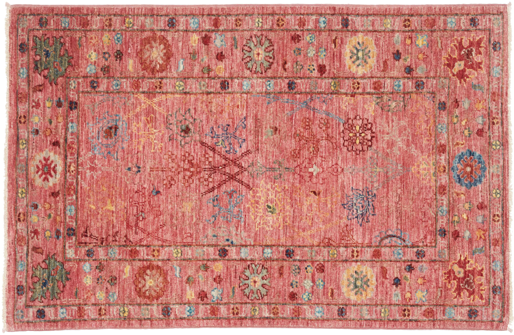 Nr.dywanu: 306853002521318 Wielkość: 124x77 cm Grubość: ok. 6 mm Gęstość tkania: 128 000 - 160 000 / m² Przetwarzanie: Ręcznie tkane Włosie: Wełna ręcznie przędzona Osnowa: Bawełna Pochodzenie: Pakistan Wiek: nowe Waga: ok. 3 kg Ilość w magazynie: Unikalny - Tylko 1 na składzie